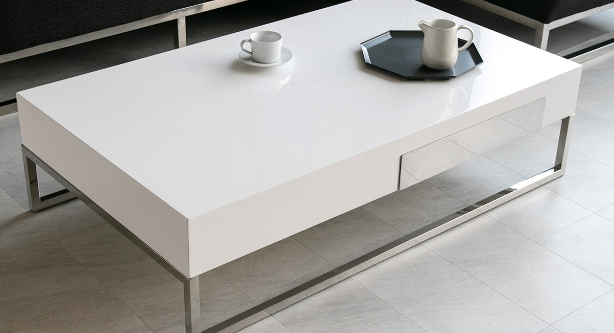 センターテーブル 引き出し 収納付き ホワイト ハイグロス 鏡面 ローテーブル 長方形 幅110㎝