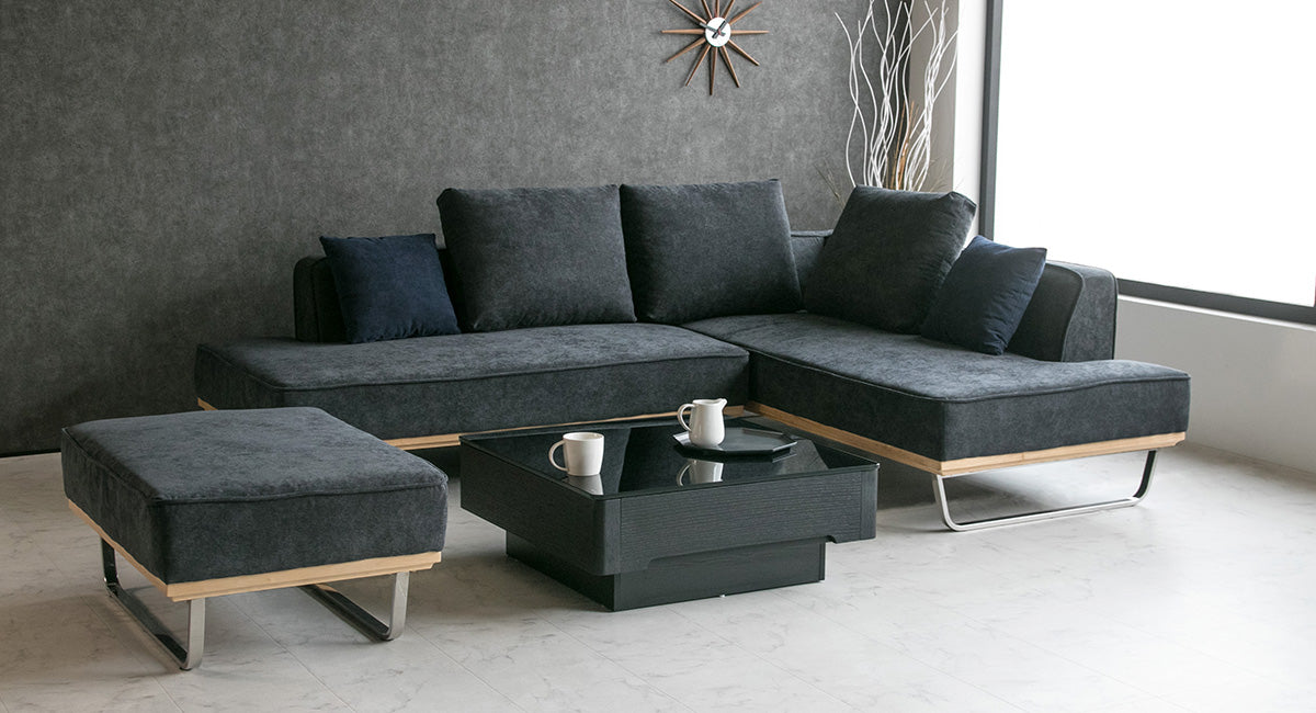 カウチソファ 3人掛け ファブリック ソファー グレー ネイビー オフホワイト クッション付き 幅235cm