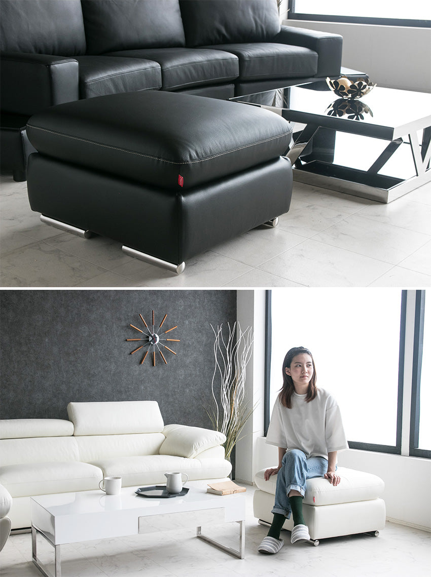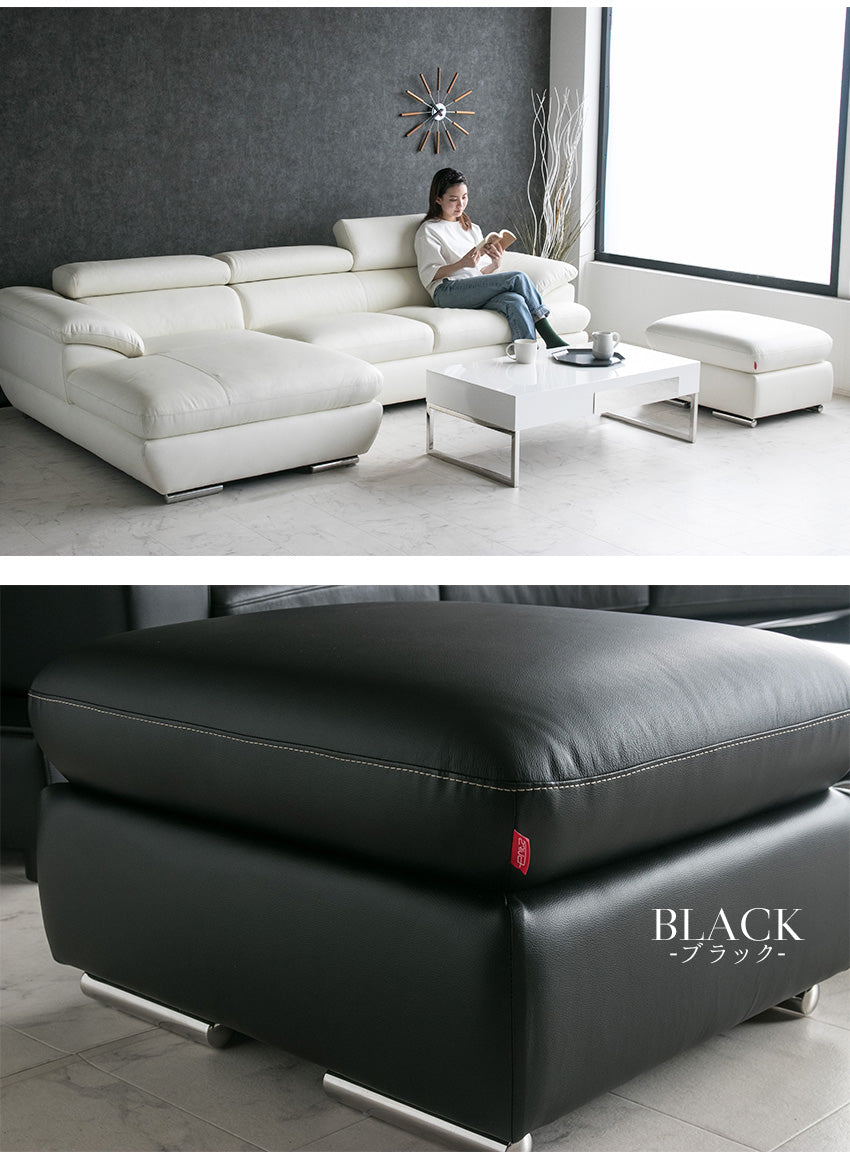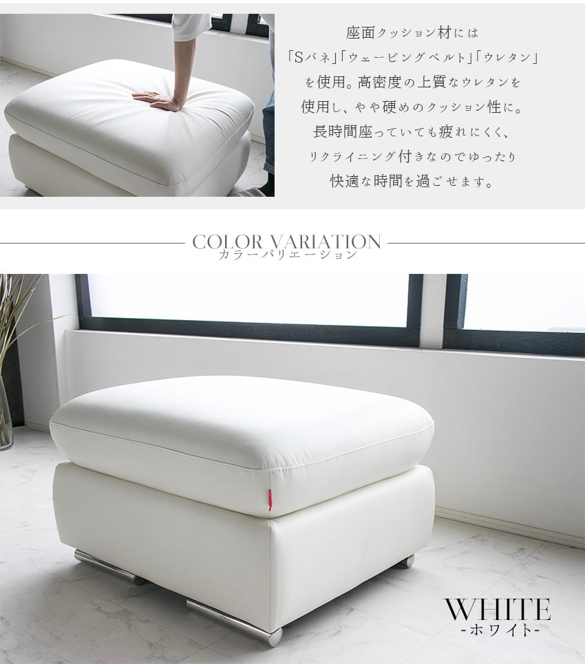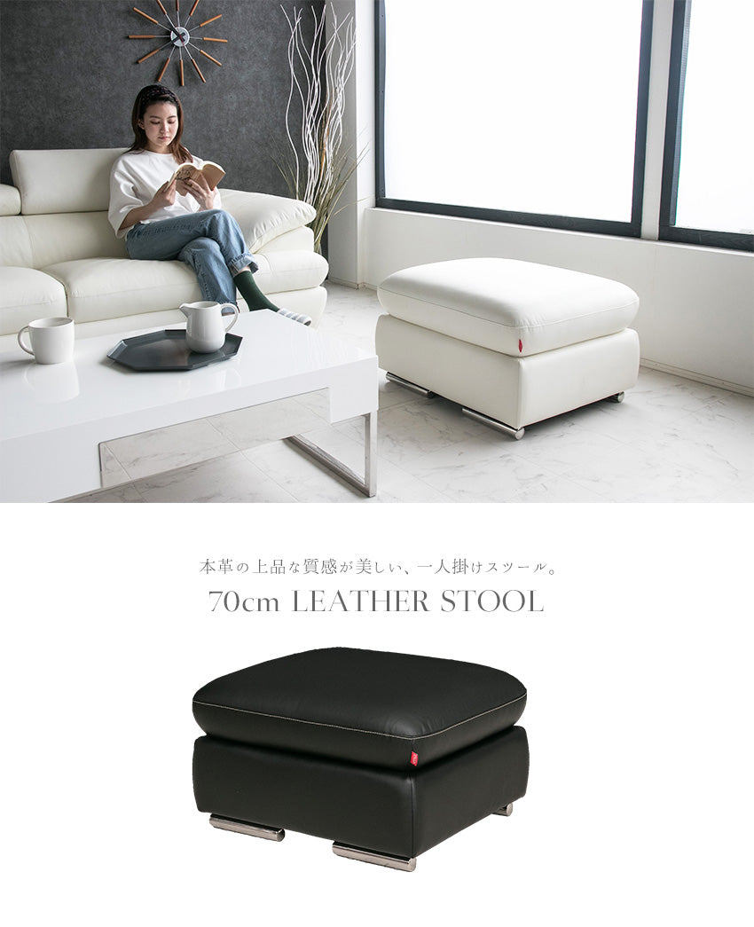 スツール 1人掛け 本革 レザー ホワイト ブラック 足置き 幅70㎝