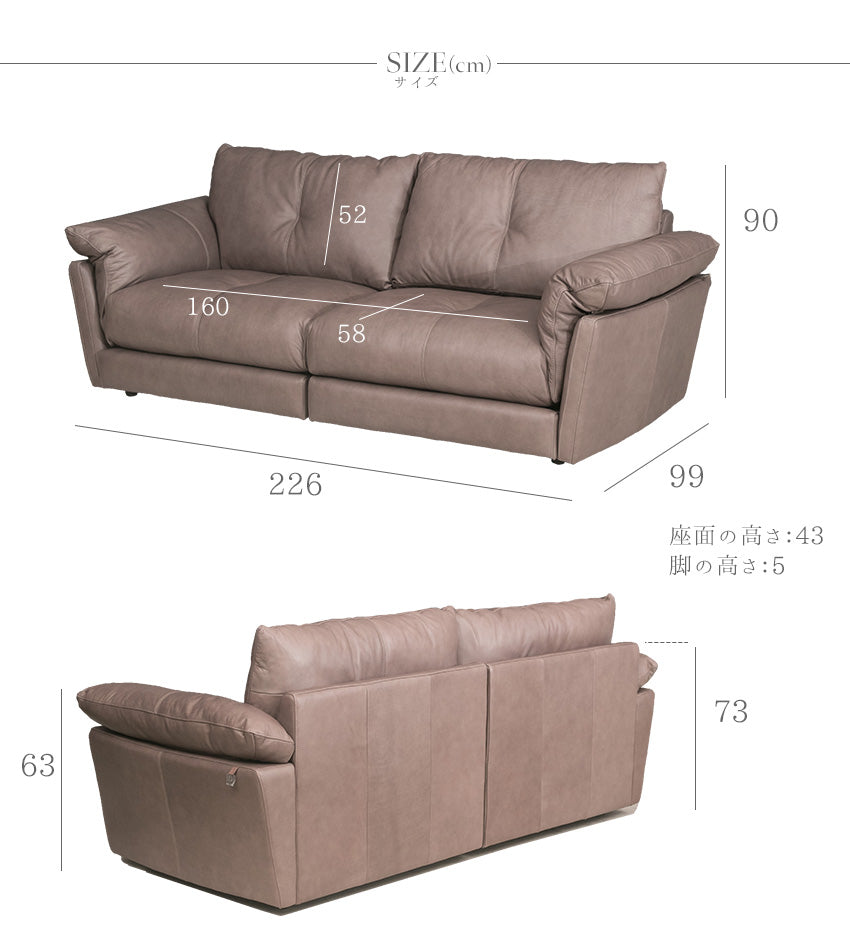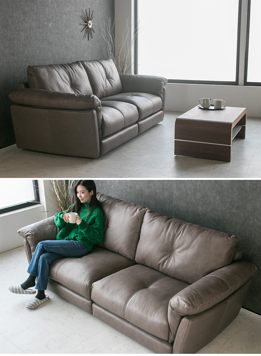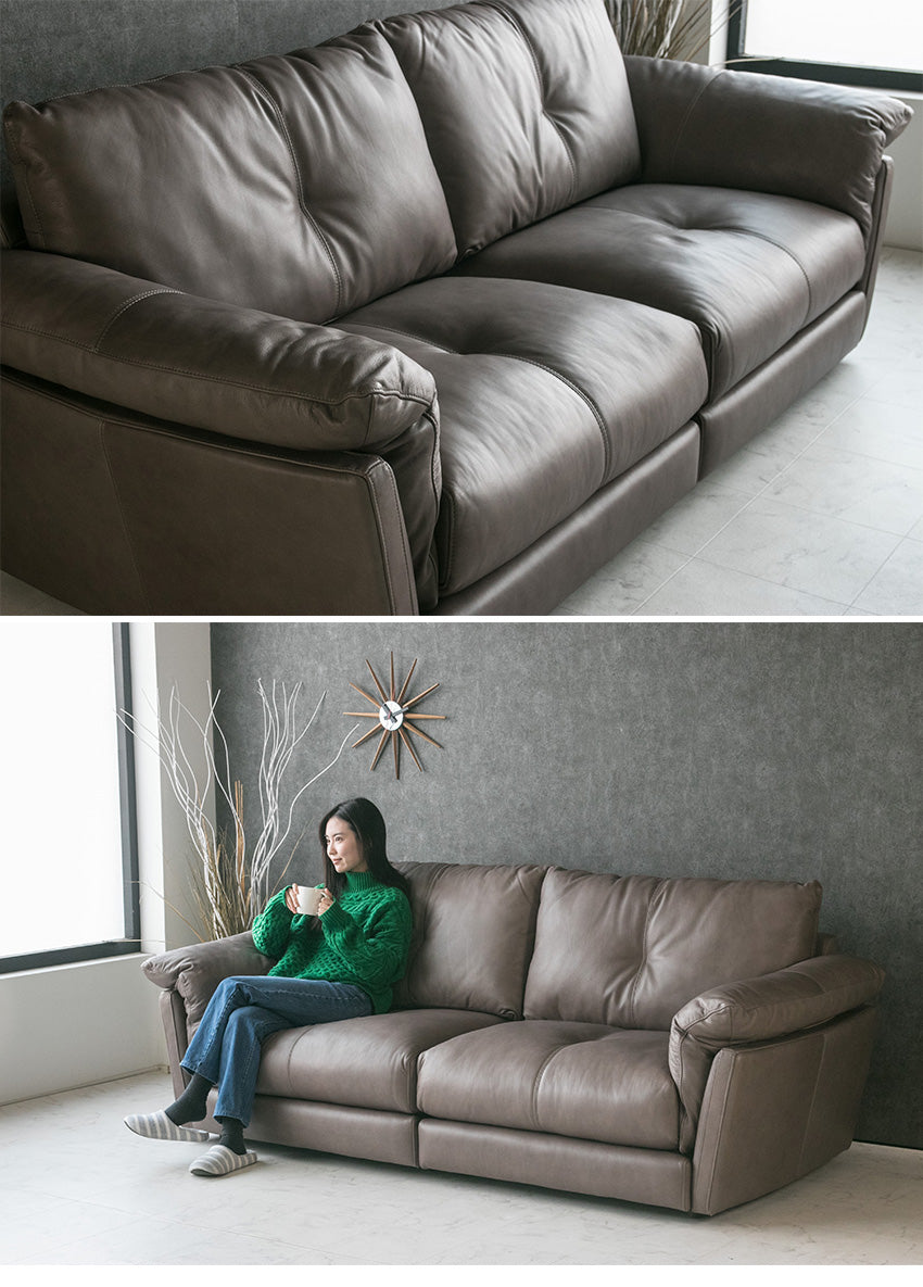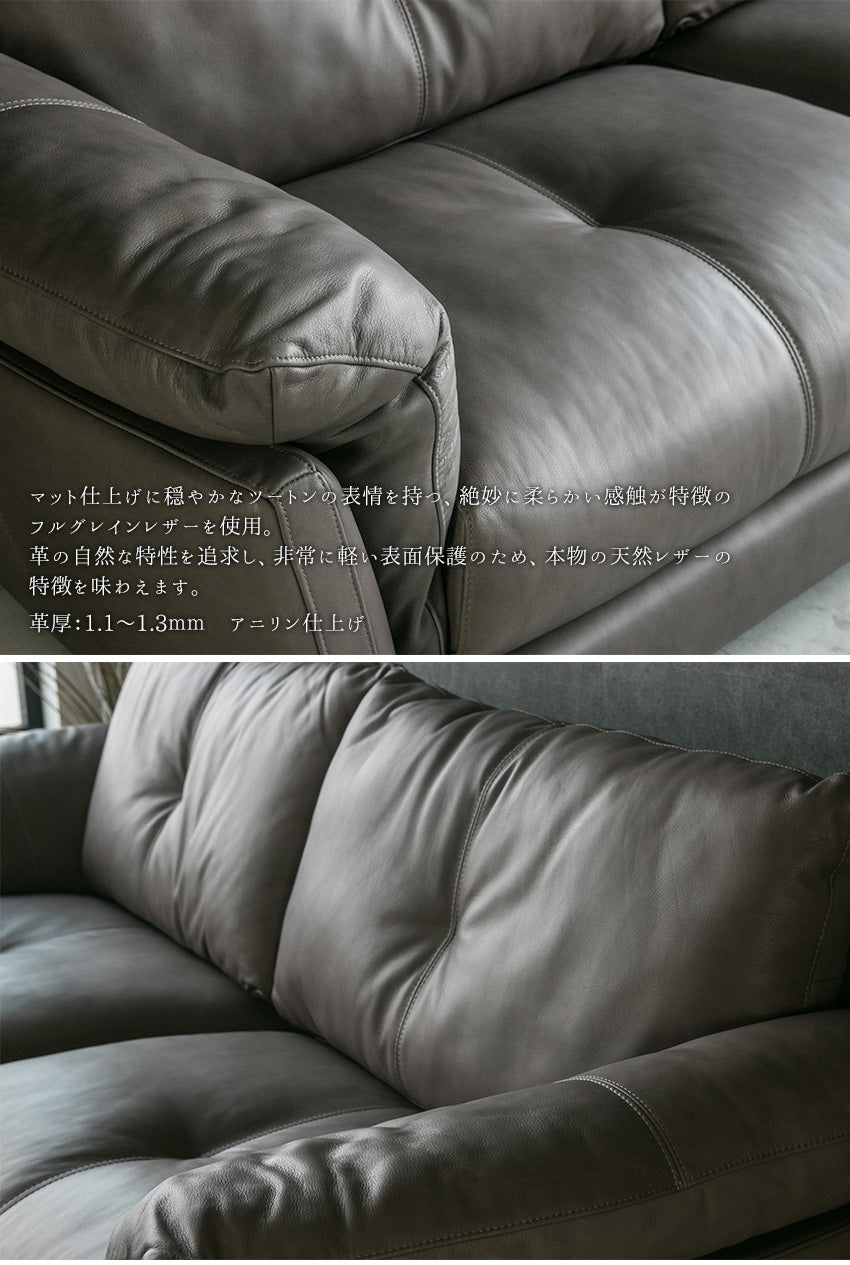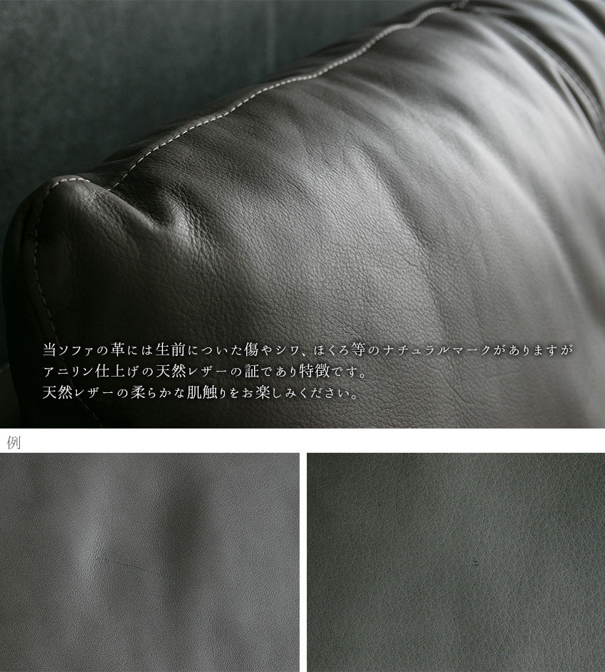 | 商品説明 | アニリン仕上げの天然レザーを全面に使用した、総革3人掛けソファ。 |