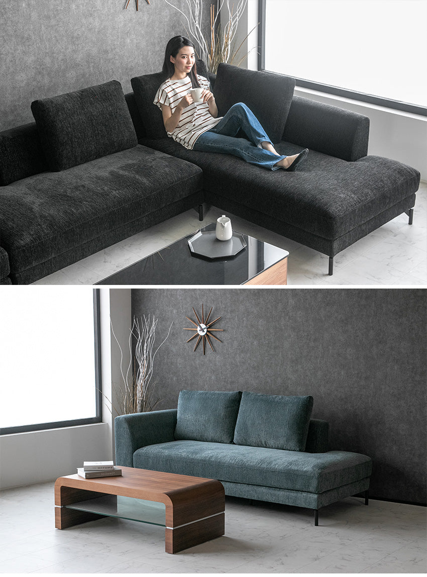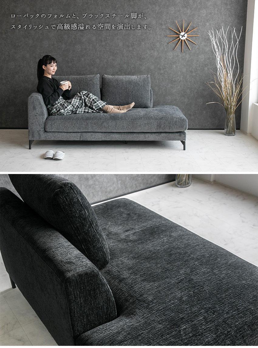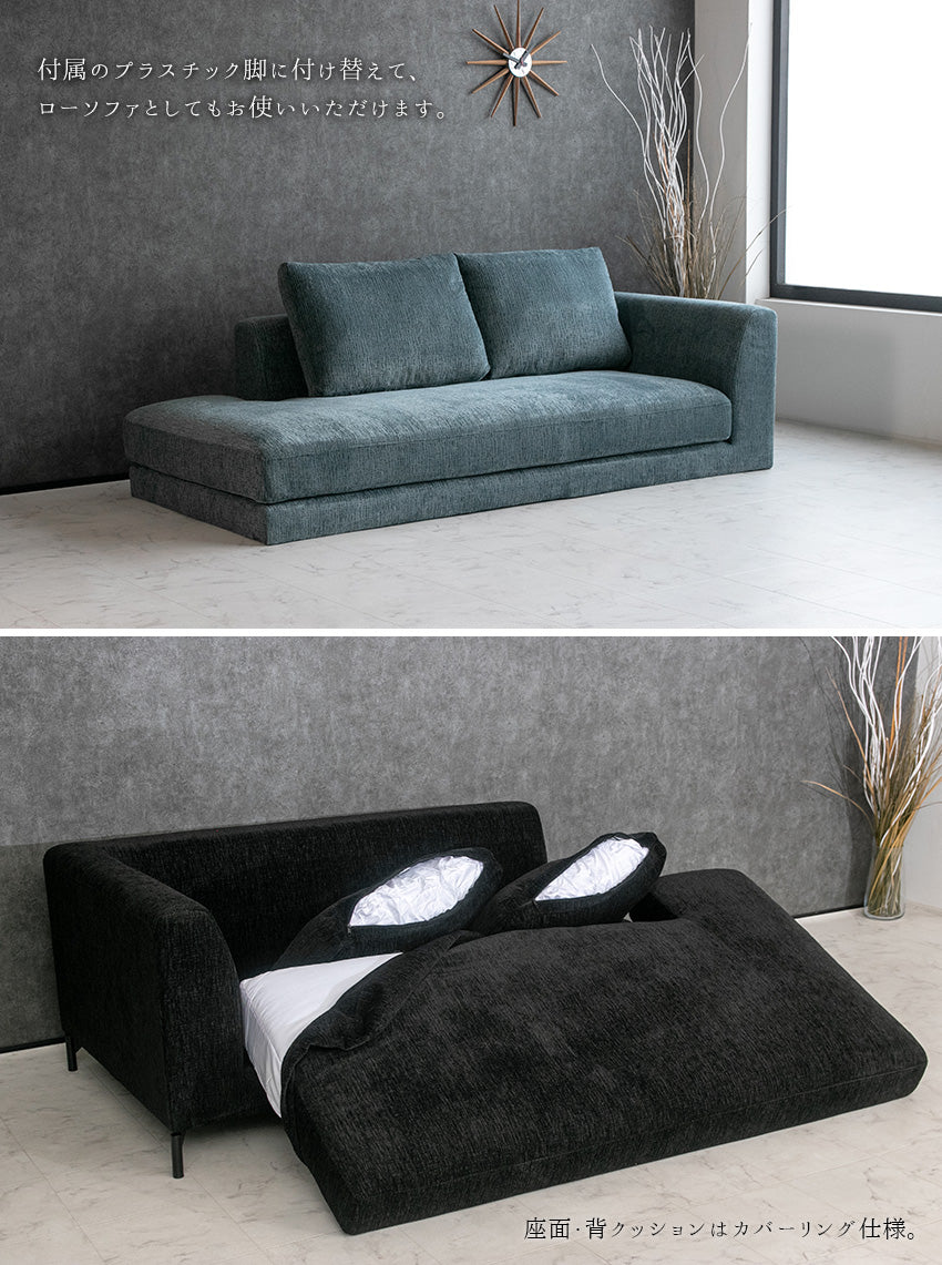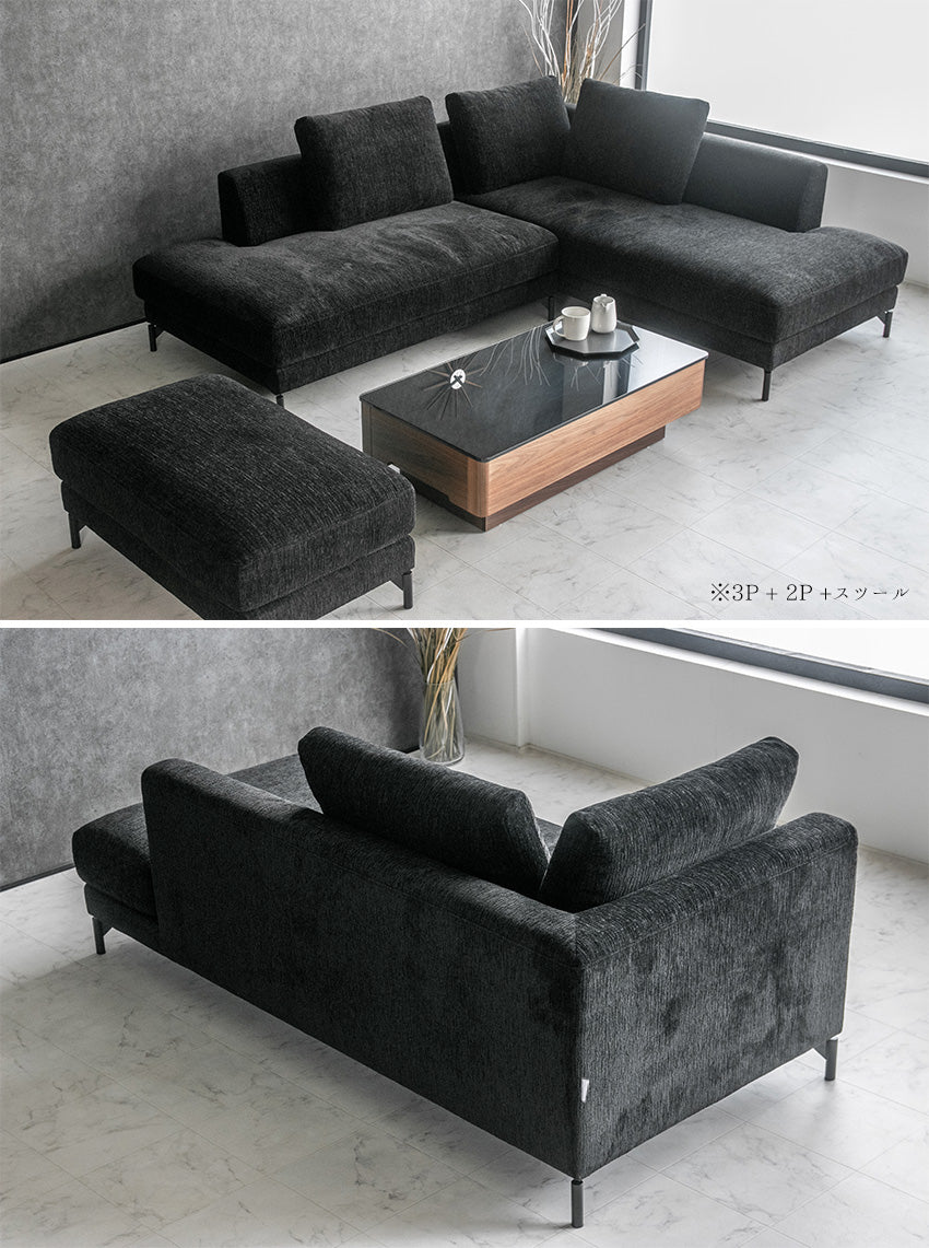 カウチソファ 3人掛け 4人掛け ファブリック I字 ブラック グレー ライトブルー クッション付き 幅234cm