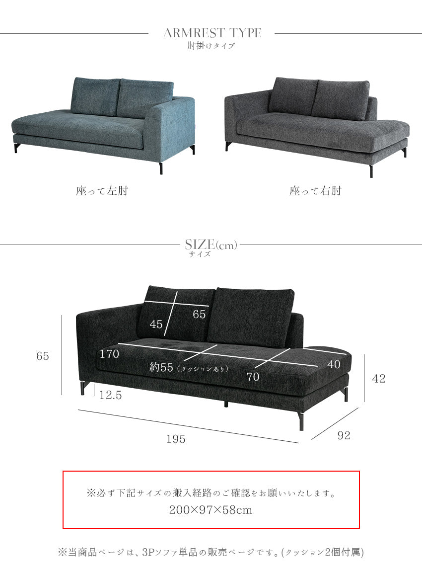 | 商品説明 | 上質なファブリック生地を使用した、3人掛けソファ。 クッション2個付属となります。 |