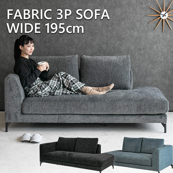 ソファ 3人掛け ファブリック ブラック グレー ライトブルー クッション付き 幅195cm