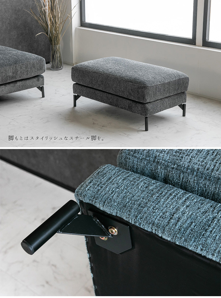 スツール オットマン 1人掛け ファブリック ソファー グレー ライトブルー ブラック 幅92cm