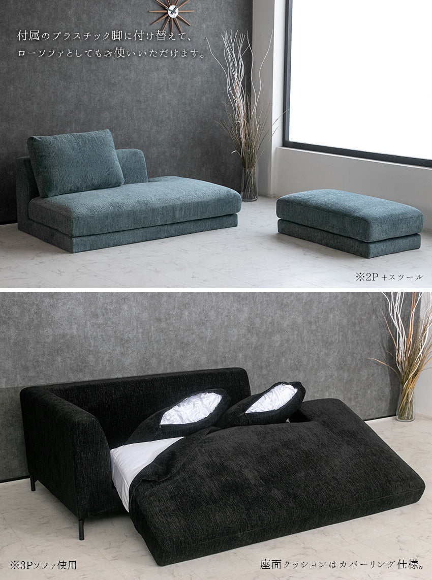 ソファ 3人掛け ファブリック ブラック グレー ライトブルー クッション付き 幅195cm