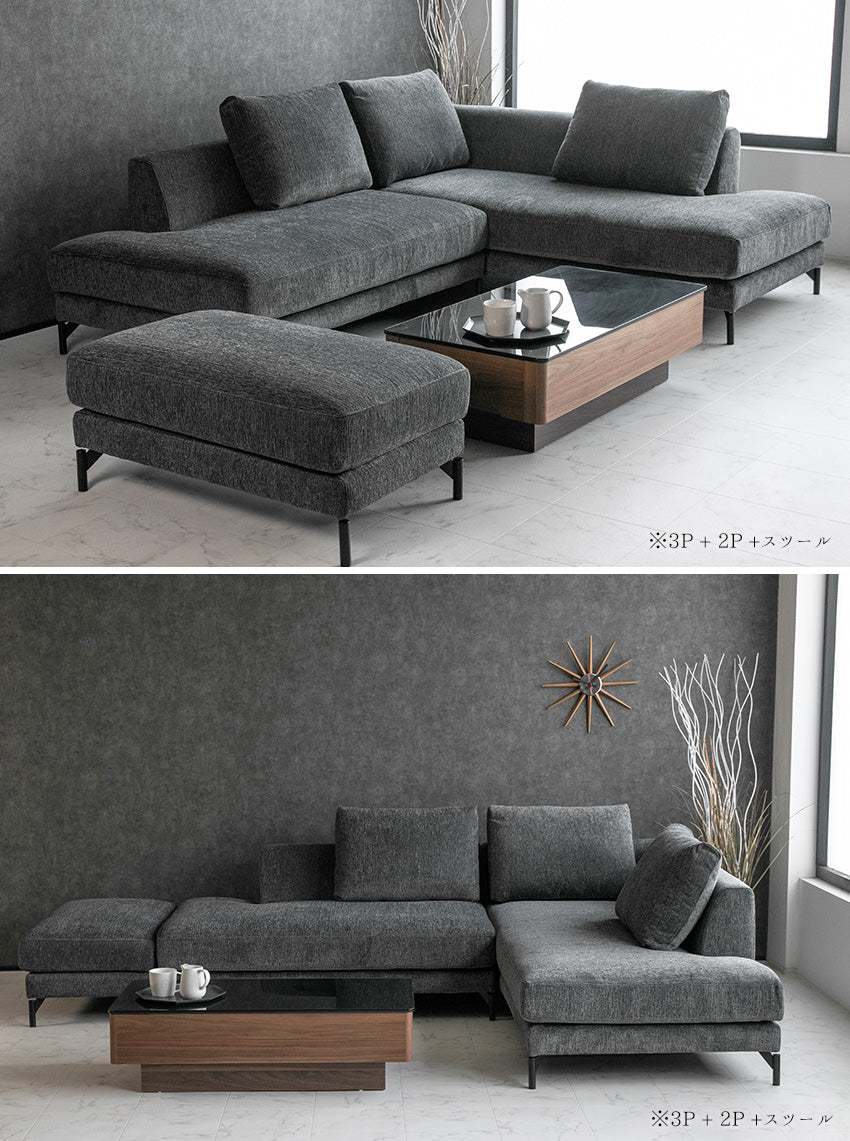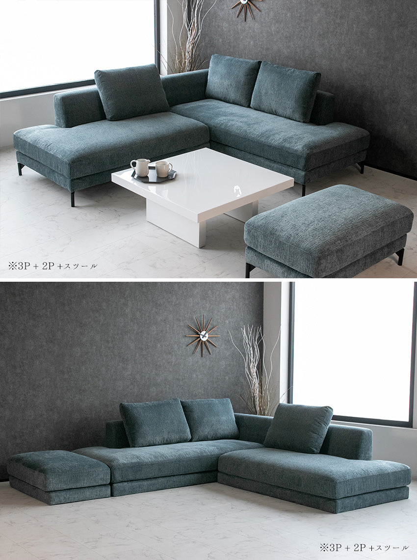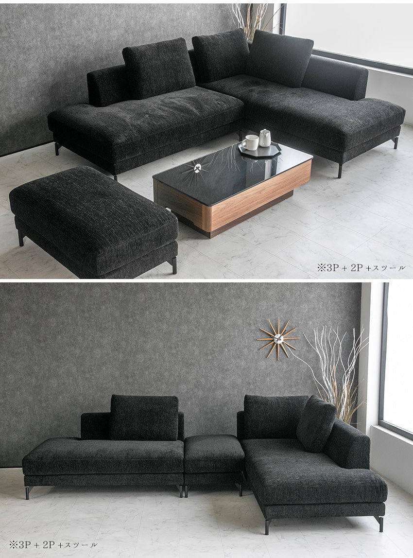 カウチソファ 3人掛け 4人掛け ファブリック I字 ブラック グレー ライトブルー クッション付き 幅234cm