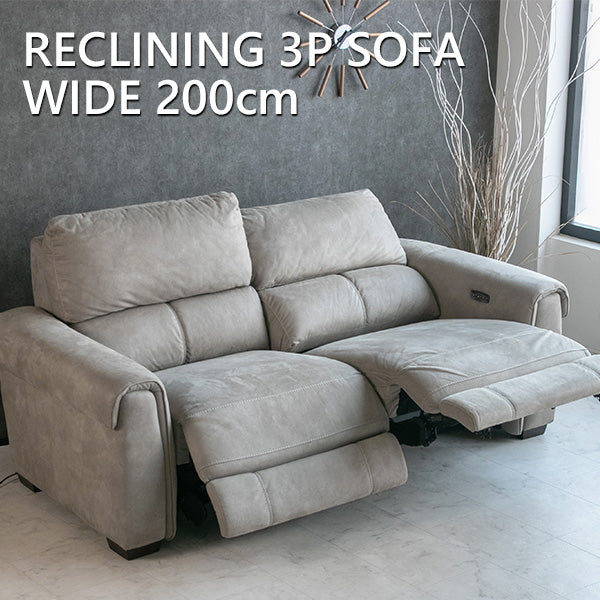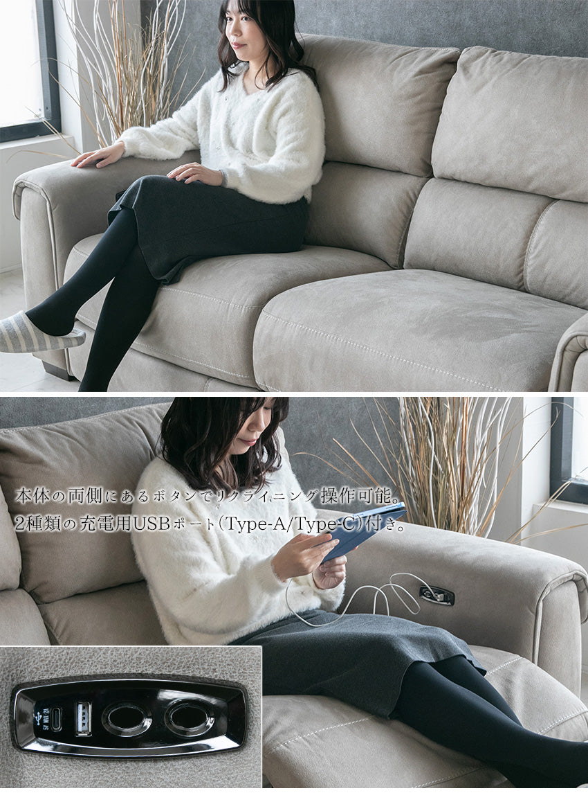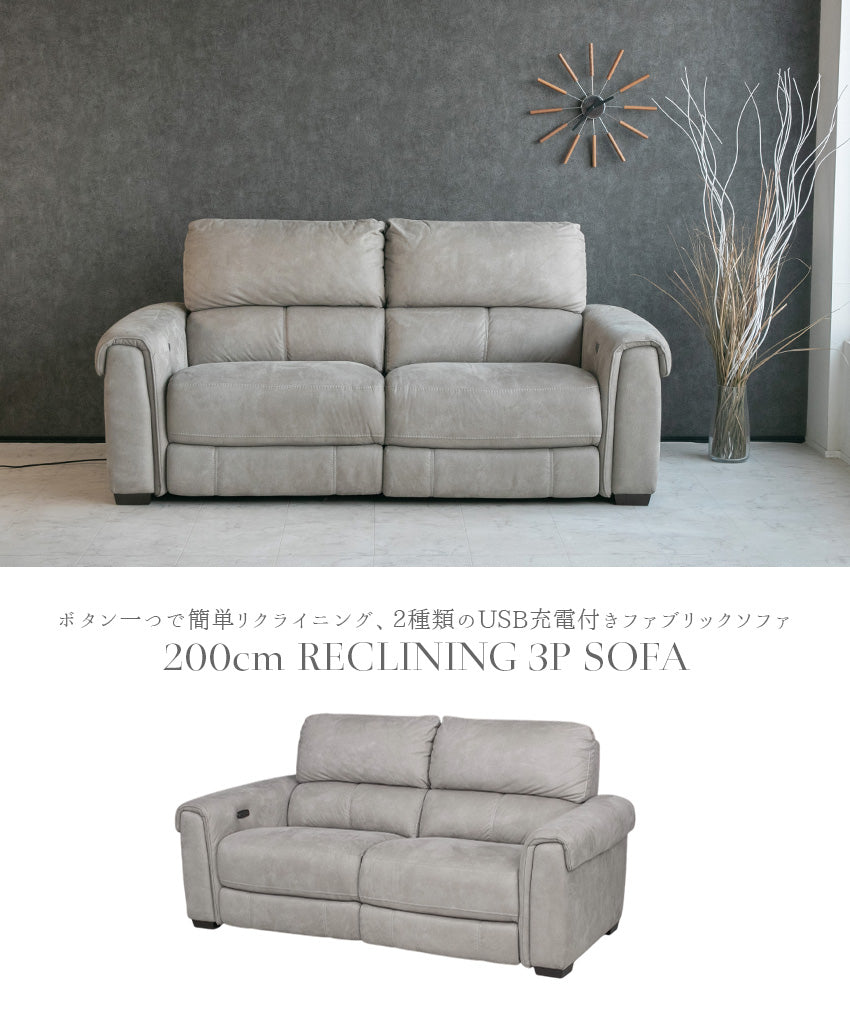 電動 リクライニング ソファ ファブリック 3人掛け グレー USB 充電 幅200cm