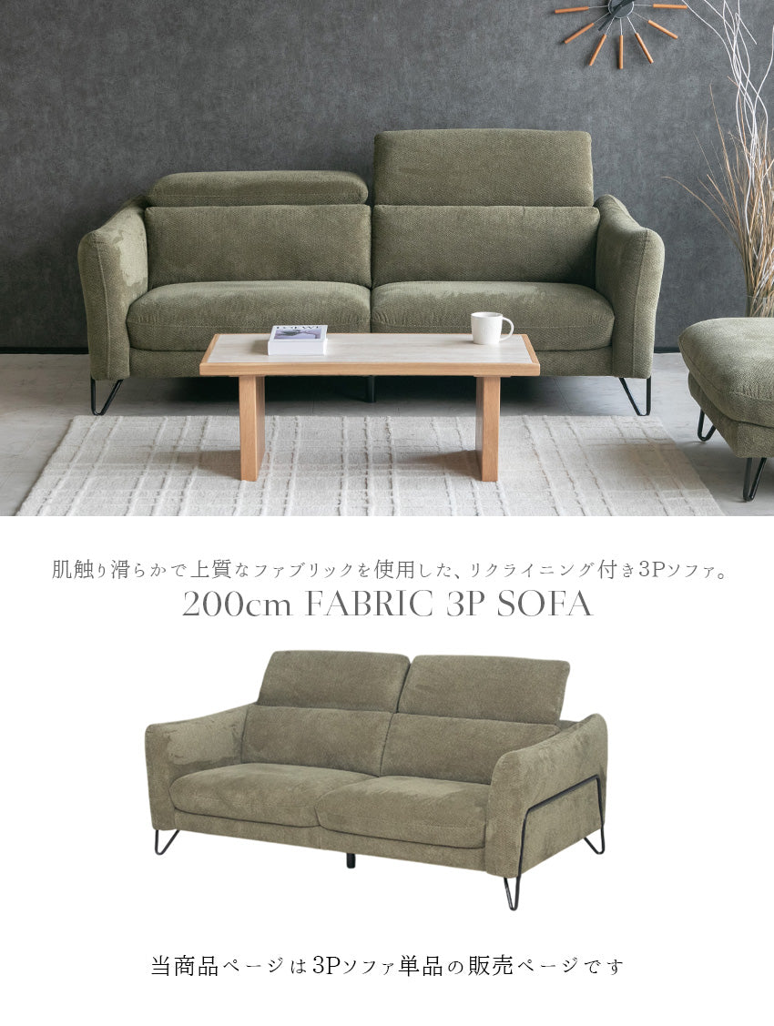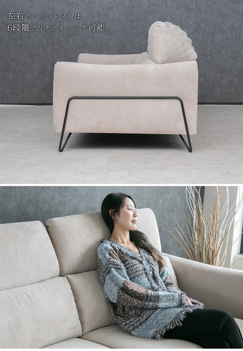 | 商品説明 | 上質なファブリックを使用した、シンプルモダンなリクライニング付き3人掛けソファ。 |