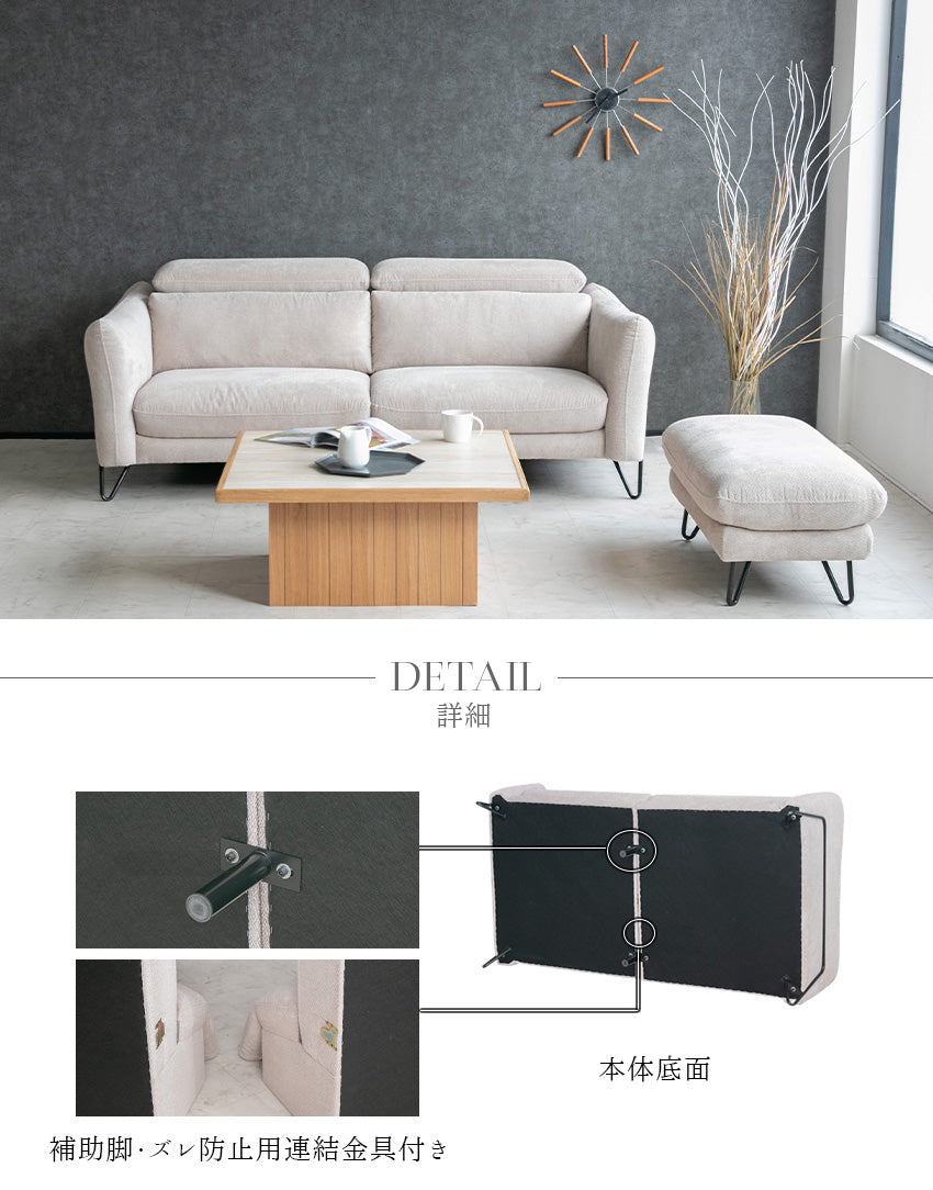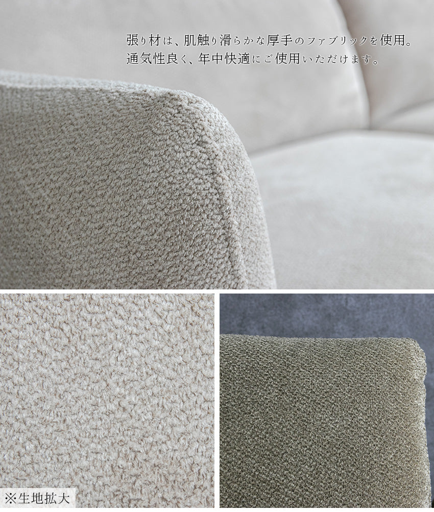 | 材質 | ウレタン/Sバネ/ウェービングベルト/ファブリック/シリコンフィル/アイアン脚 こちらの商品は生地サンプルのご用意が可能です。 ご希望の場合、お問い合わせフォームより、■送付先氏名 ■送付先住所 ■ご希望の色(複数可) ■商品番号[10087]を入力の上、お問い合わせくださいませ。 ※生産ロットによって色味が若干異なる場合がございます。 |