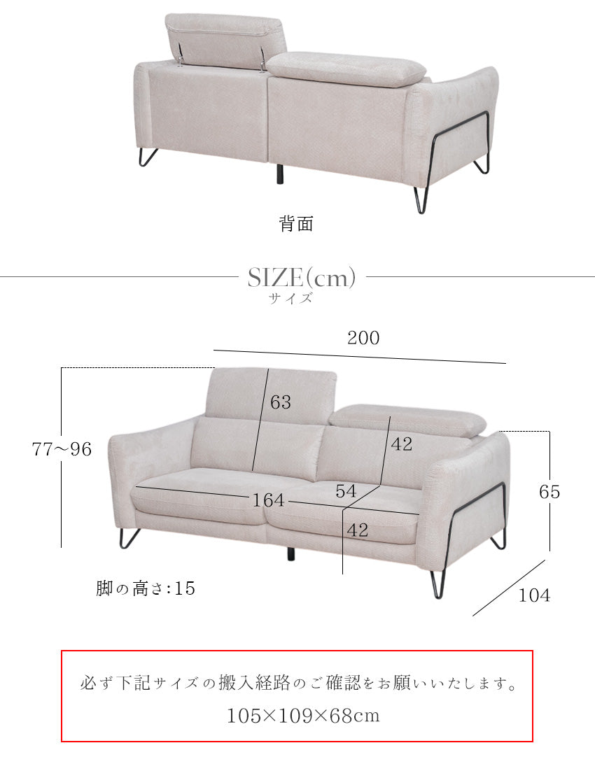 | サイズ | 幅200×奥行き104×高さ77~96cm(座面高さ:42cm) |