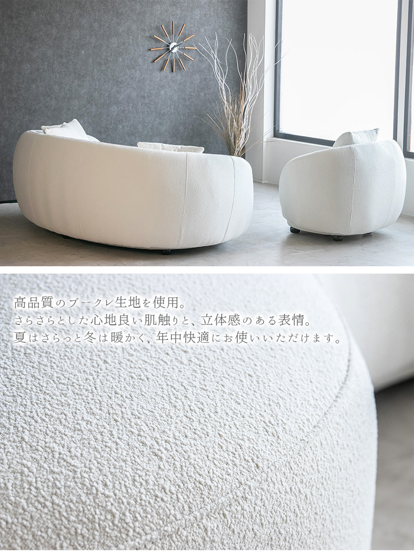 ソファー 1人掛け ブークレ カーブソファ 高級ソファ ラウンドソファー 丸型 ホワイト 白 おしゃれ 10205