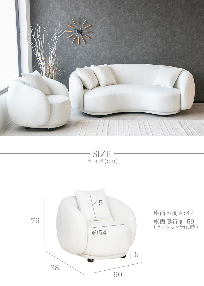 | 商品説明 | 丸みを帯びたシルエットが上品な、1人掛けファブリックカーブソファ。 |