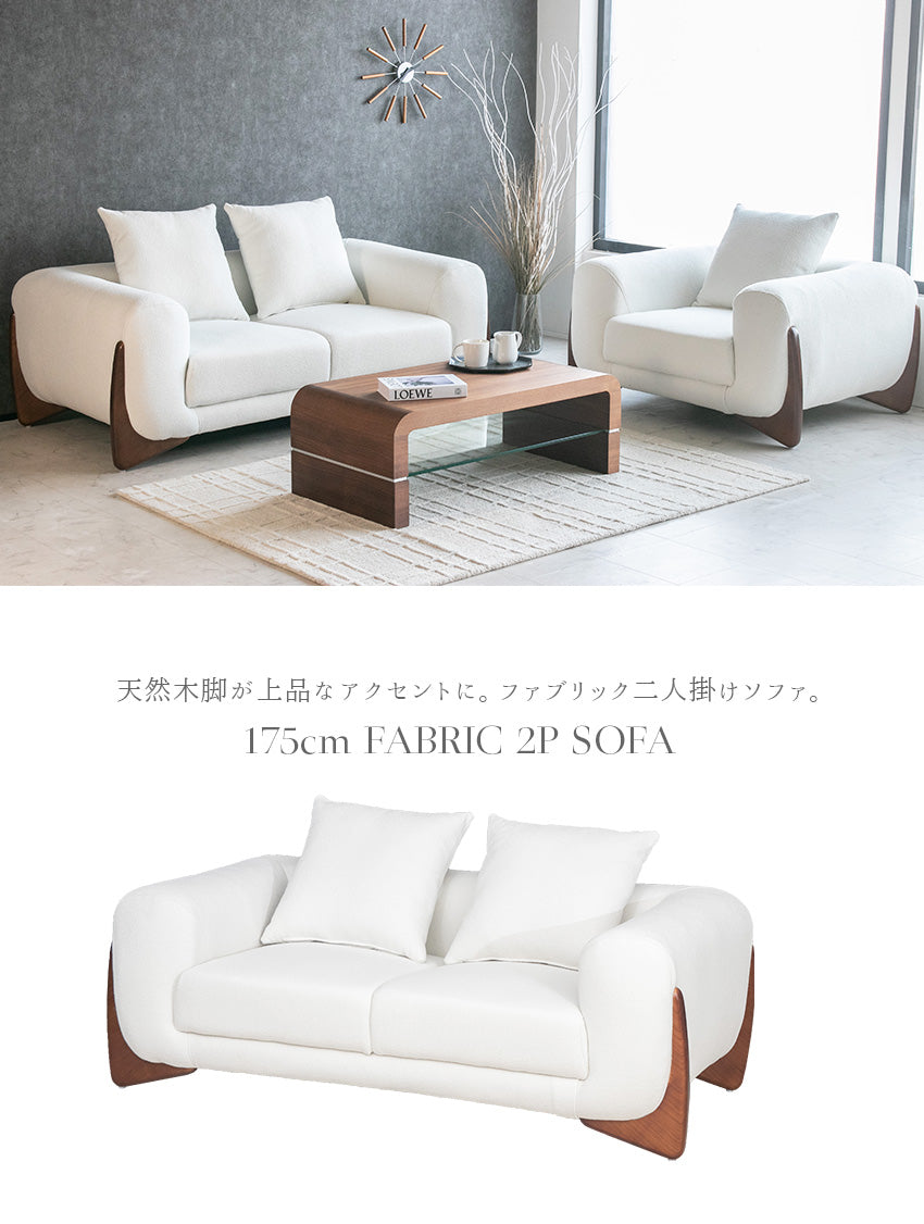 | 商品説明 | 天然木脚が上品なアクセントに。ファブリック二人掛けソファ。 |