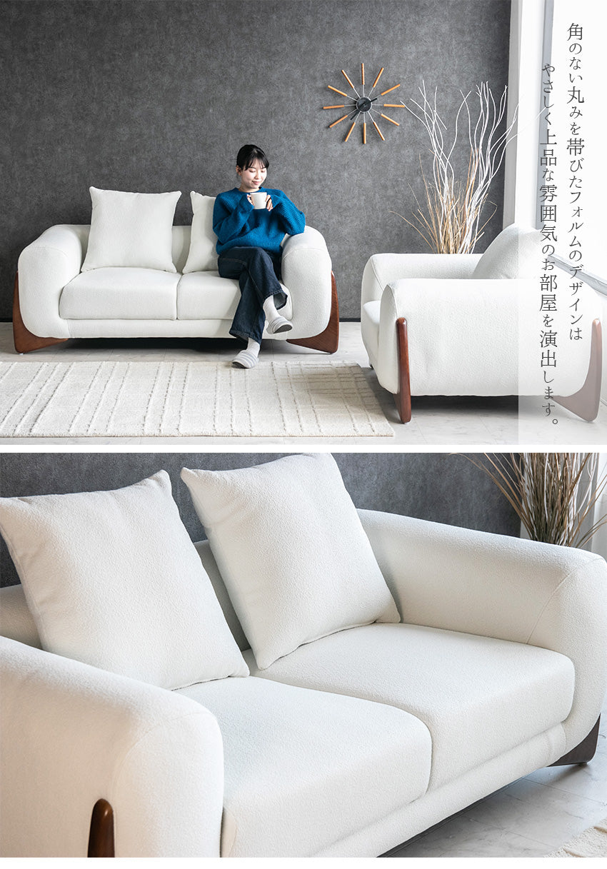 ソファー もこもこ 2人掛け 3人掛け ホワイト 白 ブークレ ファブリック かわいい おしゃれ 10173