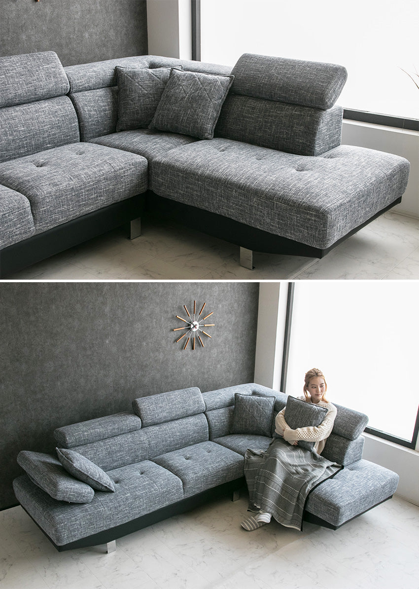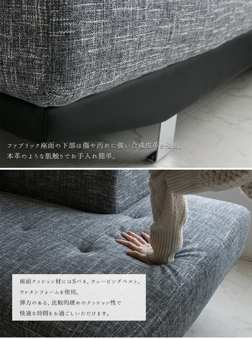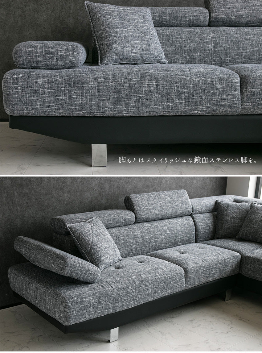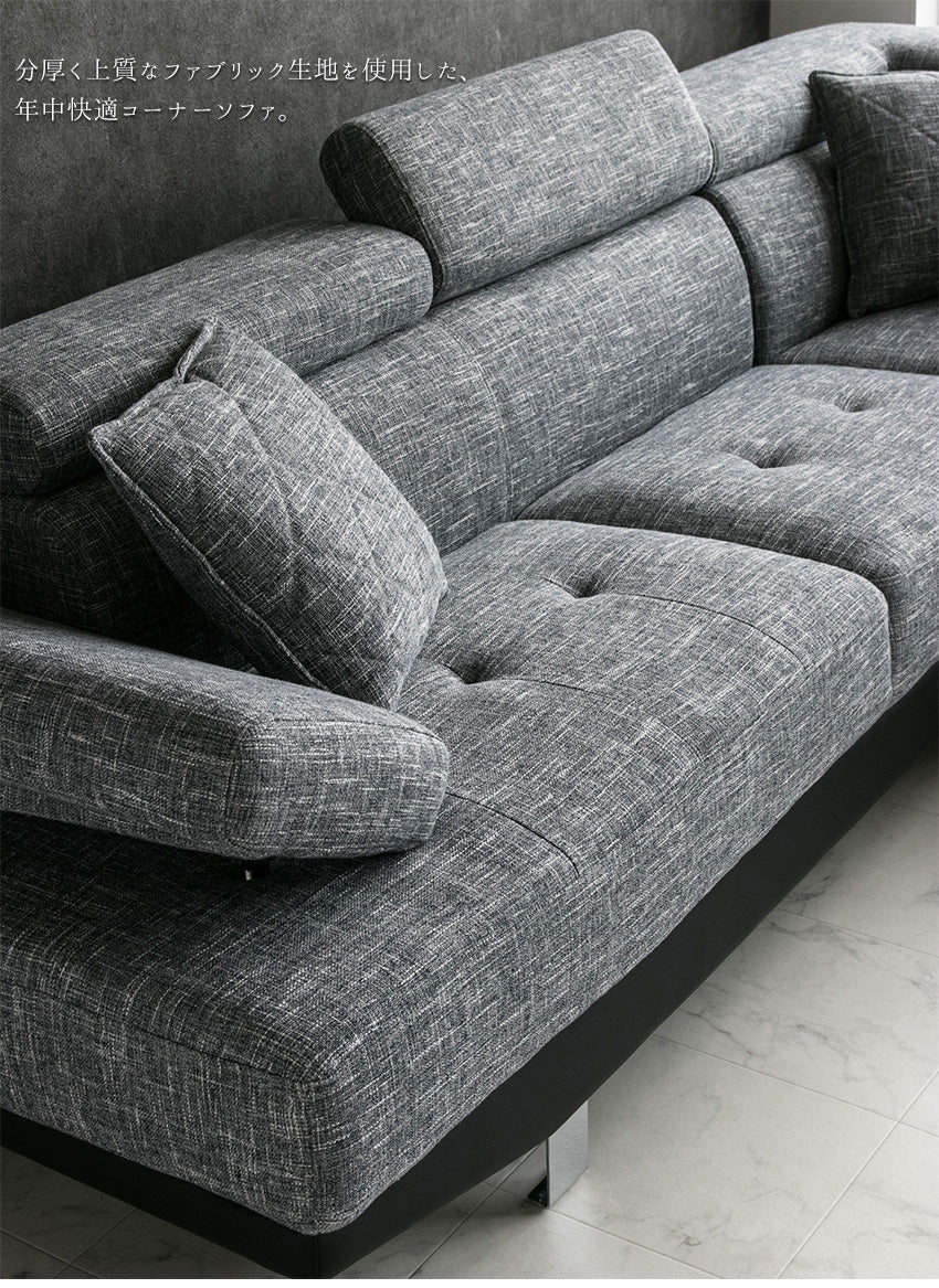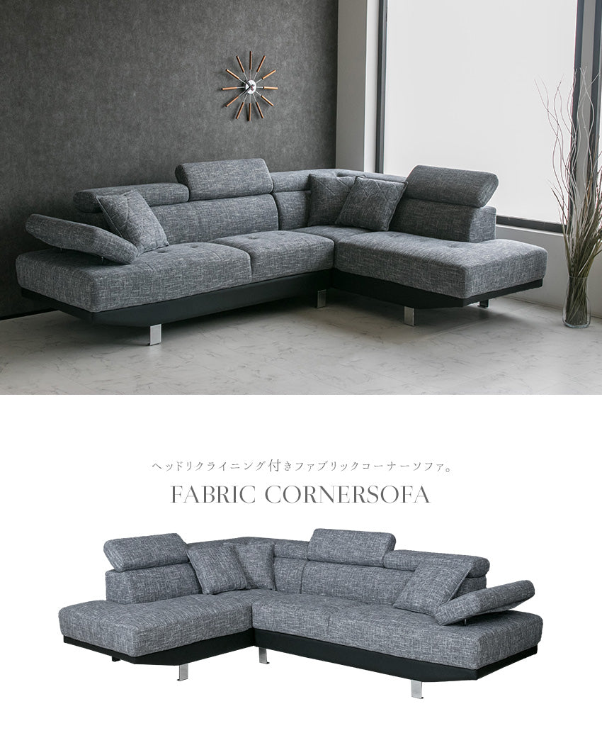 | 商品説明 | 分厚く上質なファブリック生地を使用したヘッドリクライニング付きコーナーソファー。(クッション付き) |