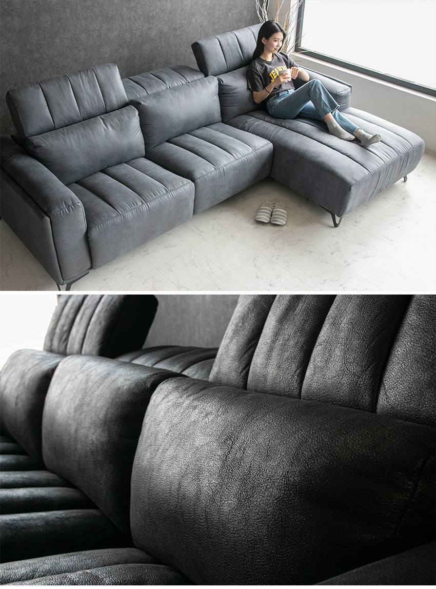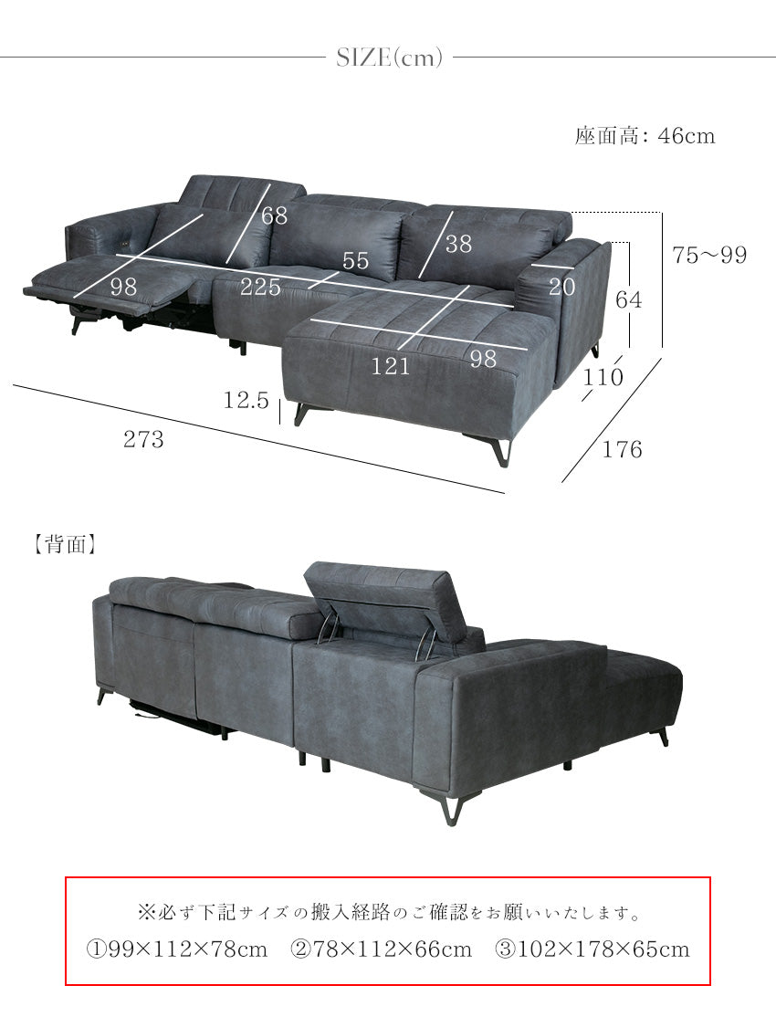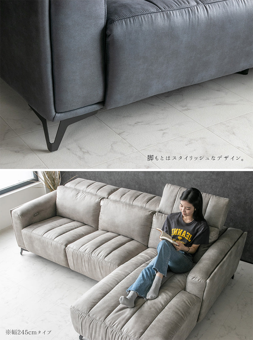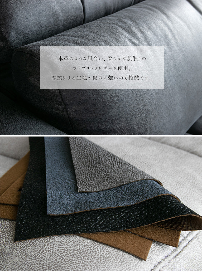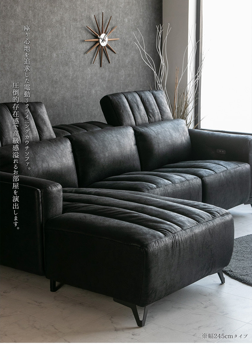 | 商品説明 | 柔らかな肌触りのファブリックレザーを使用した、電動リクライニングカウチソファ。 |