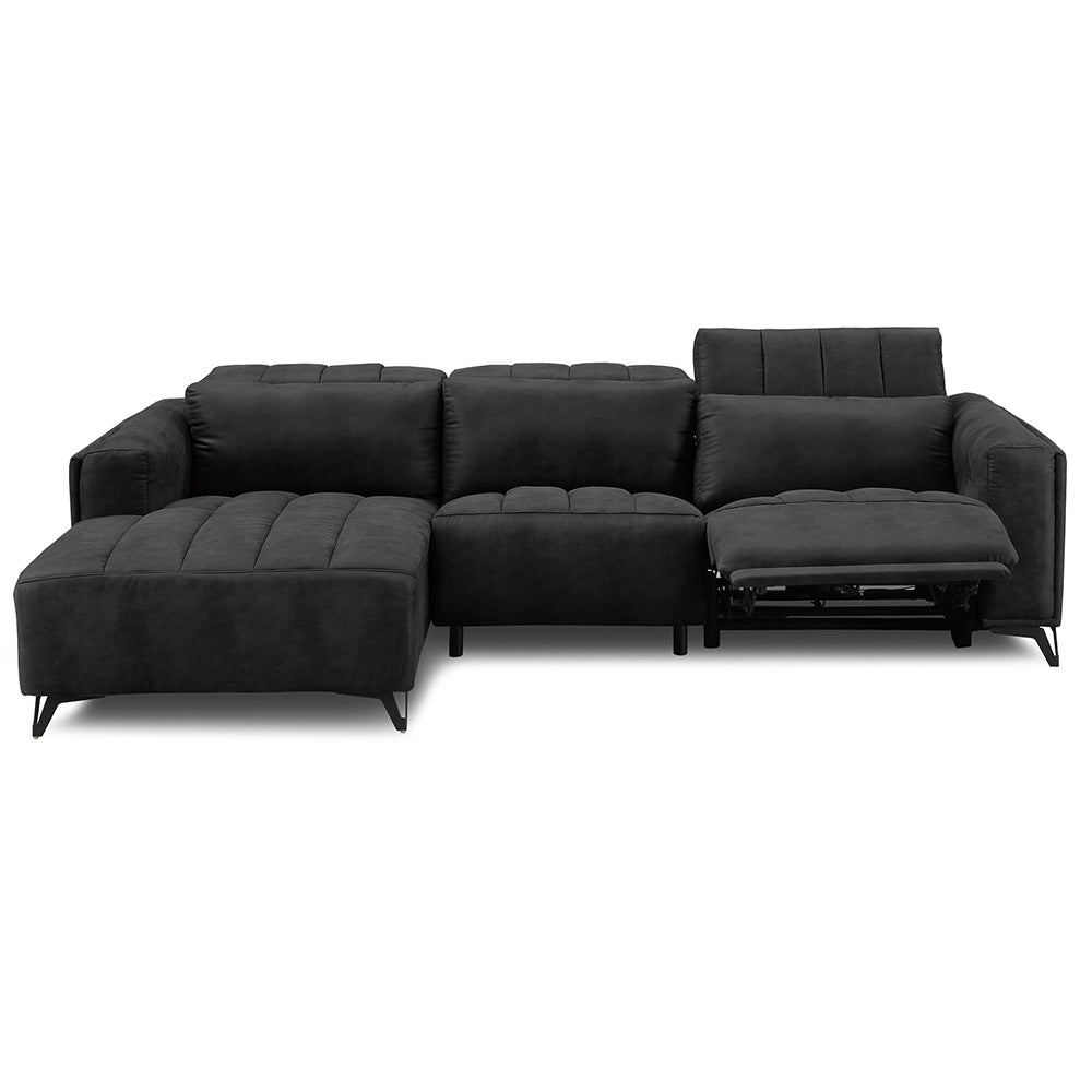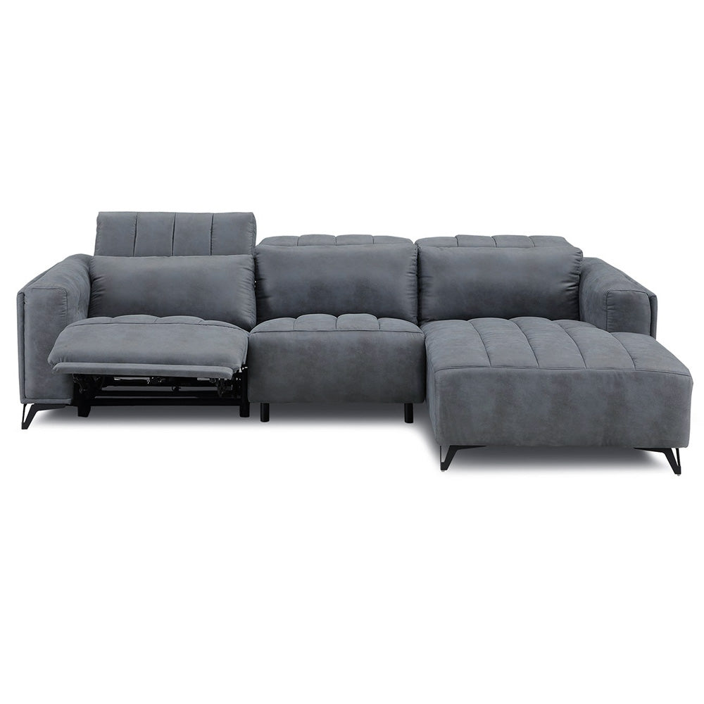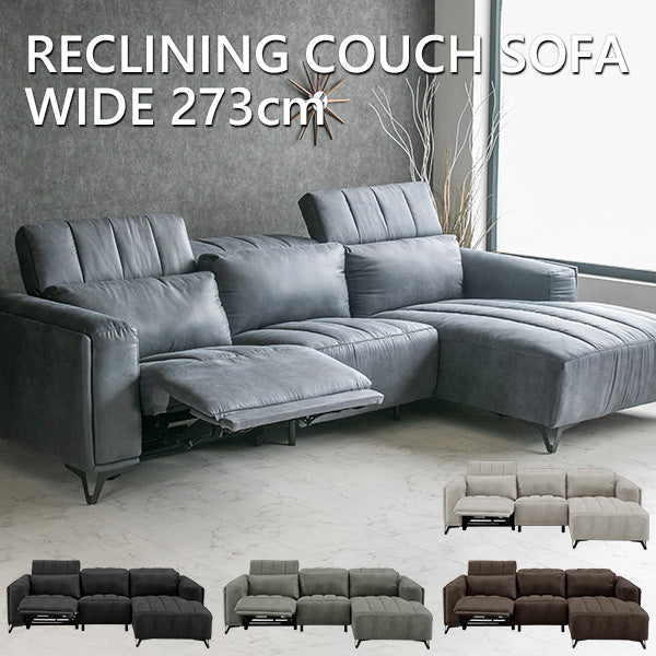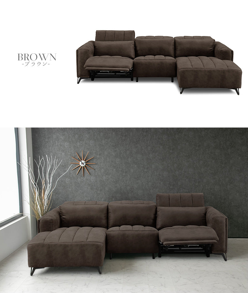 電動 リクライニング カウチソファ ファブリックレザー 3人掛け ブルー ブラック ベージュ グレー ブラウン 幅273cm
