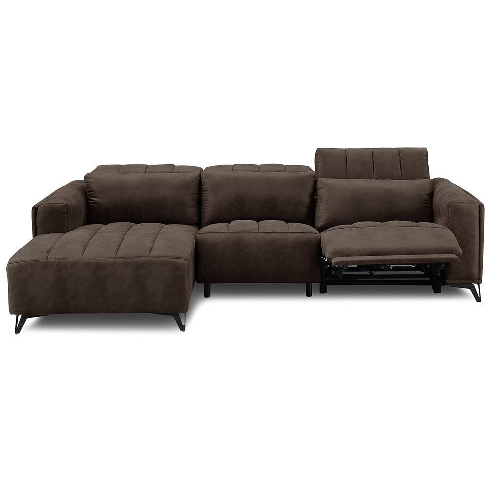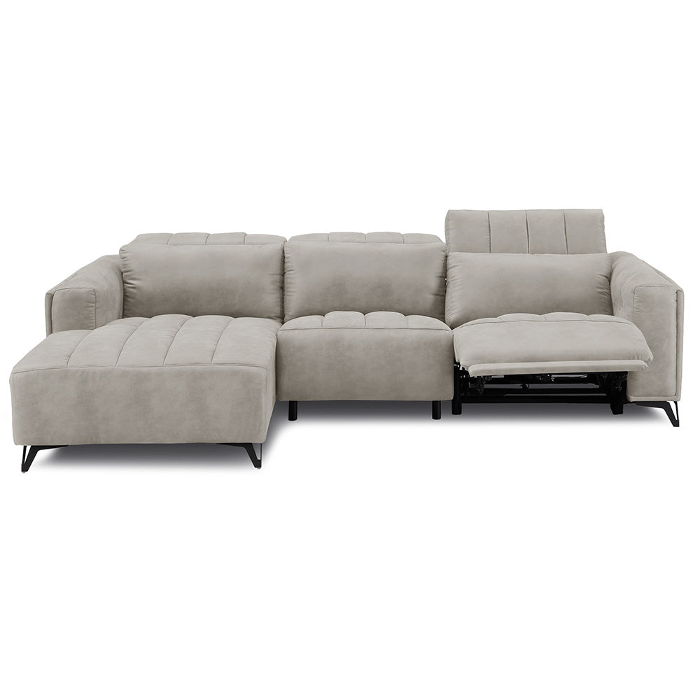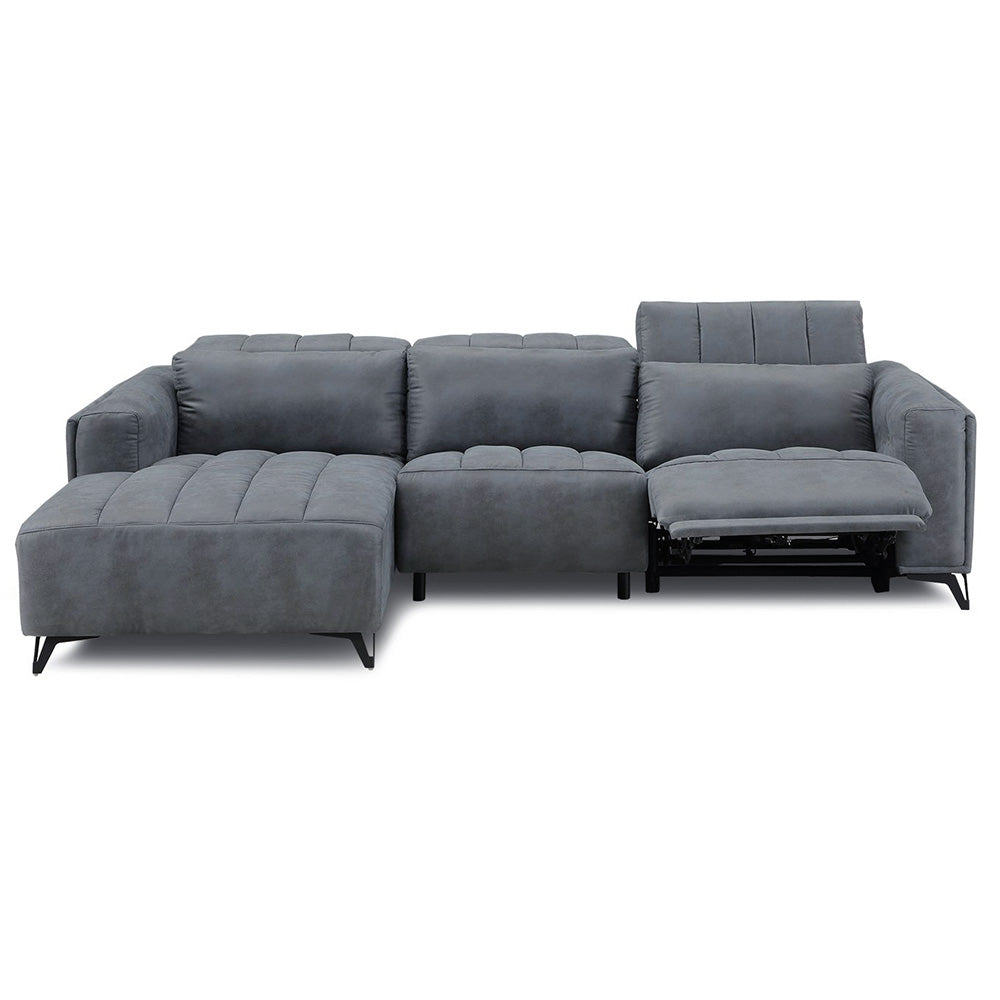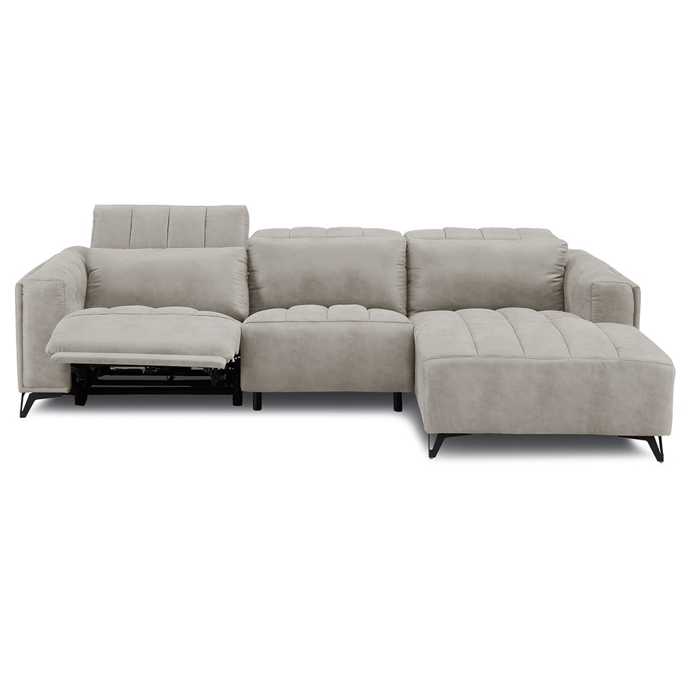 電動 リクライニング カウチソファ ファブリックレザー 3人掛け ブルー ブラック ベージュ グレー ブラウン 幅273cm