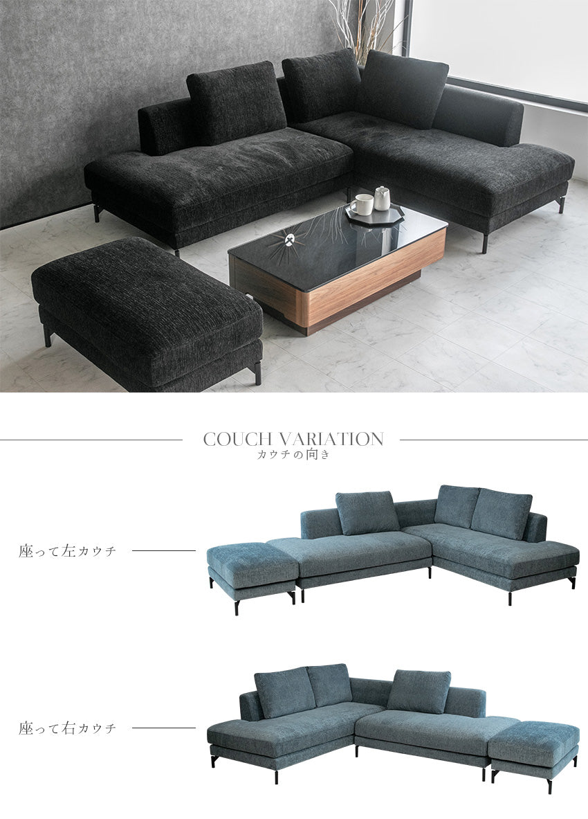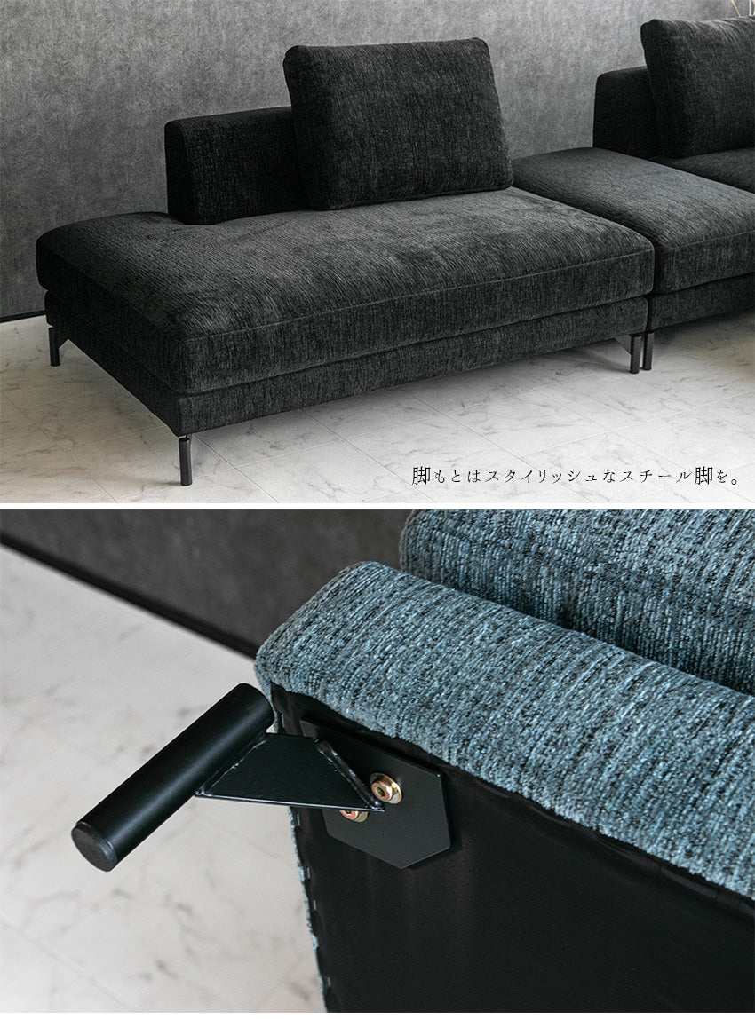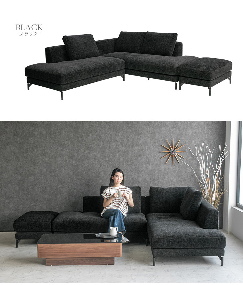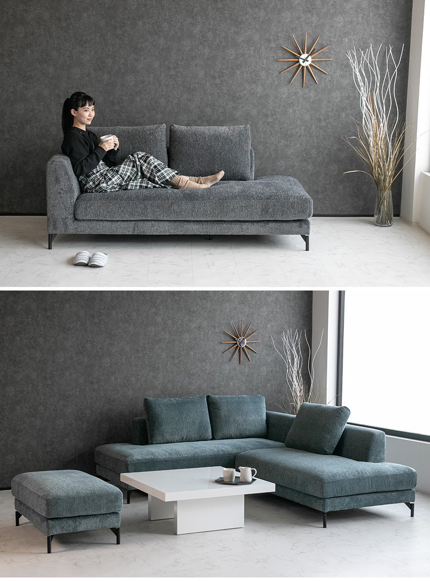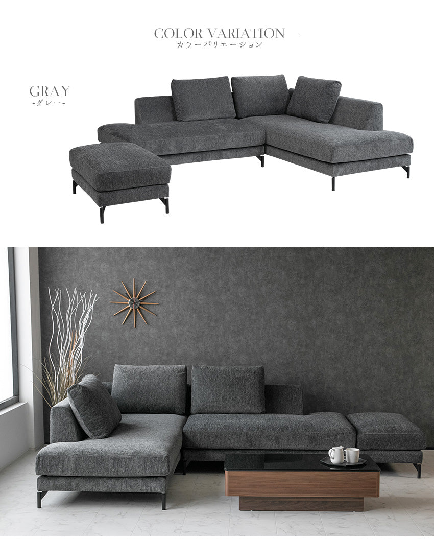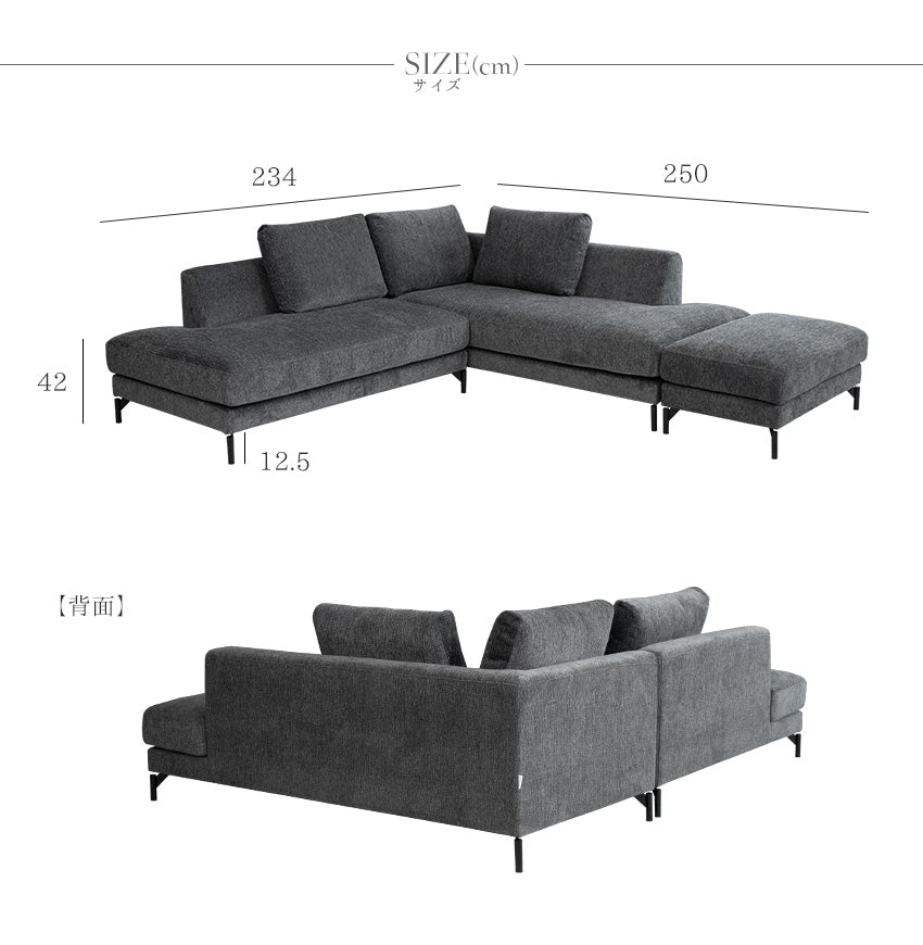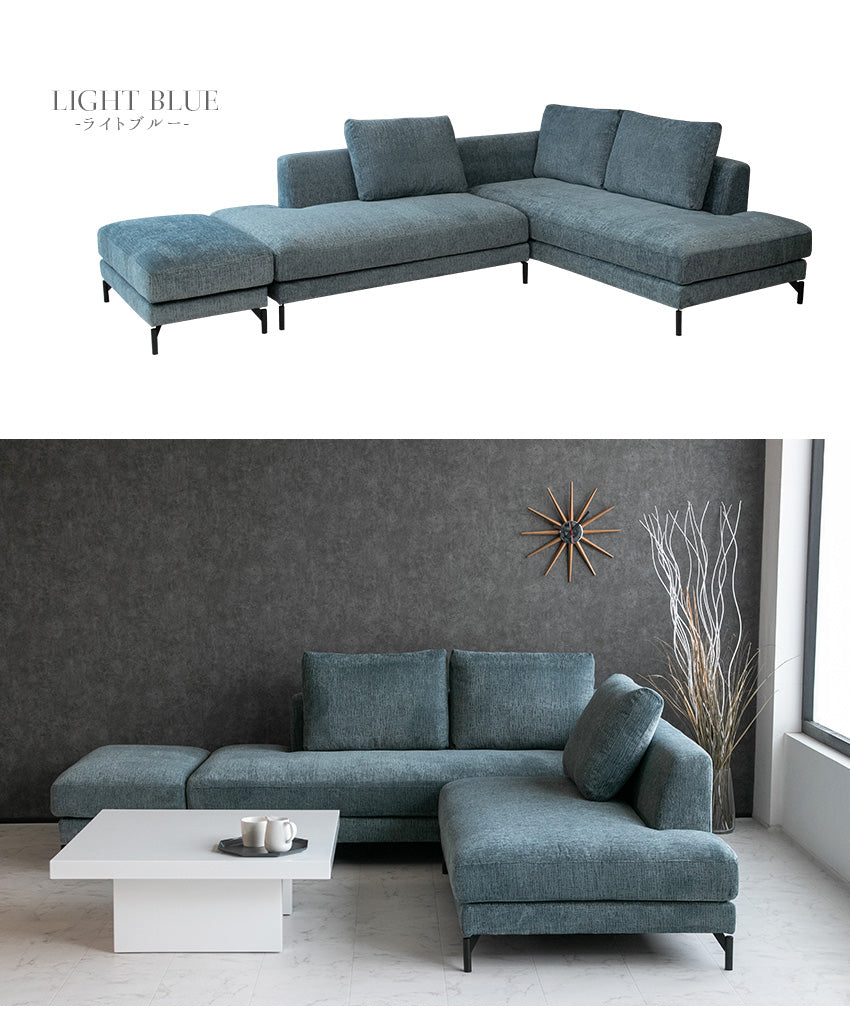 カウチソファ 3人掛け 4人掛け ファブリック I字 ブラック グレー ライトブルー クッション付き 幅234cm