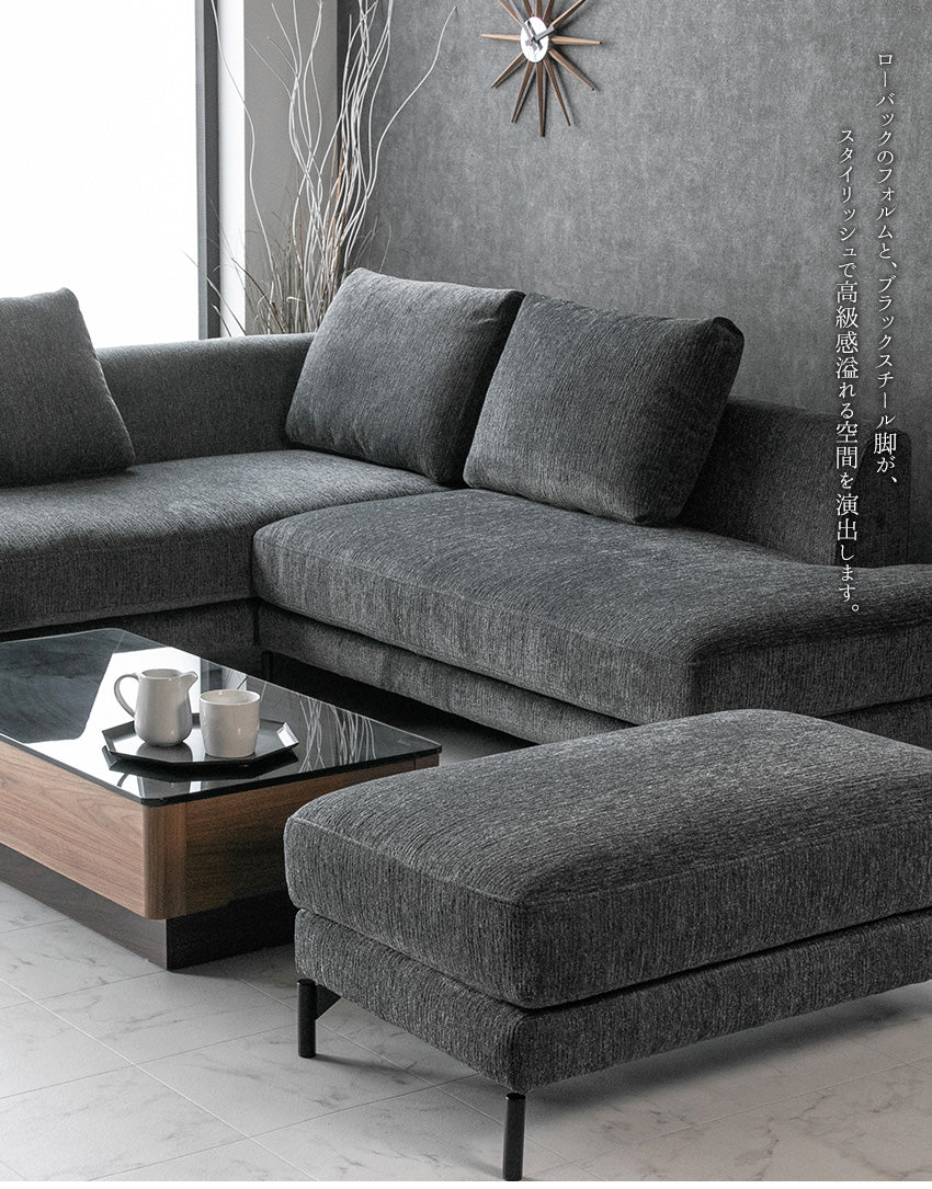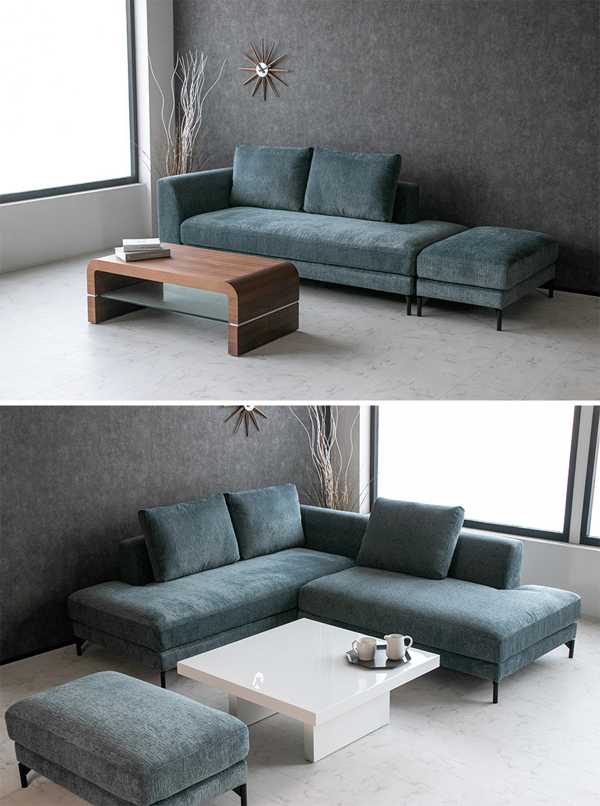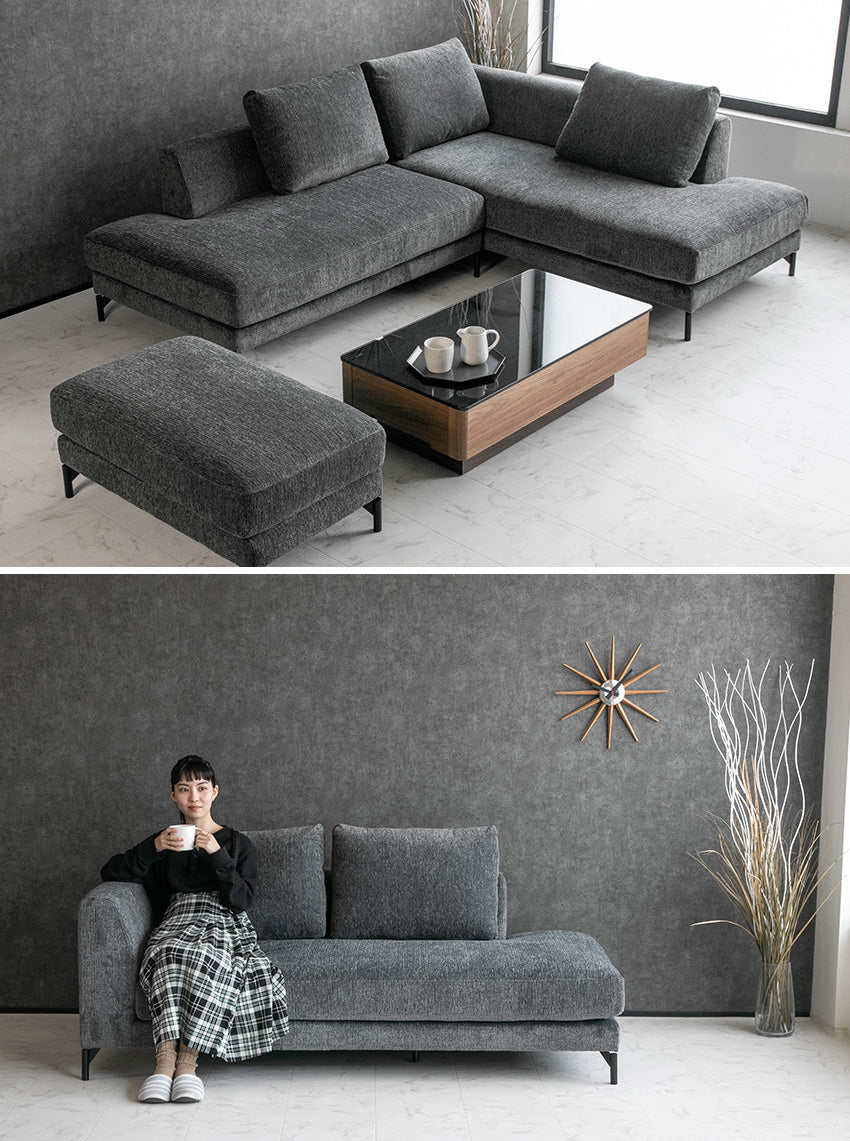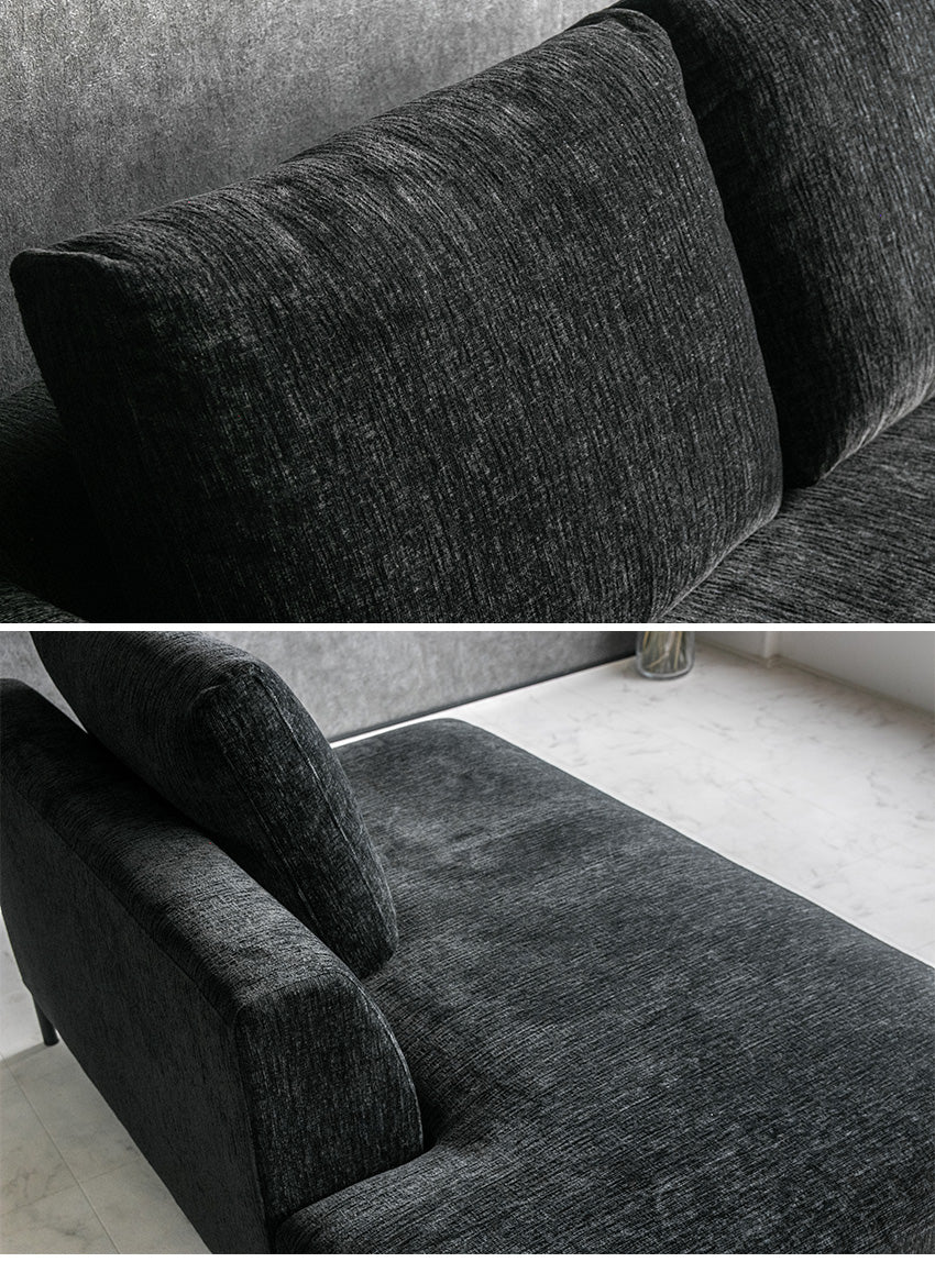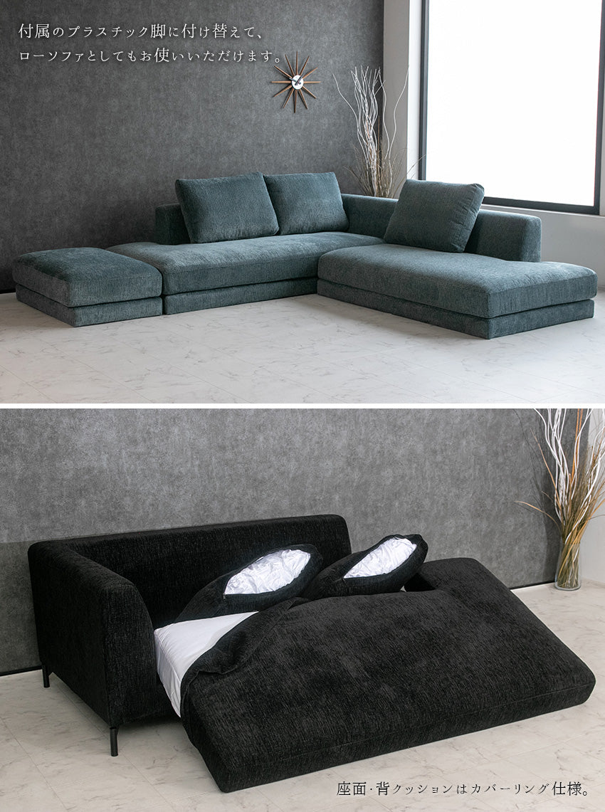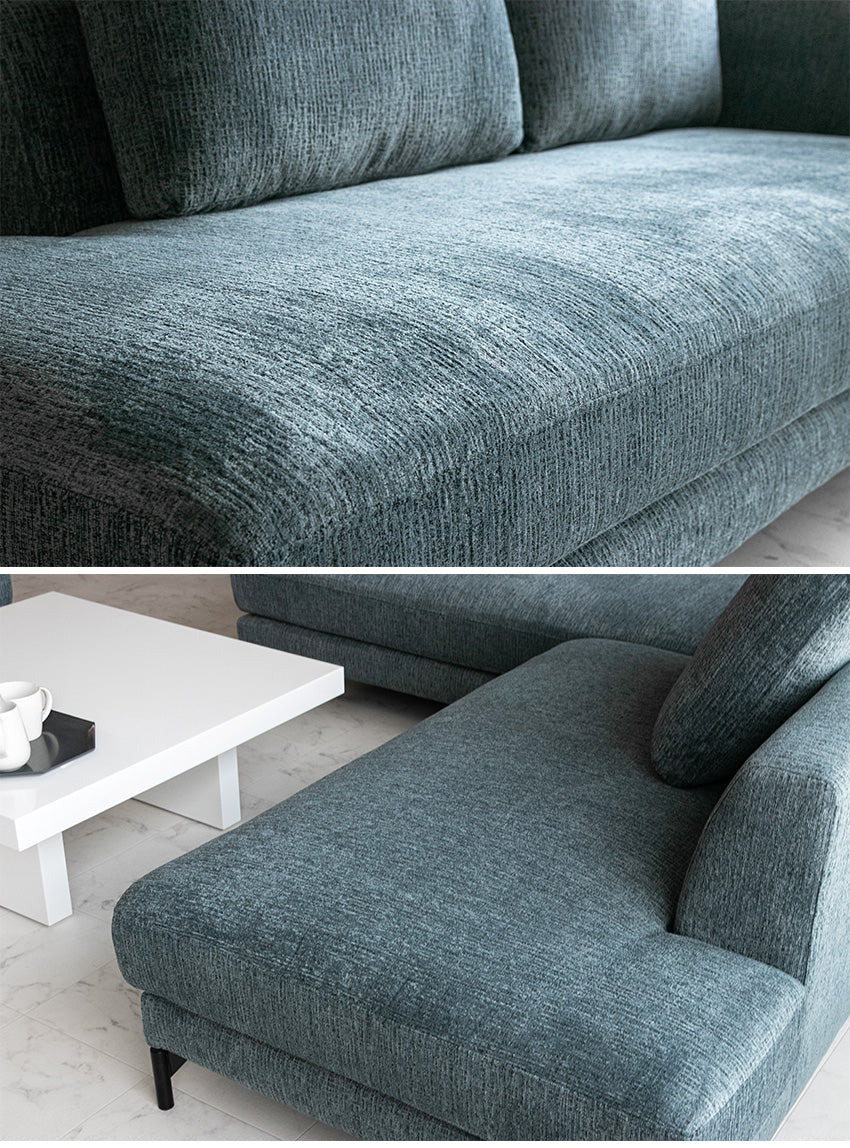 カウチソファ 3人掛け 4人掛け ファブリック I字 ブラック グレー ライトブルー クッション付き 幅234cm