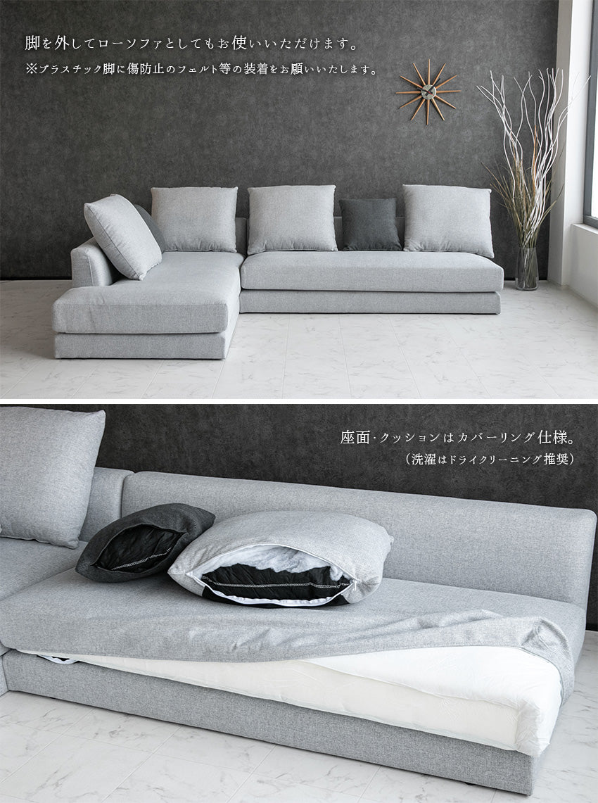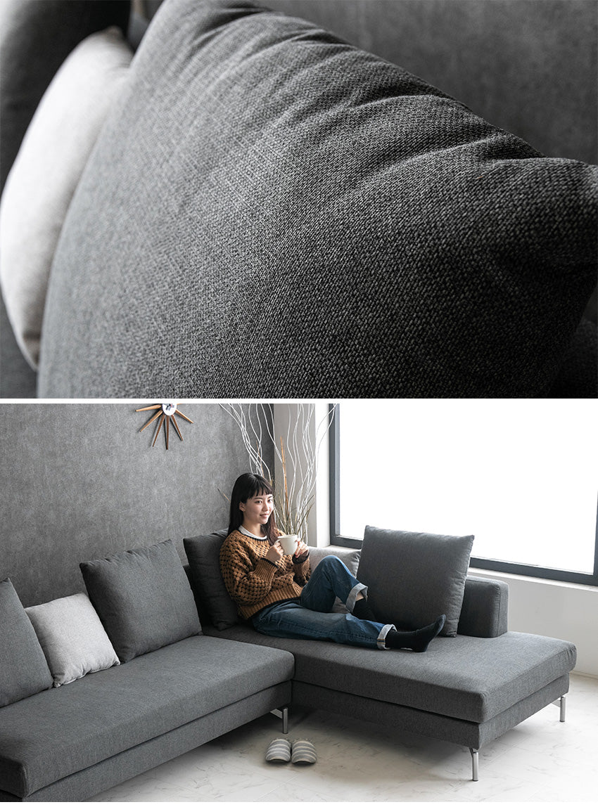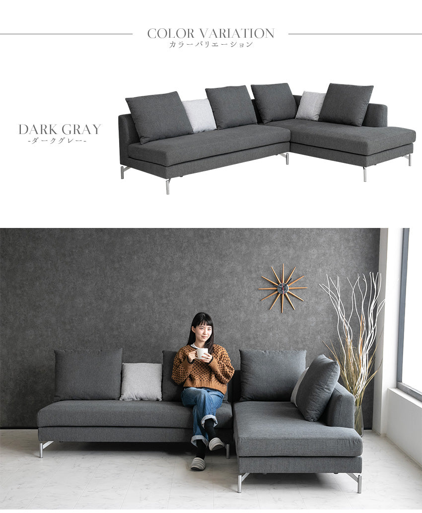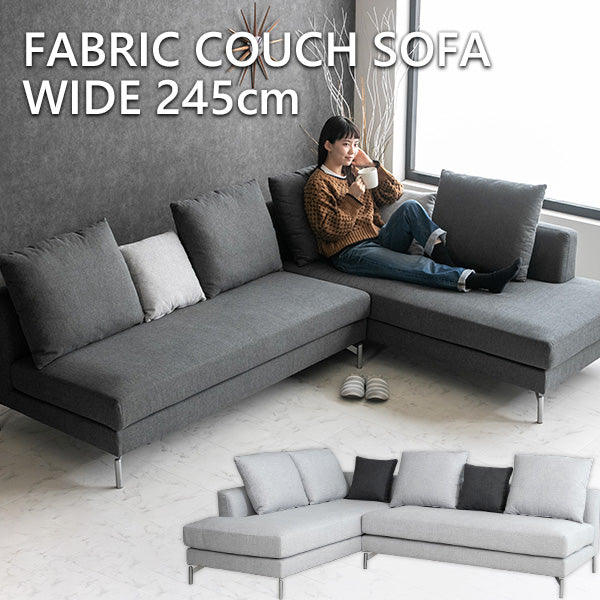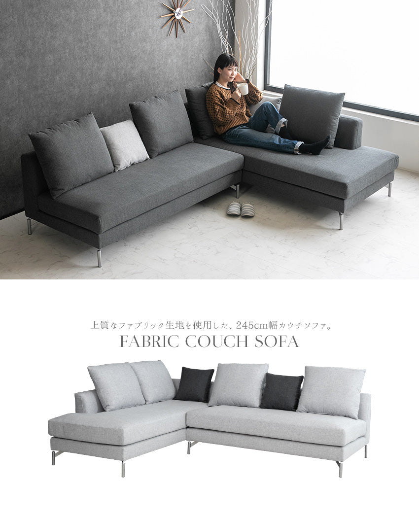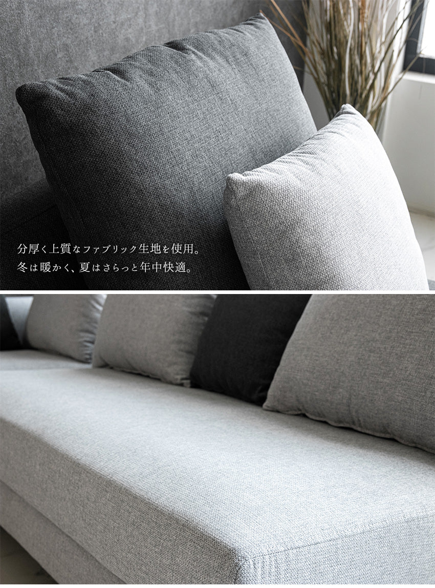 カウチソファ 3人掛け 4人掛け ファブリック I字 ダークグレー ライトグレー クッション付き 幅245cm