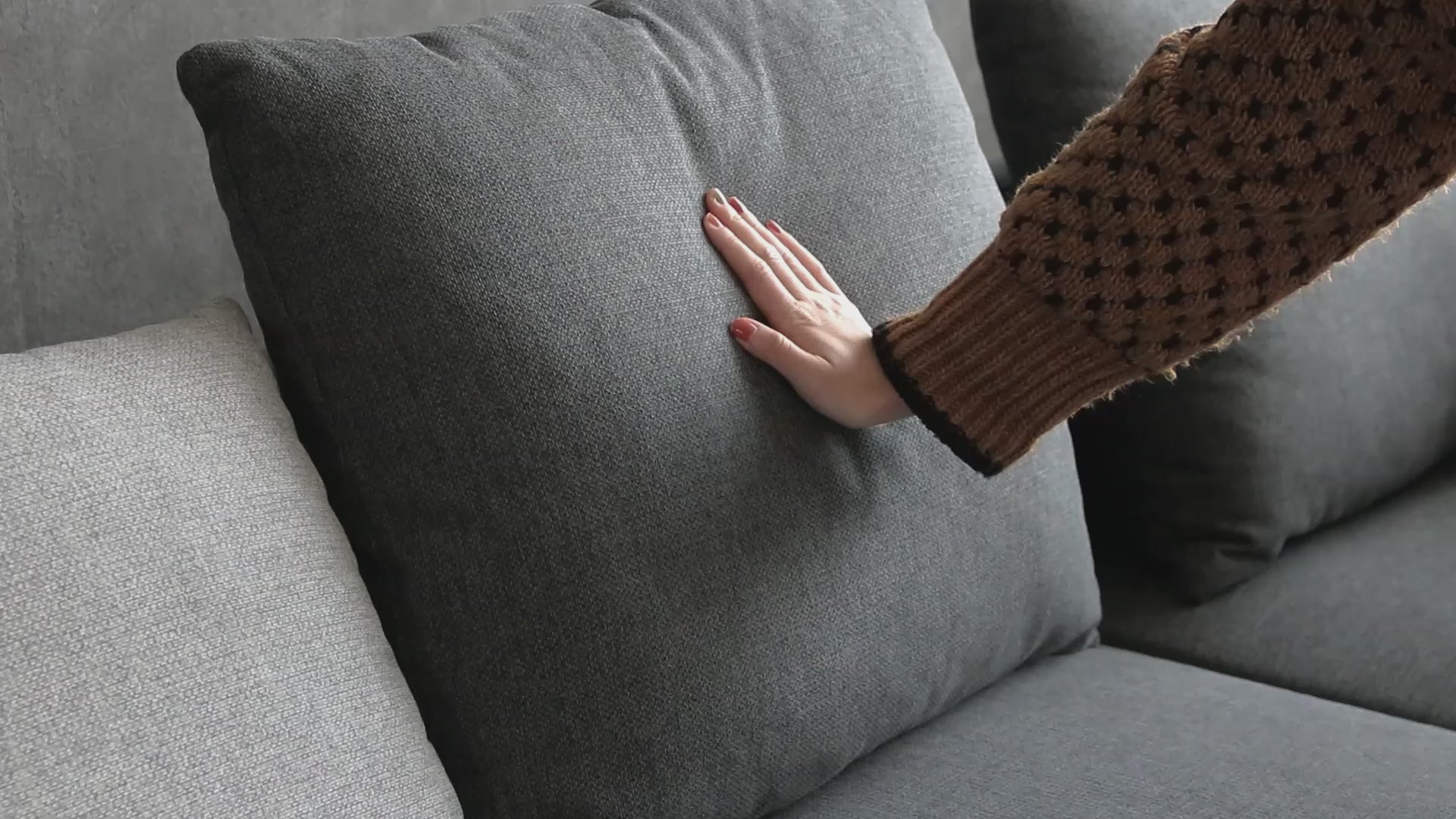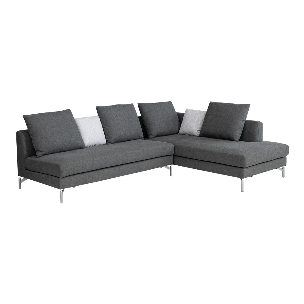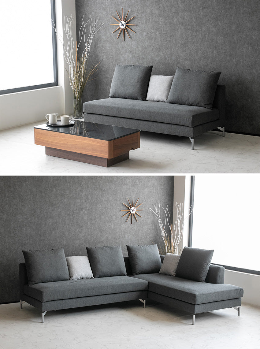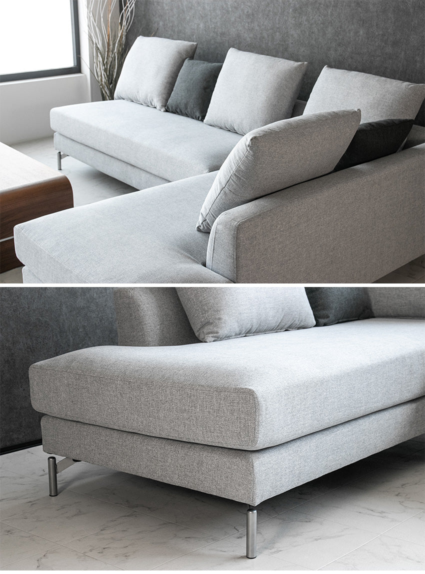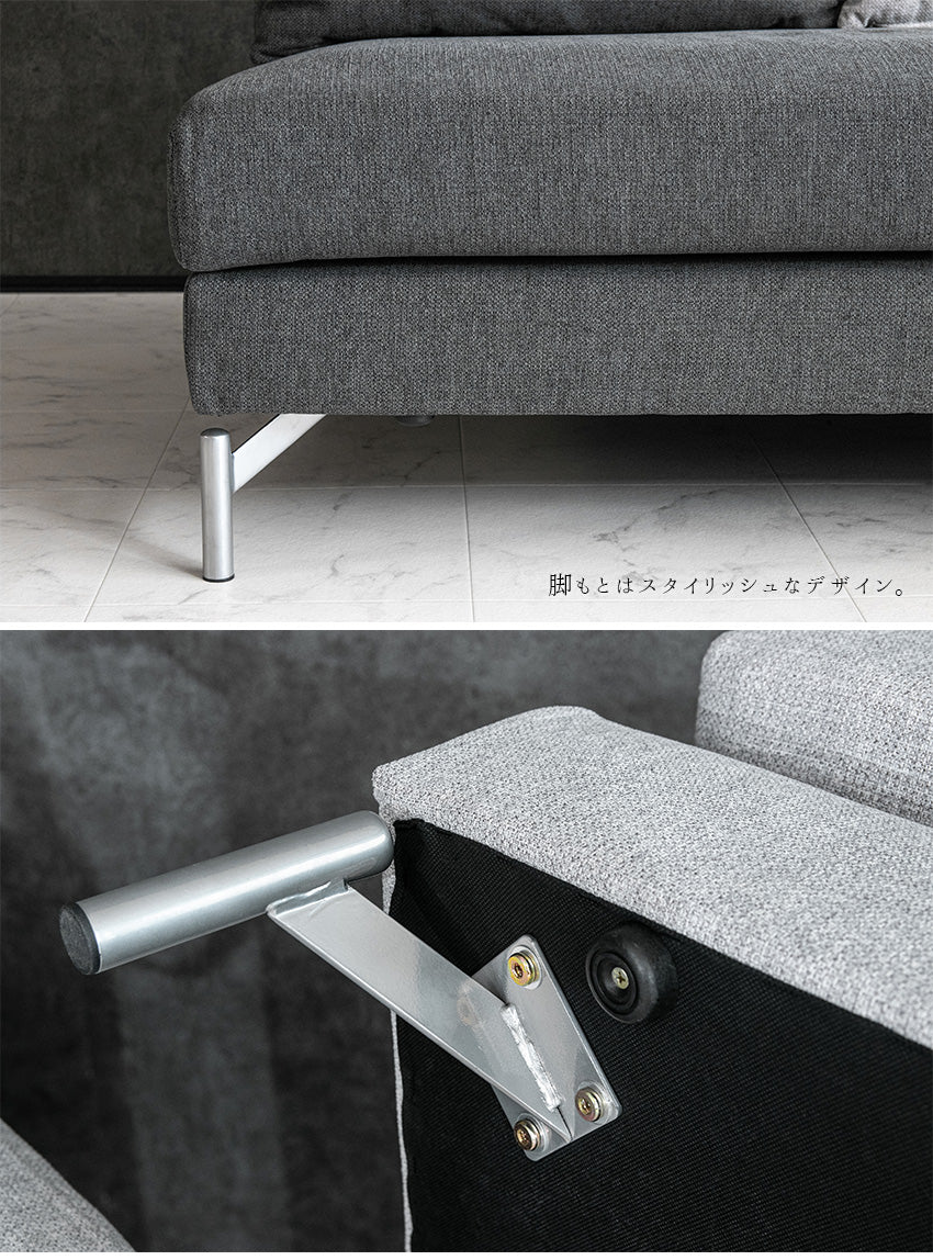 カウチソファ 3人掛け 4人掛け ファブリック I字 ダークグレー ライトグレー クッション付き 幅245cm