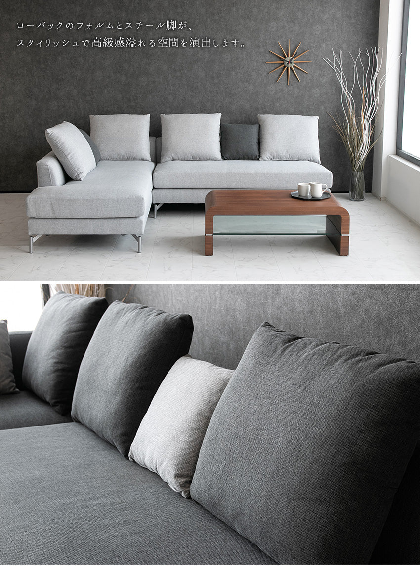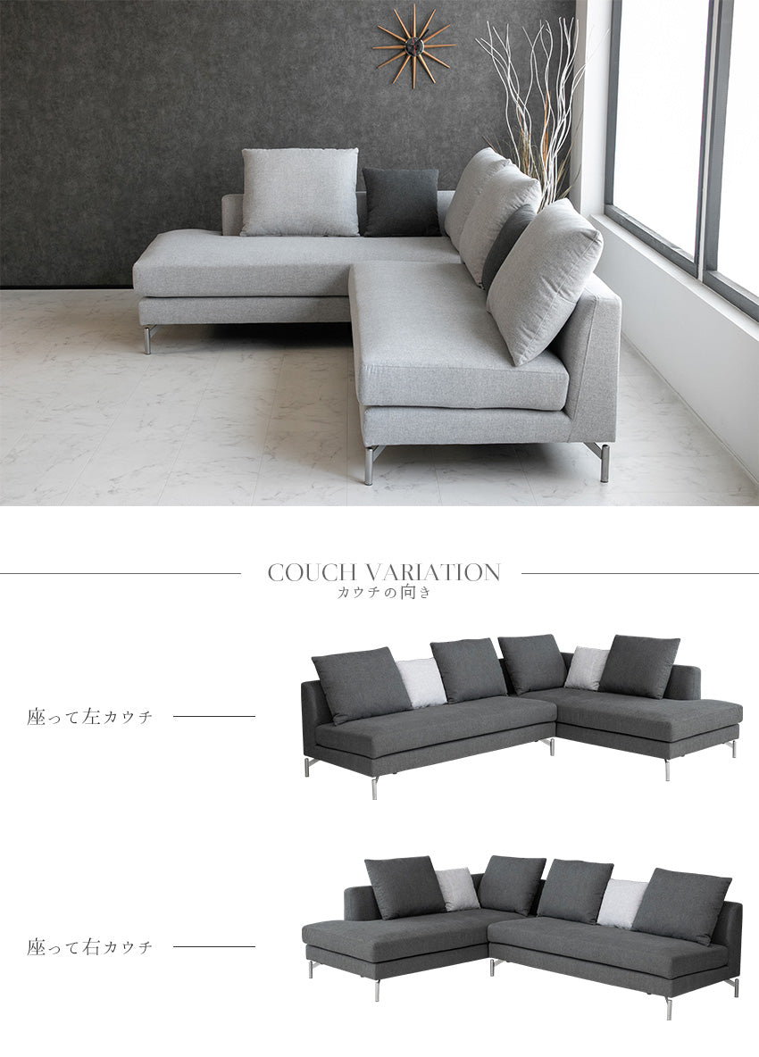 | 商品説明 | 上質なファブリック生地を使用した、カウチソファ。 クッション4個、小クッション2個付属となります。 |