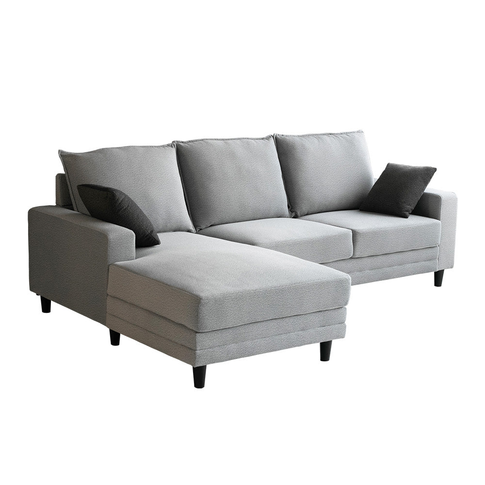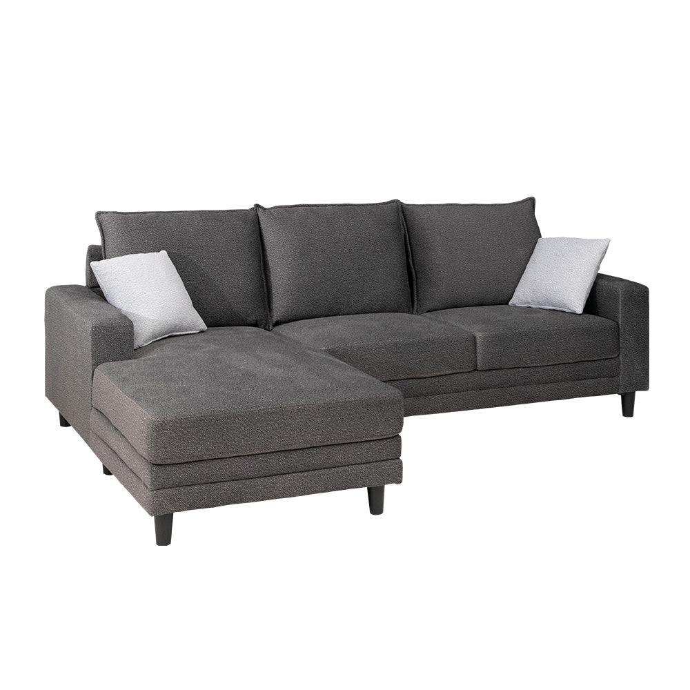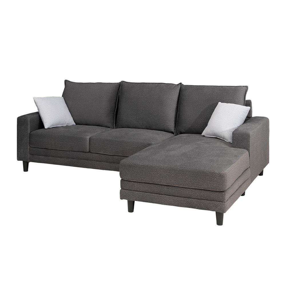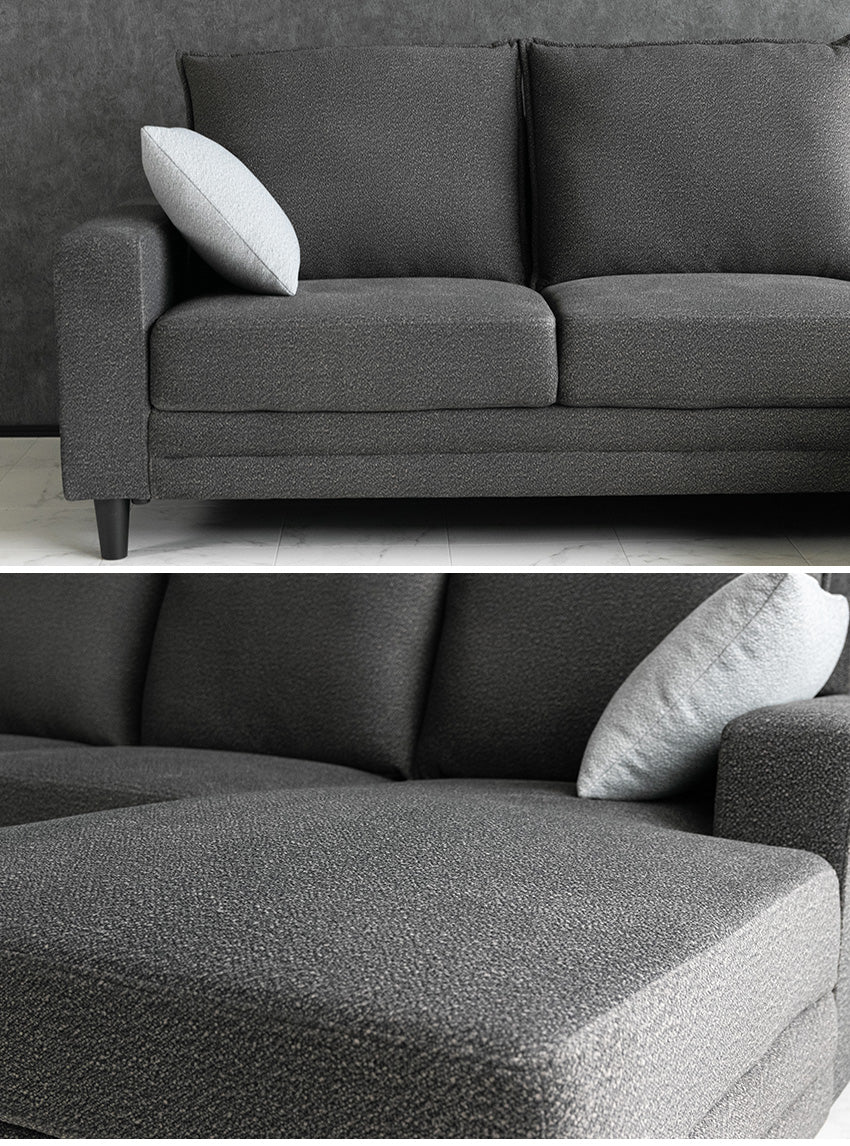 カウチソファ 3人掛け ファブリック I字 ダークグレー グレー クッション付き 幅240cm
