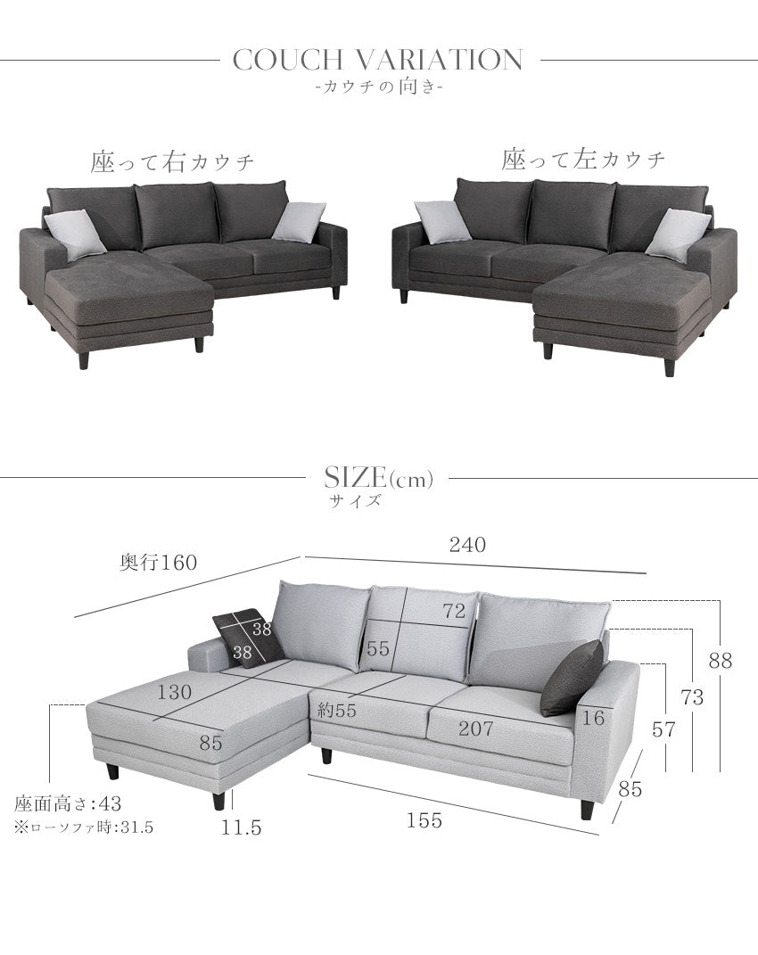 | サイズ | 幅240×奥行き160×高さ88cm / 座面高:43cm |