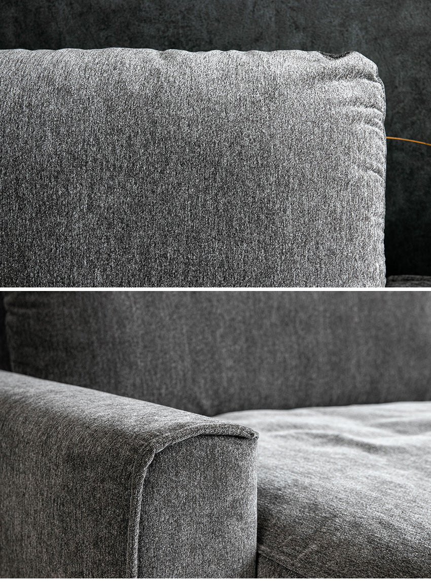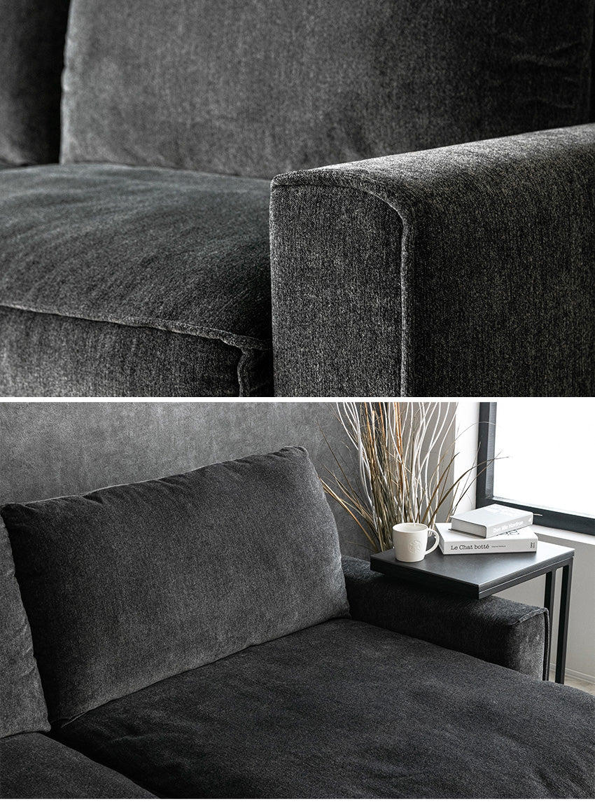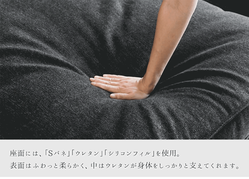 | 材質 | 座面:Sバネ、ウレタン、シリコンフィル 背面:シリコンフィル、ウェービングベルト 張地:ファブリック(背クッションのみカバーリング) 脚:アイアン(ソファ本体脚)、木(肘脚) |