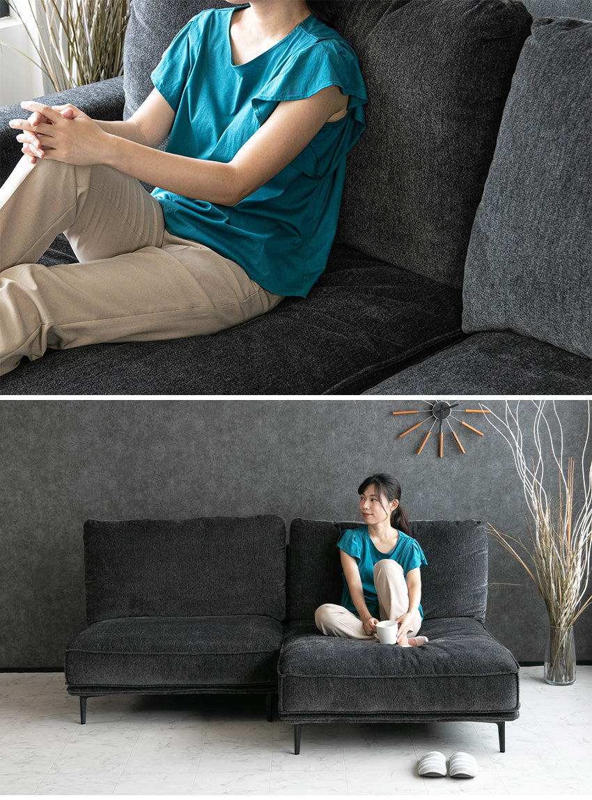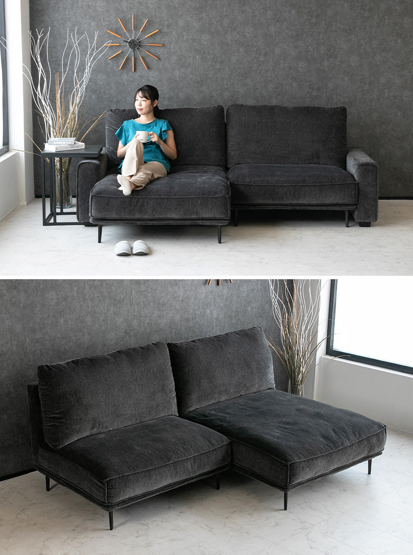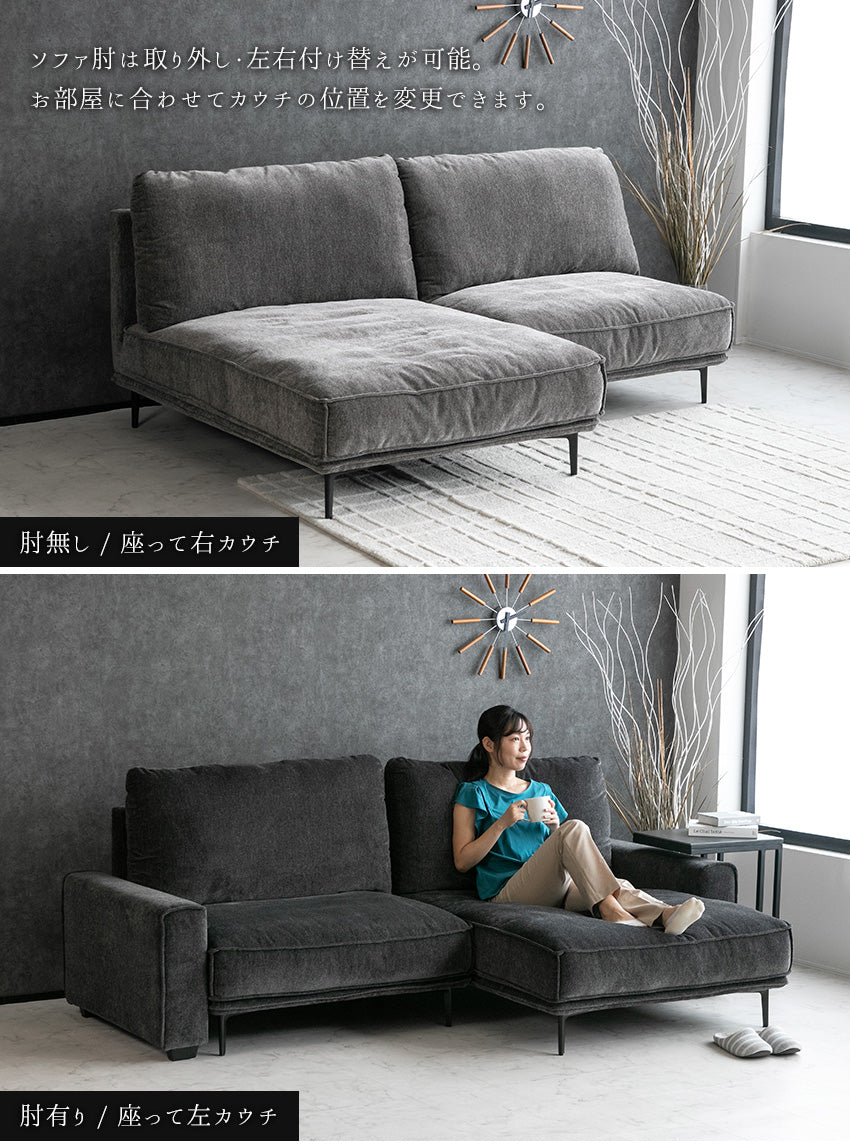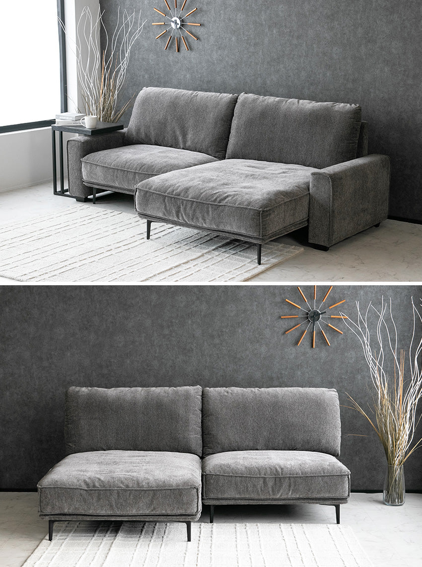 | 商品説明 | 左右の肘を取り外し、組み換え自由なファブリックカウチソファ。 |
