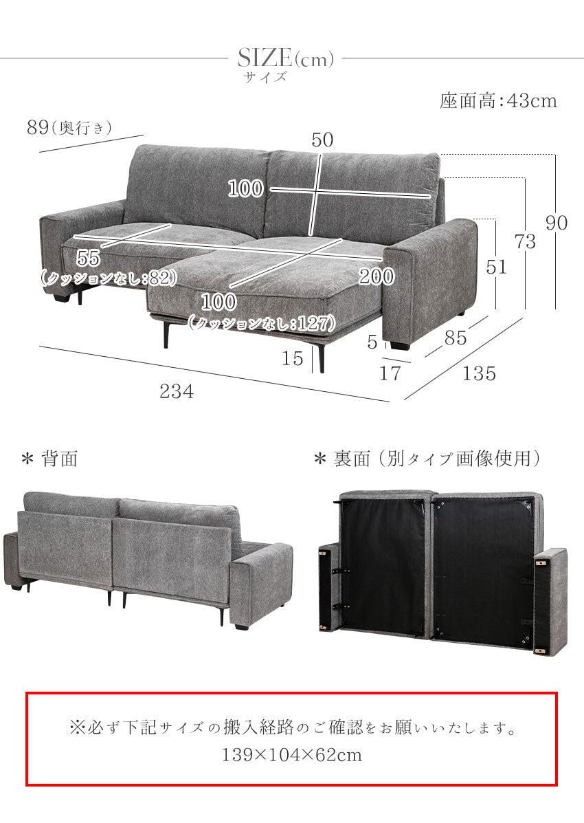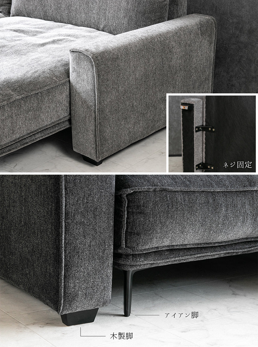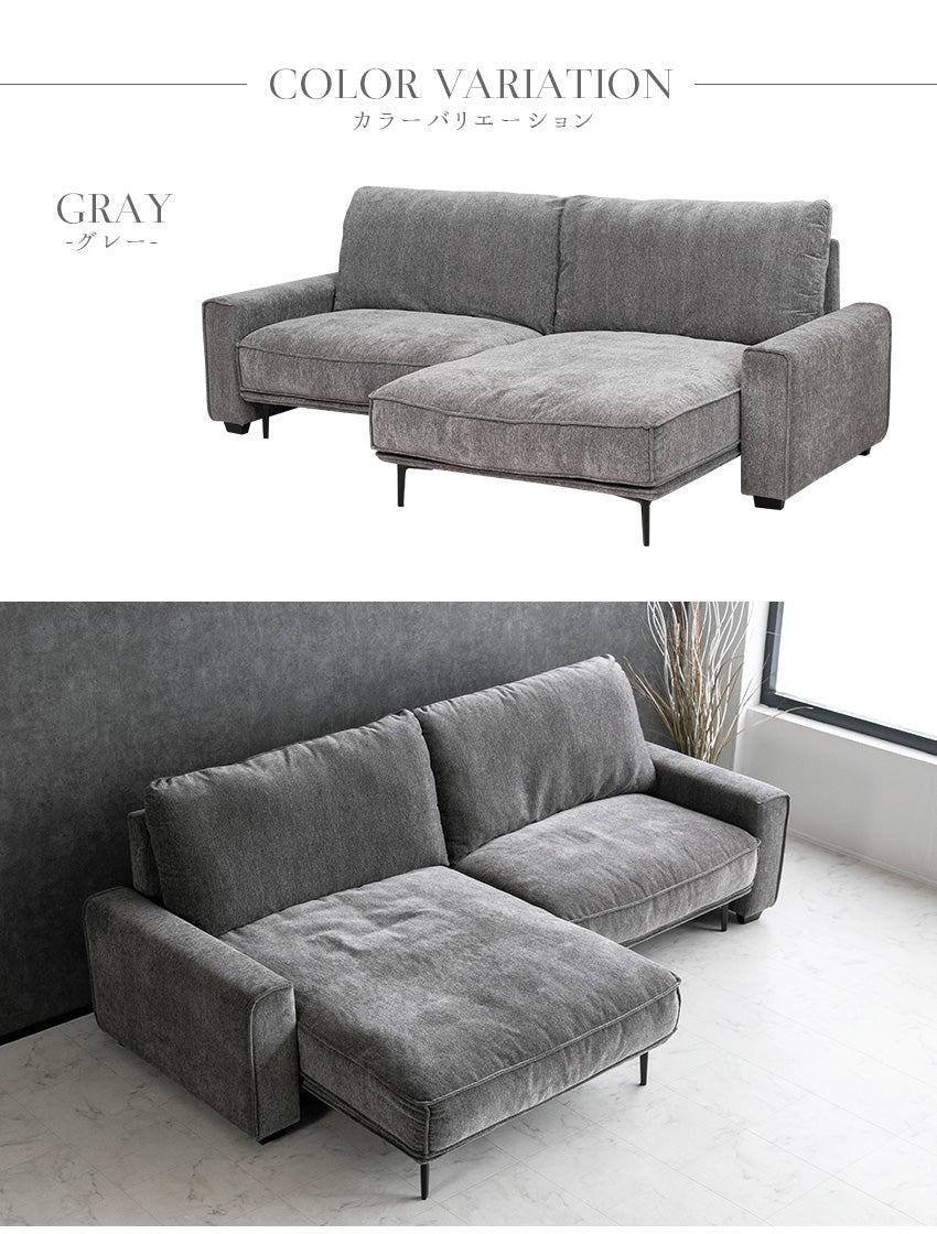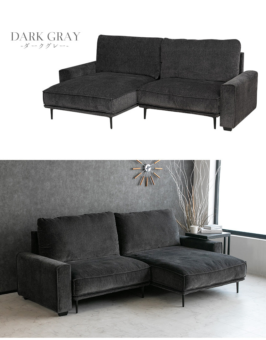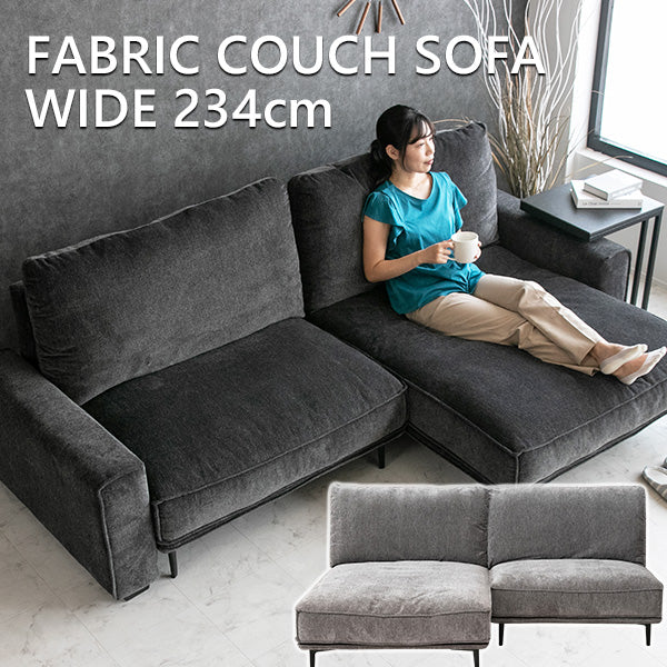 カウチソファ 3人掛け 4人掛け ファブリック 片肘 肘なし グレー ダークグレー 幅234cm