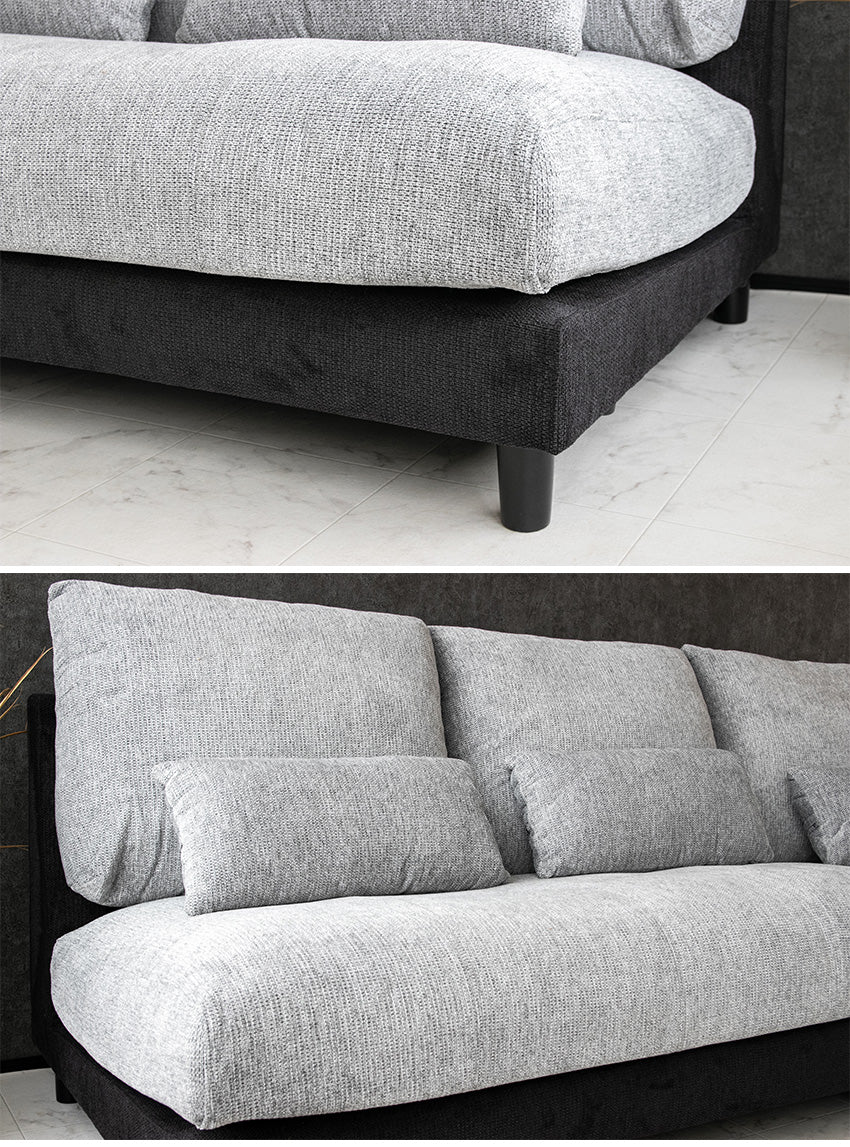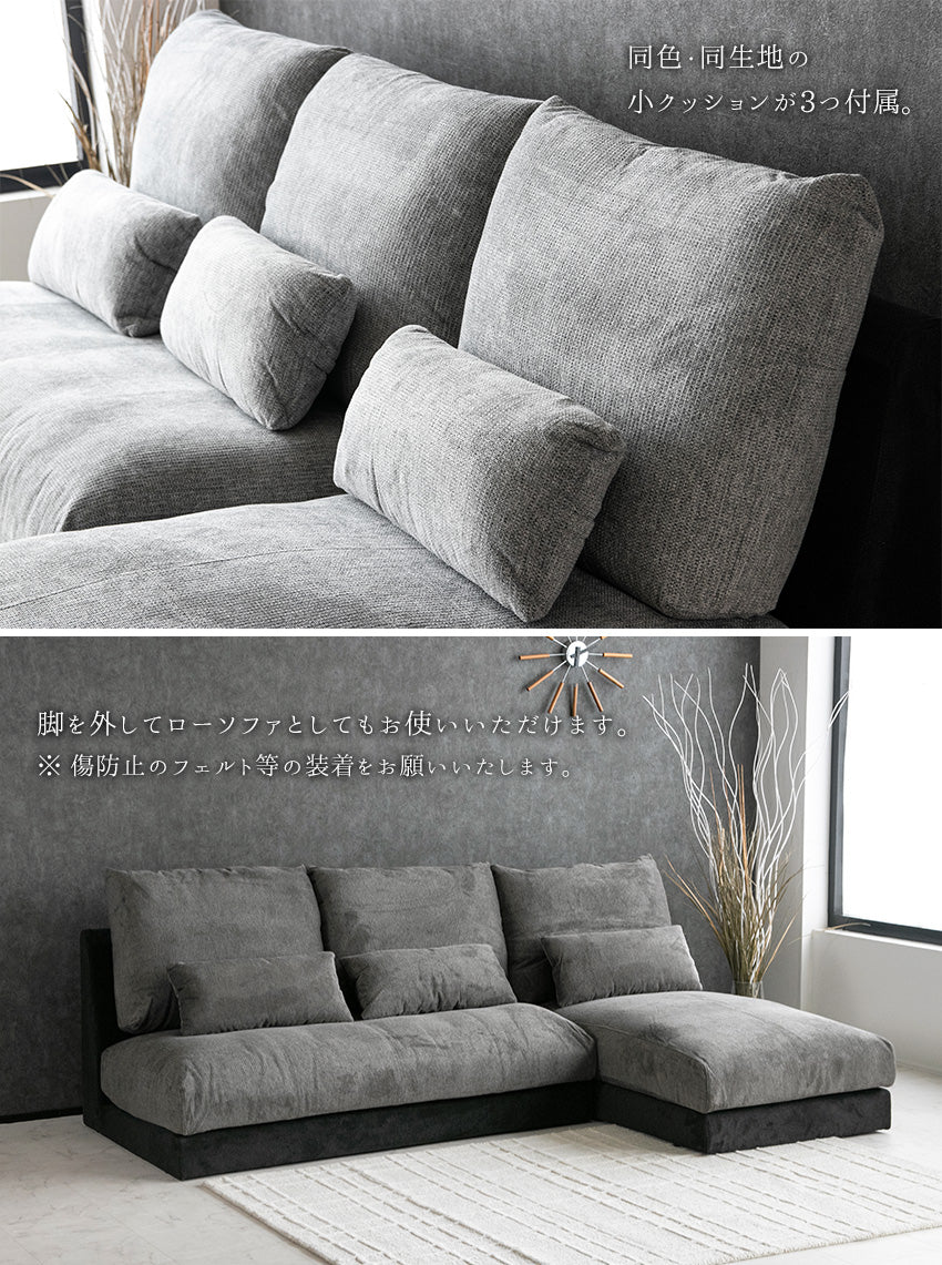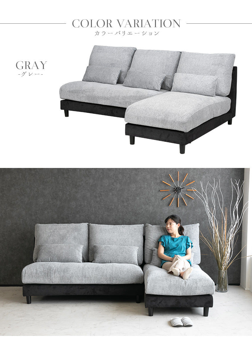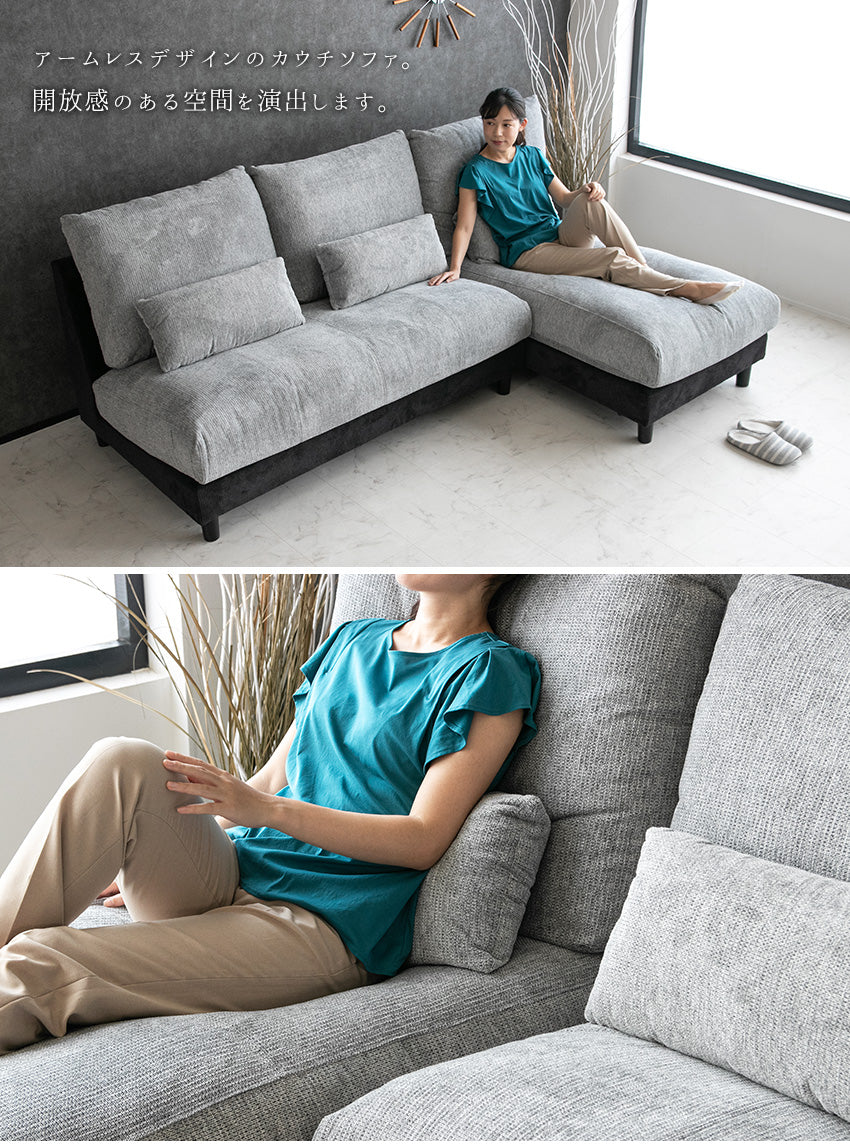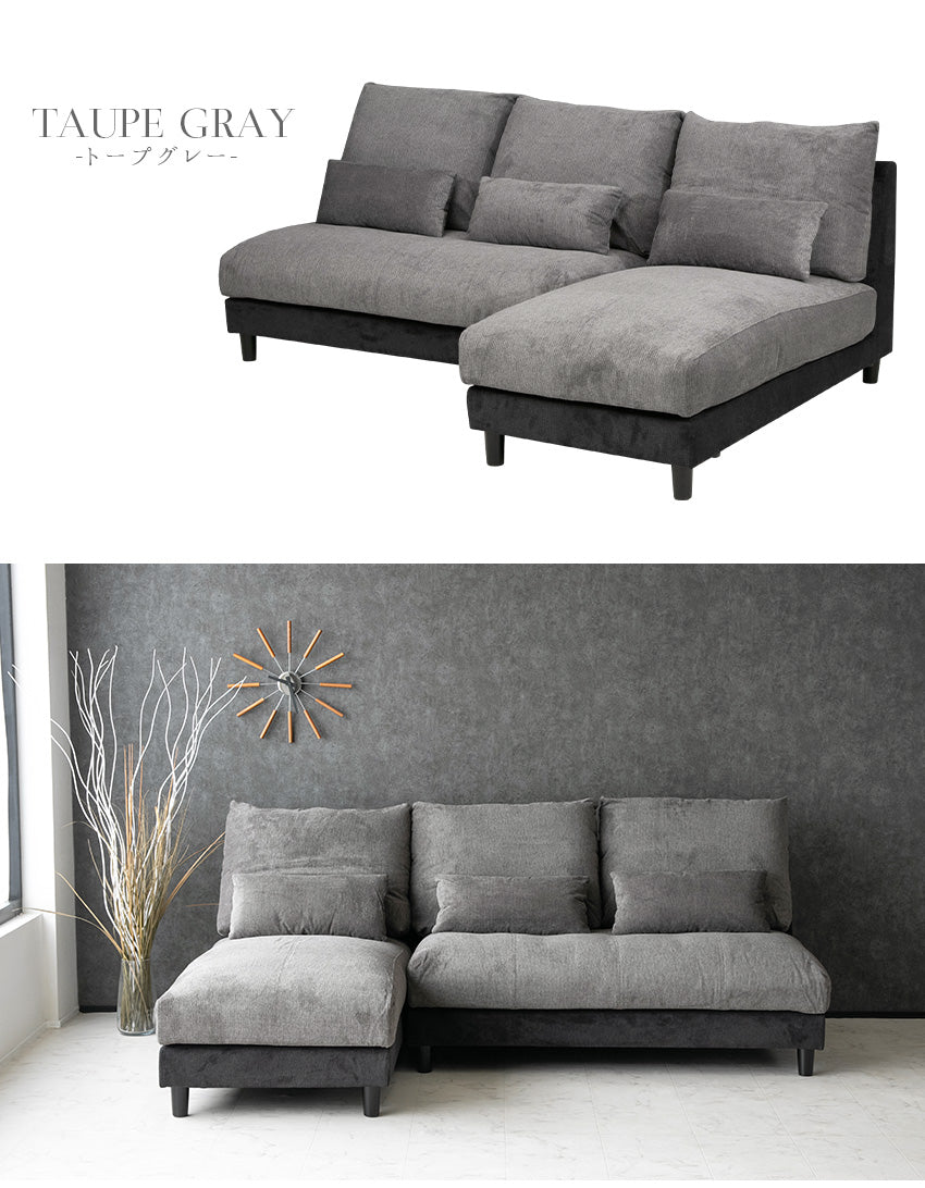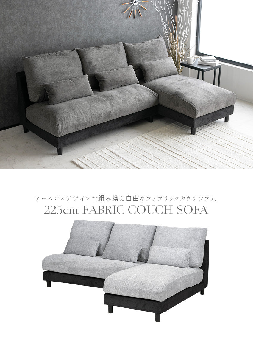 カウチソファ 3人掛け 4人掛け 撥水 アームレス ファブリック グレー トープグレー クッション付き 幅225cm