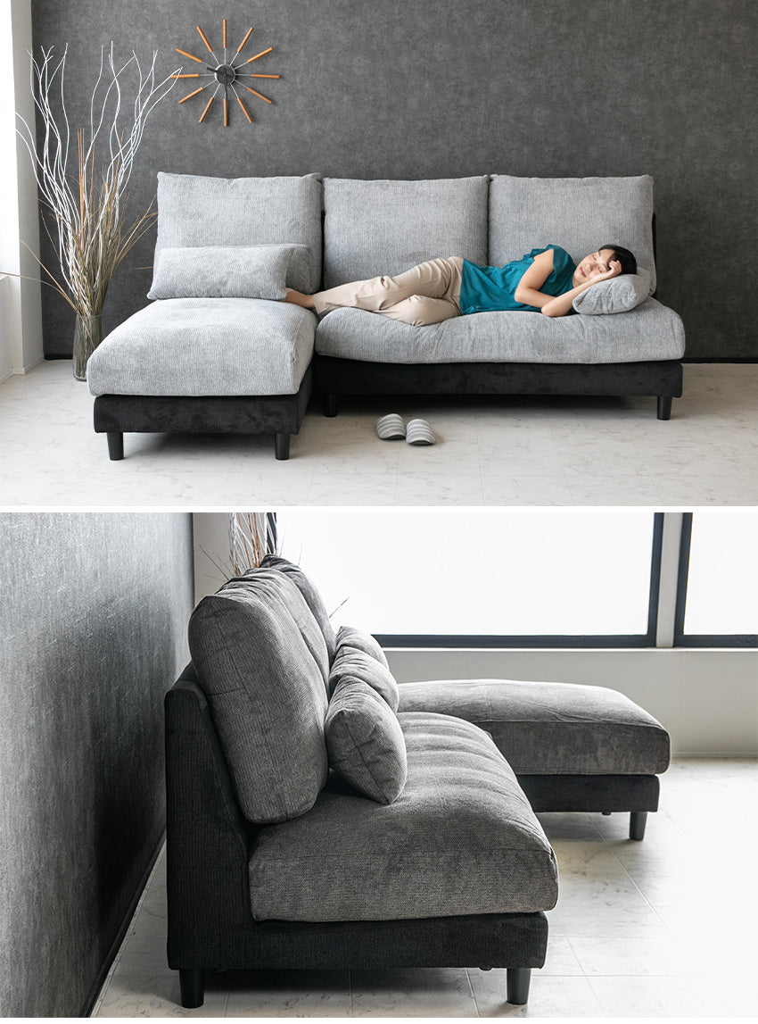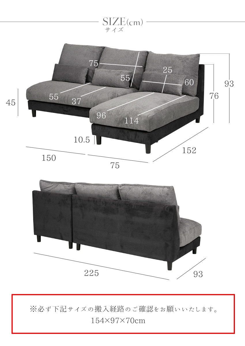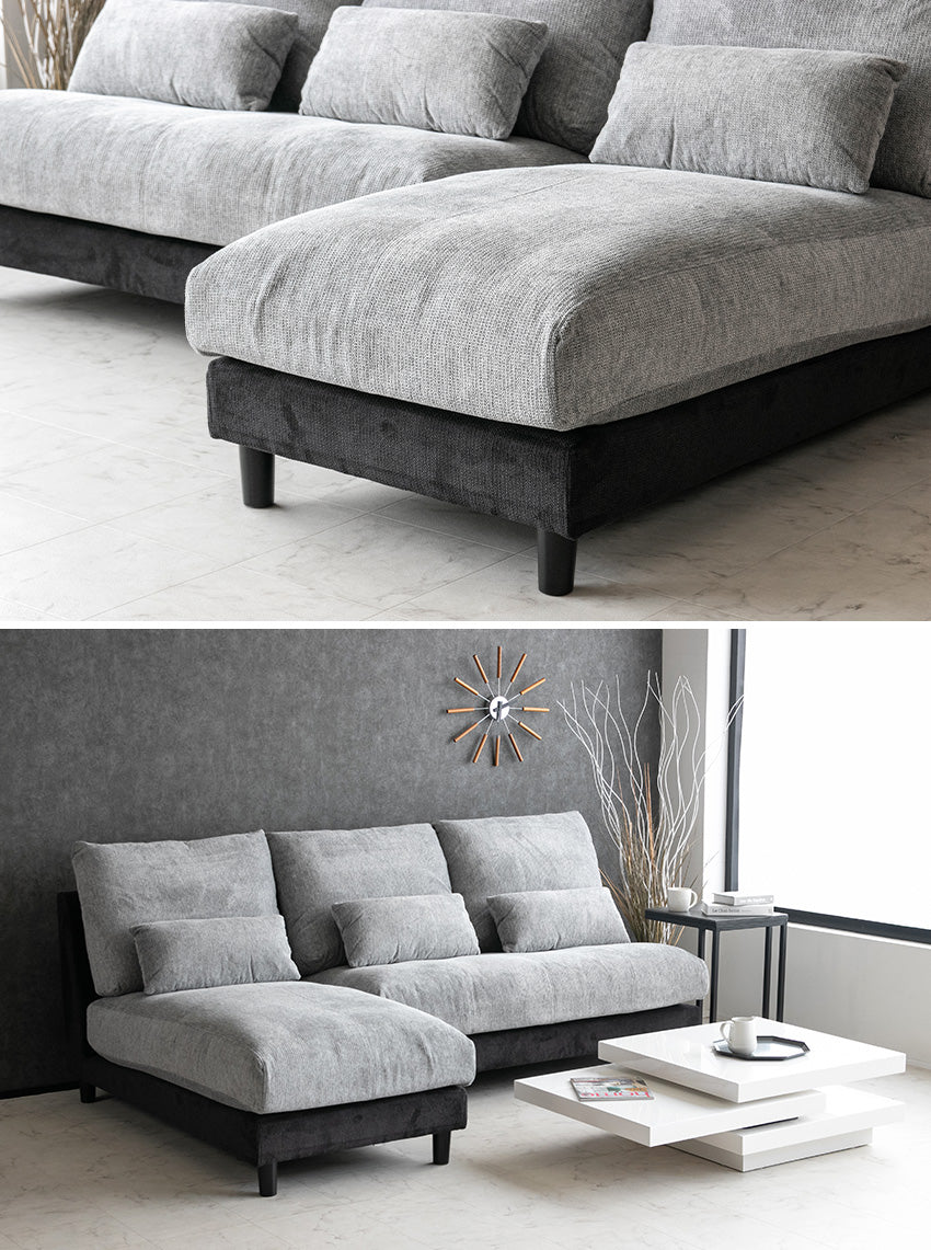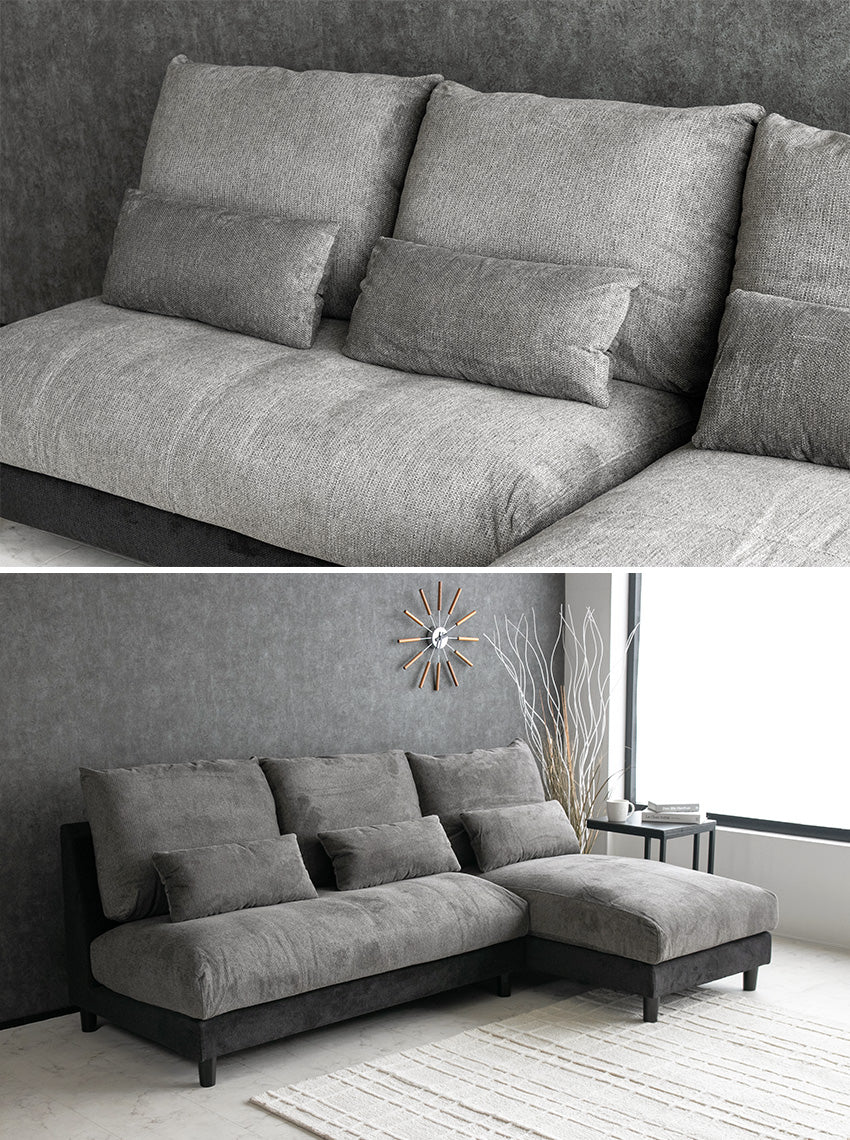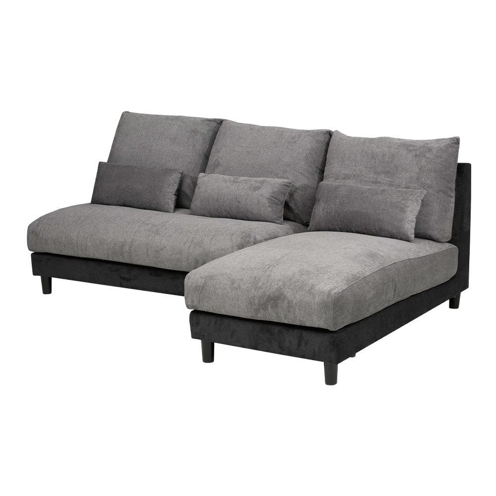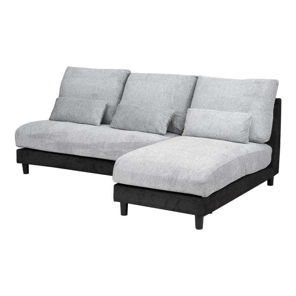 カウチソファ 3人掛け 4人掛け 撥水 アームレス ファブリック グレー トープグレー クッション付き 幅225cm