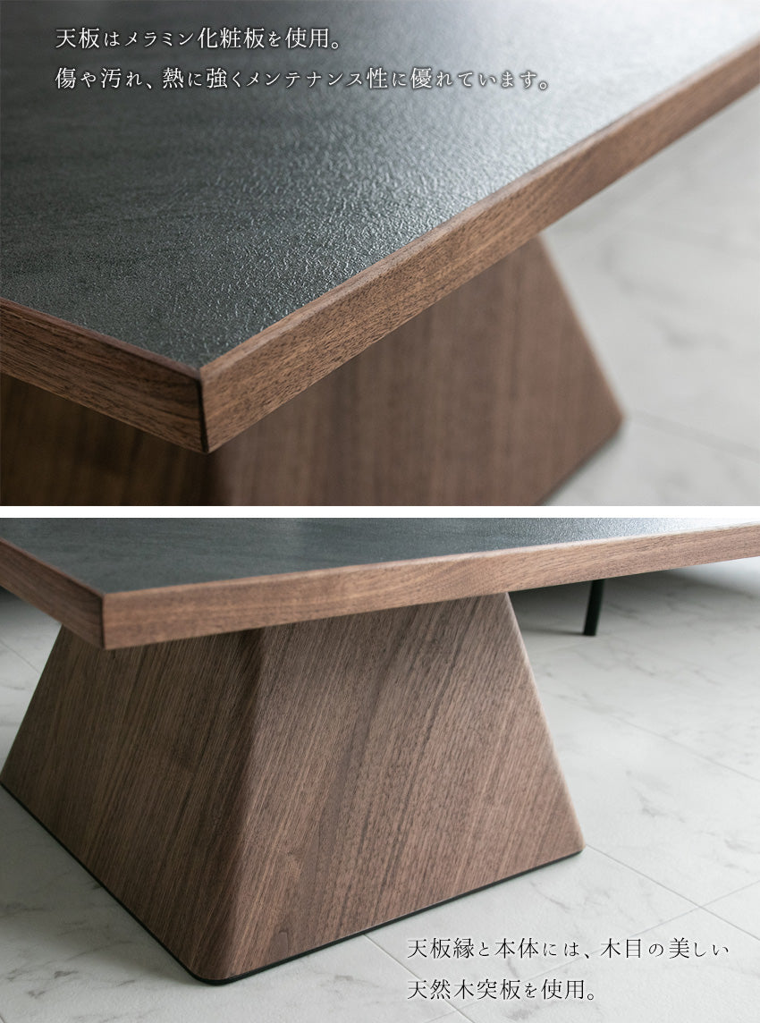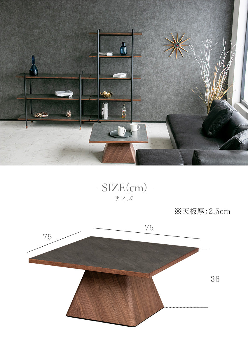 | 商品説明 | 石目調のメラミン化粧板と、天然木の突板を使用した幅75cmセンターテーブル。 |