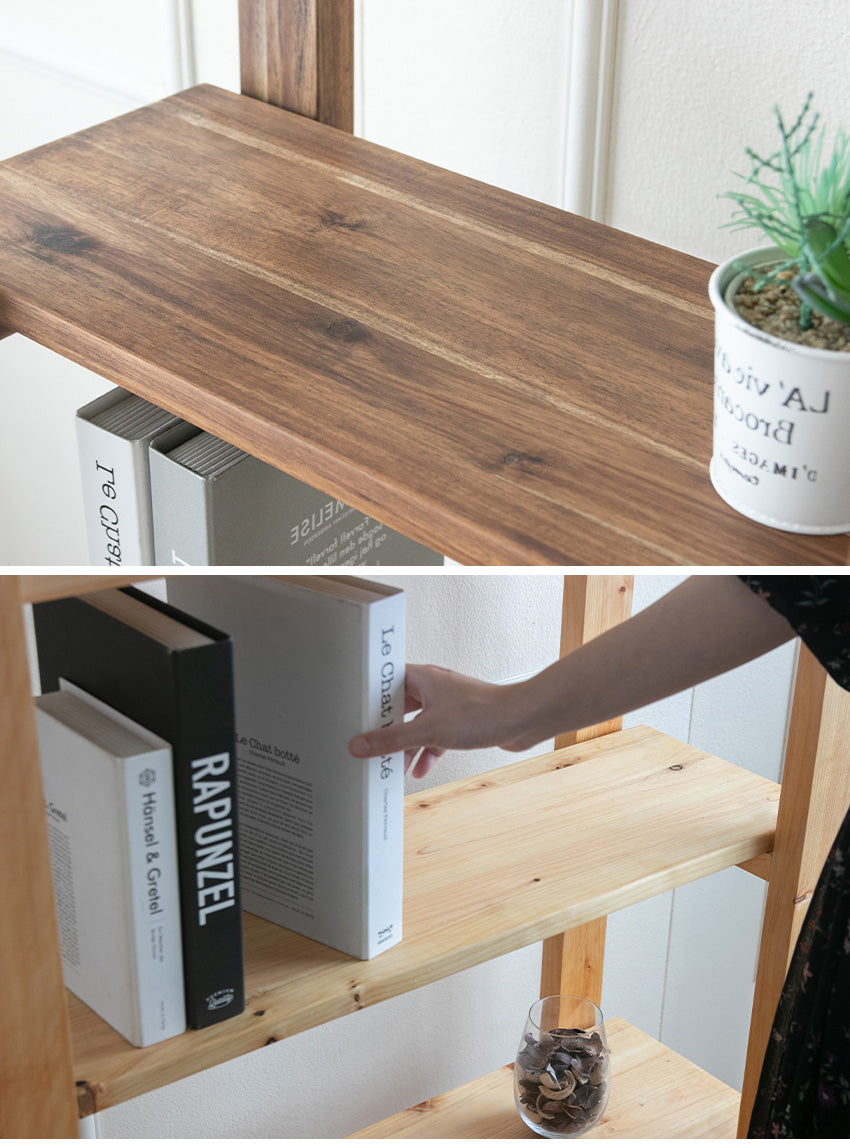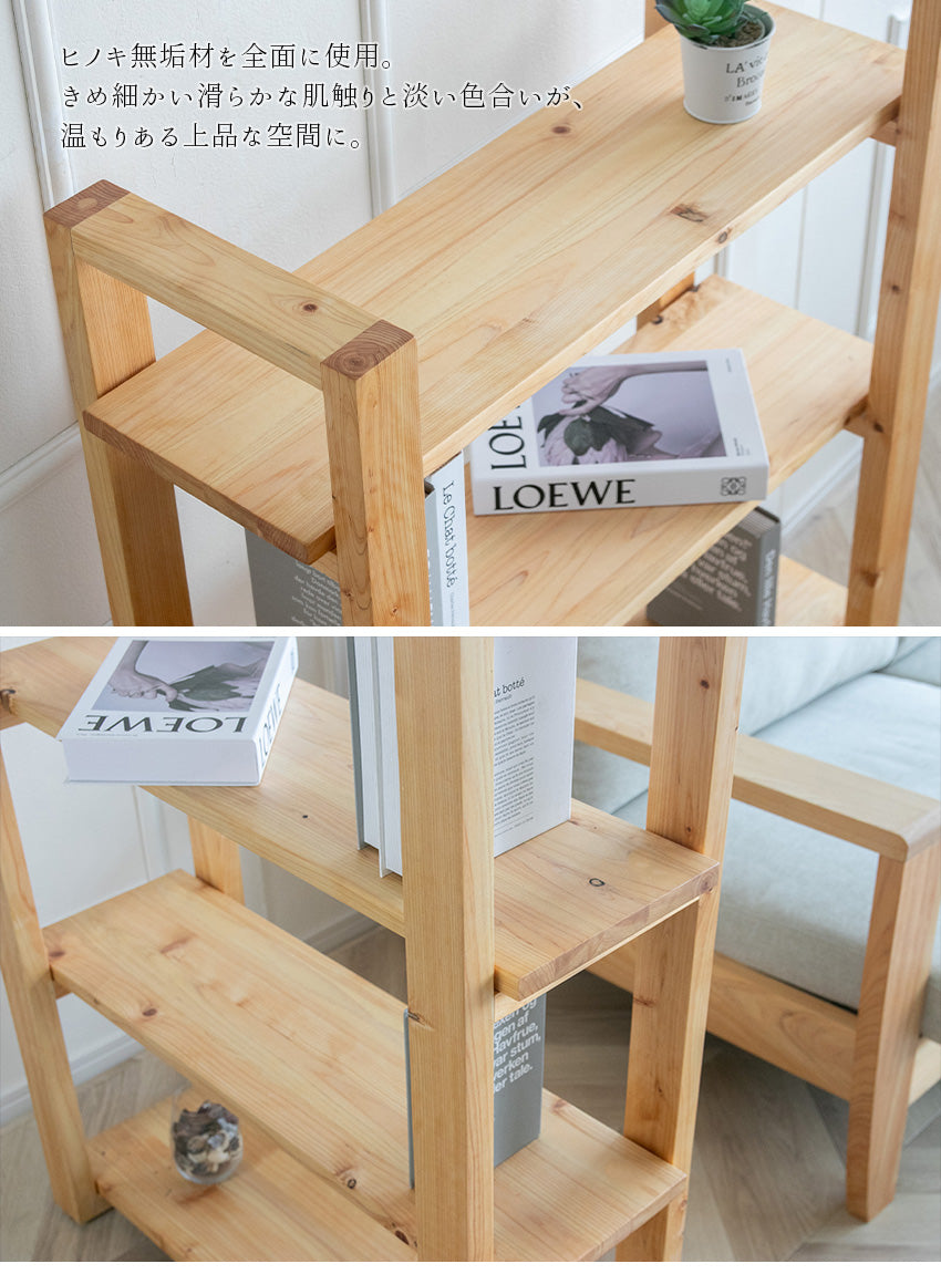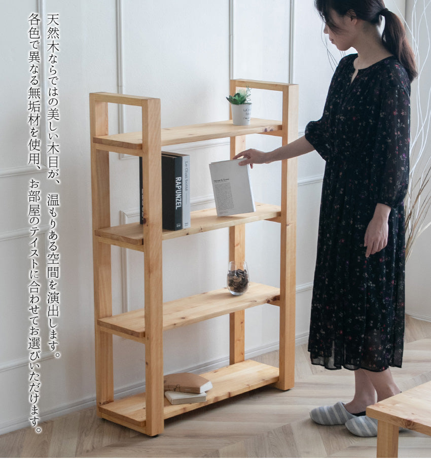 商品説明 | ひのき無垢、アカシア無垢から選べる、幅80cmの4段シェルフ。 |