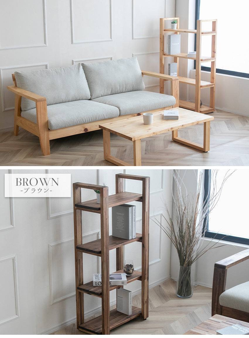 オープンラック 無垢 木製 ヒノキ アカシア ブラウン ナチュラル シェルフ 4段 幅60㎝