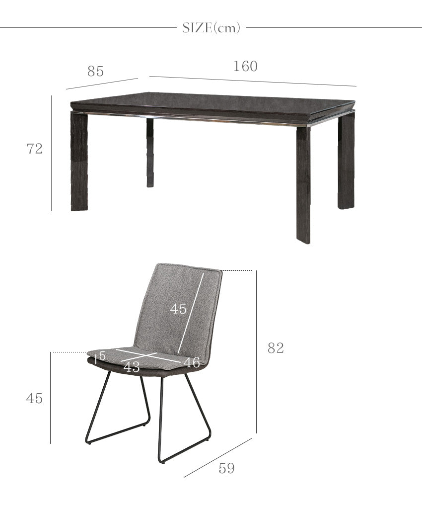 | サイズ | テーブル:幅160×奥行き85×高さ72cm チェア:幅46×奥行き59×高さ82cm / 座面高:45cm |
