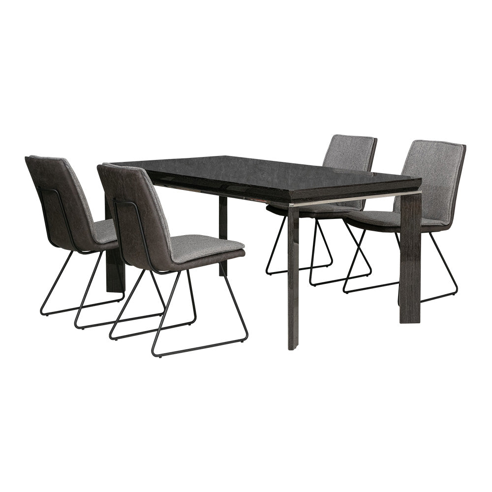 ダイニングセット 5点セット スモークオーク 突板 ファブリック 4人掛け ブラック グレー 幅160cm