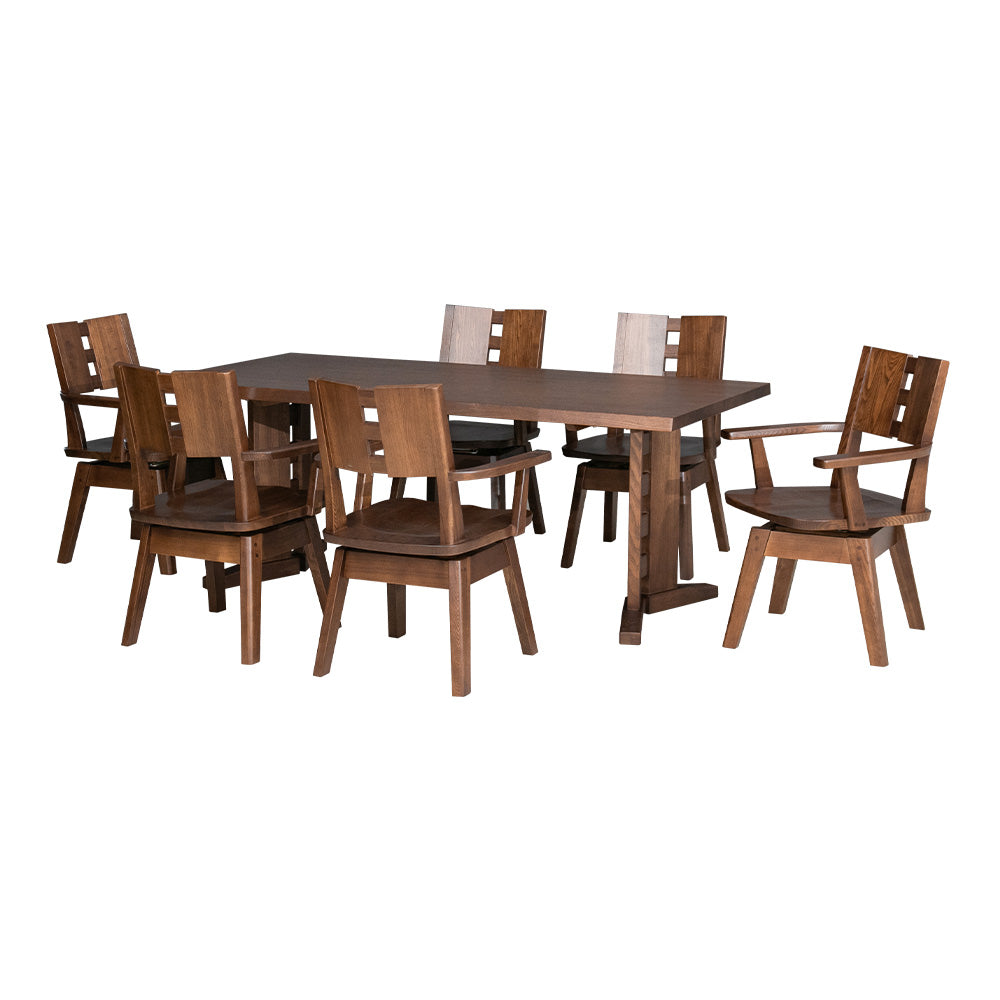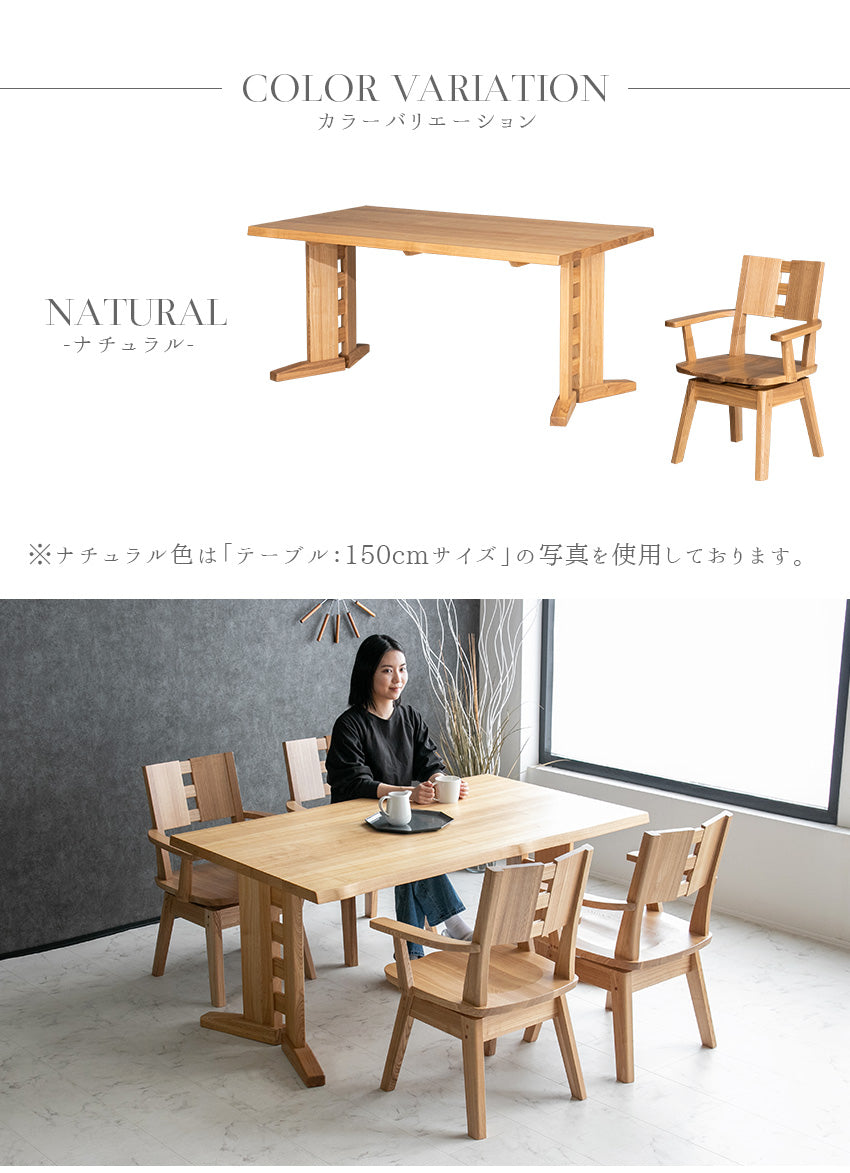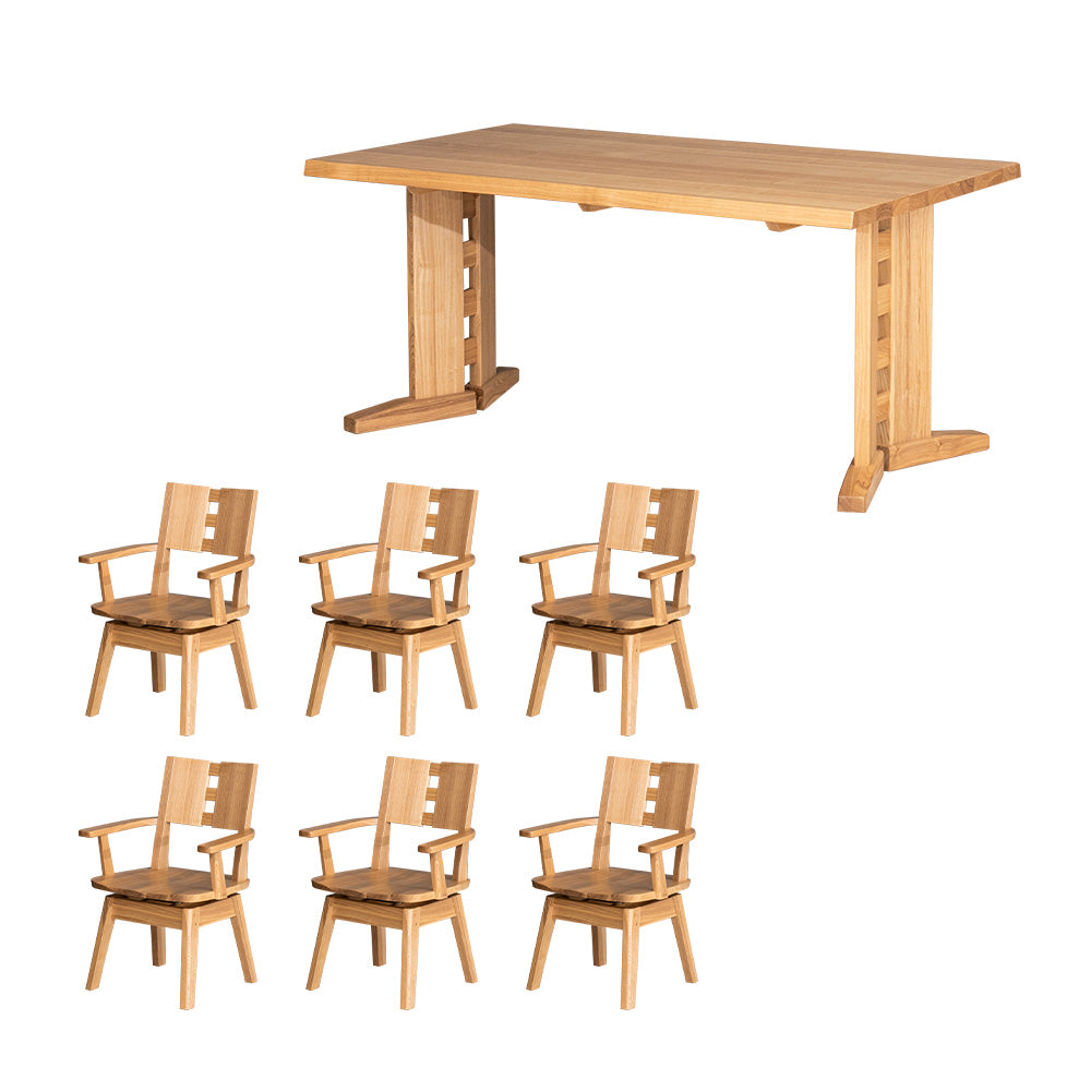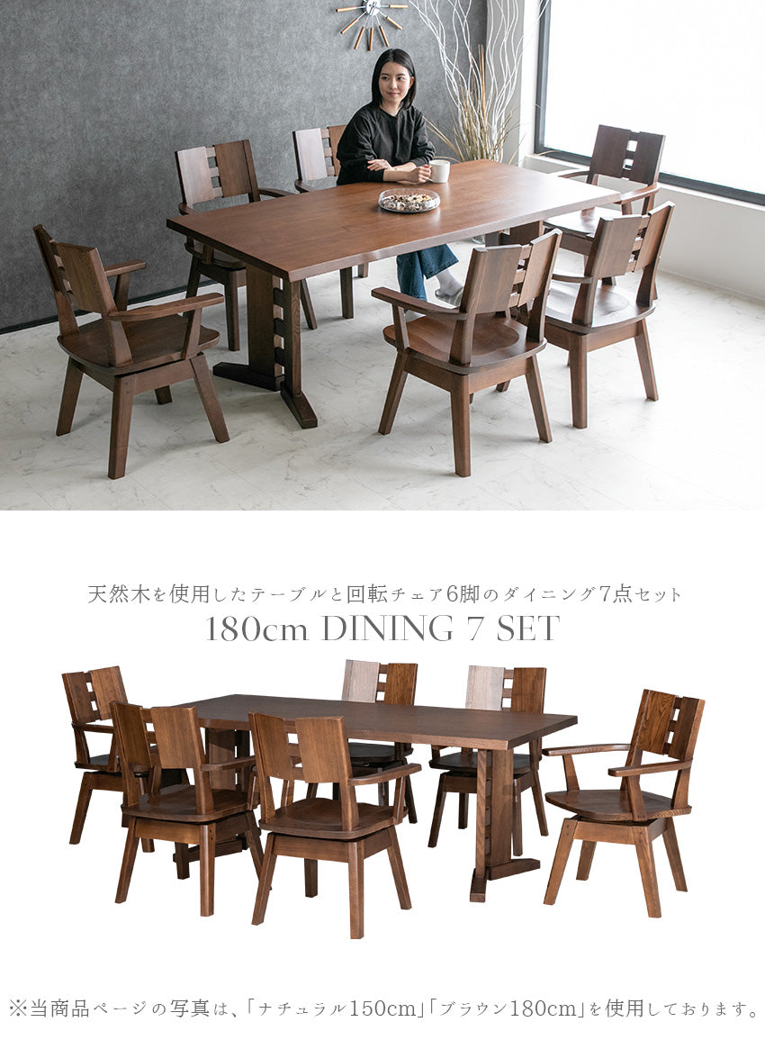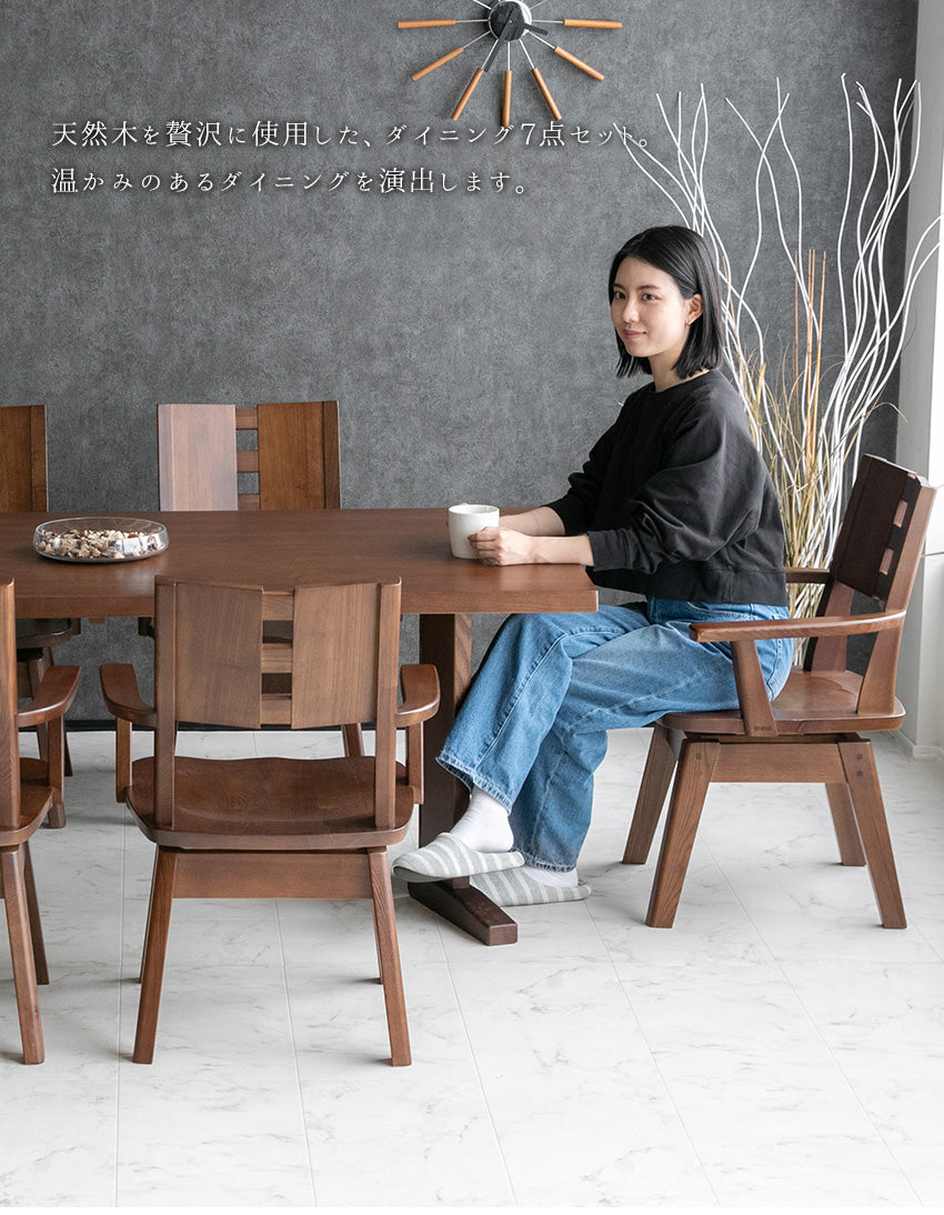 | 商品説明 | 天然木を使用したテーブル、回転チェア6脚のダイニング7点セット。 |