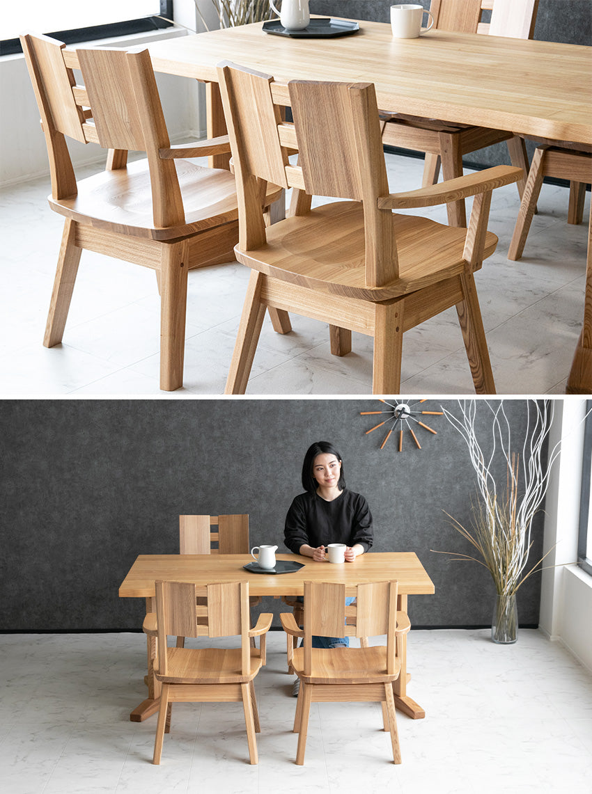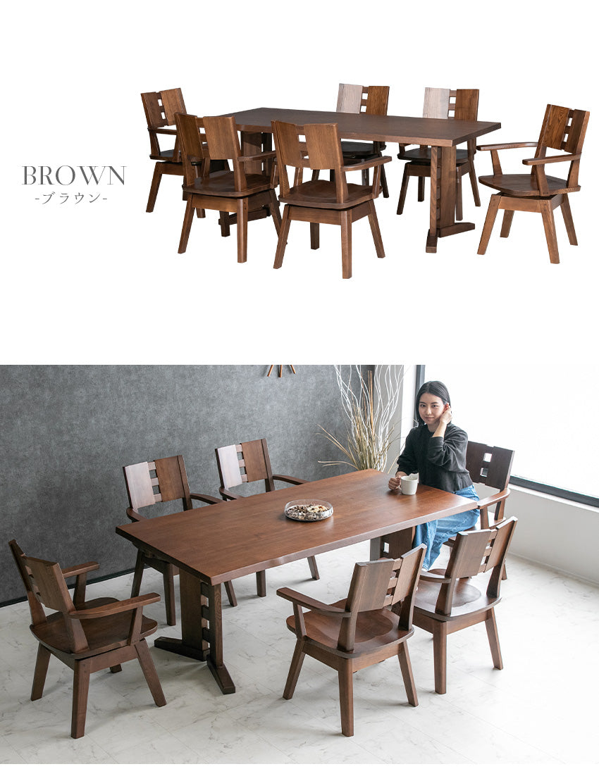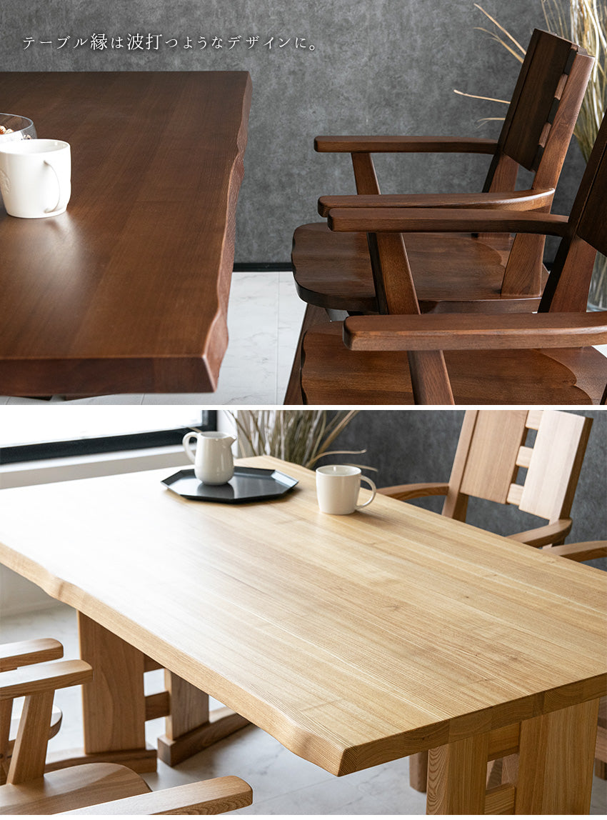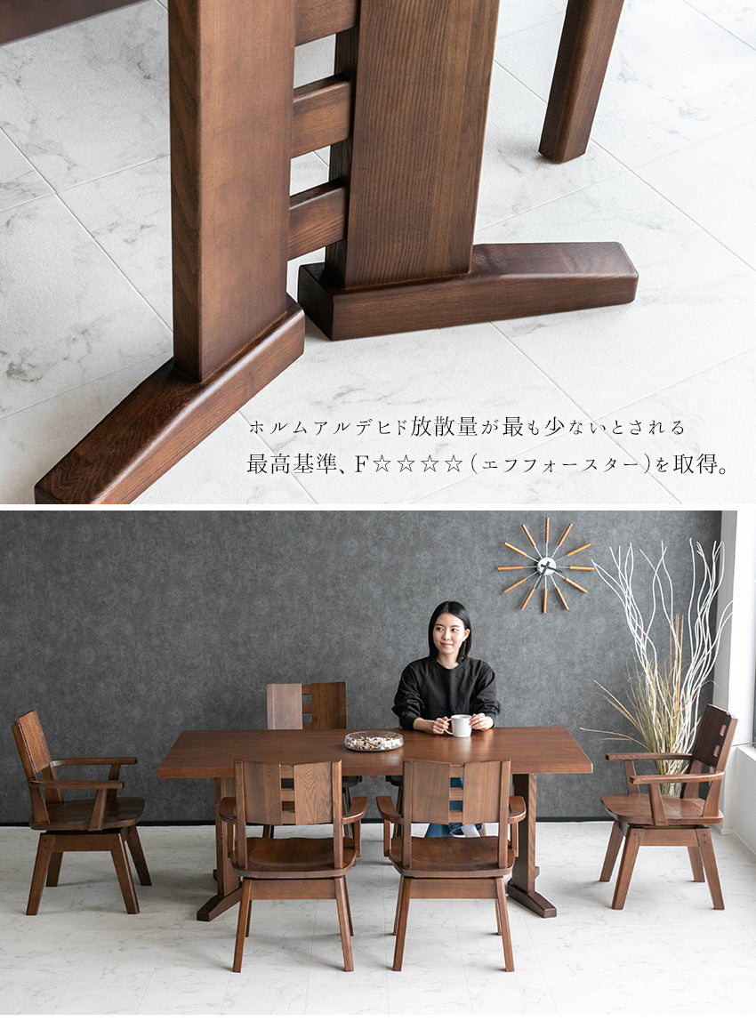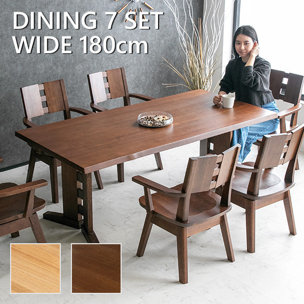 ダイニングセット 7点セット タモ 天然木 無垢 6人掛け 茶 ナチュラル ブラウン 低ホルムアルデヒド 幅180cm