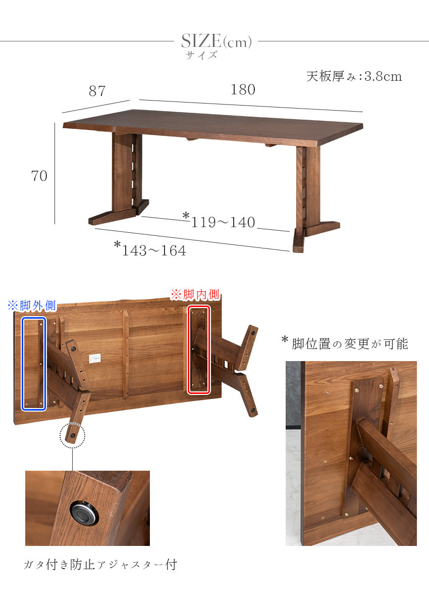 | サイズ | テーブル:幅180×奥行き87×高さ70cm チェア:幅59.5×奥行き54.5×高さ84cm / 座面高:43cm |