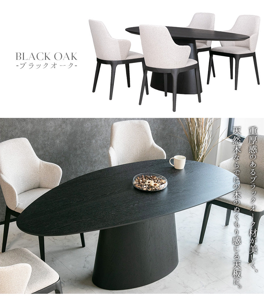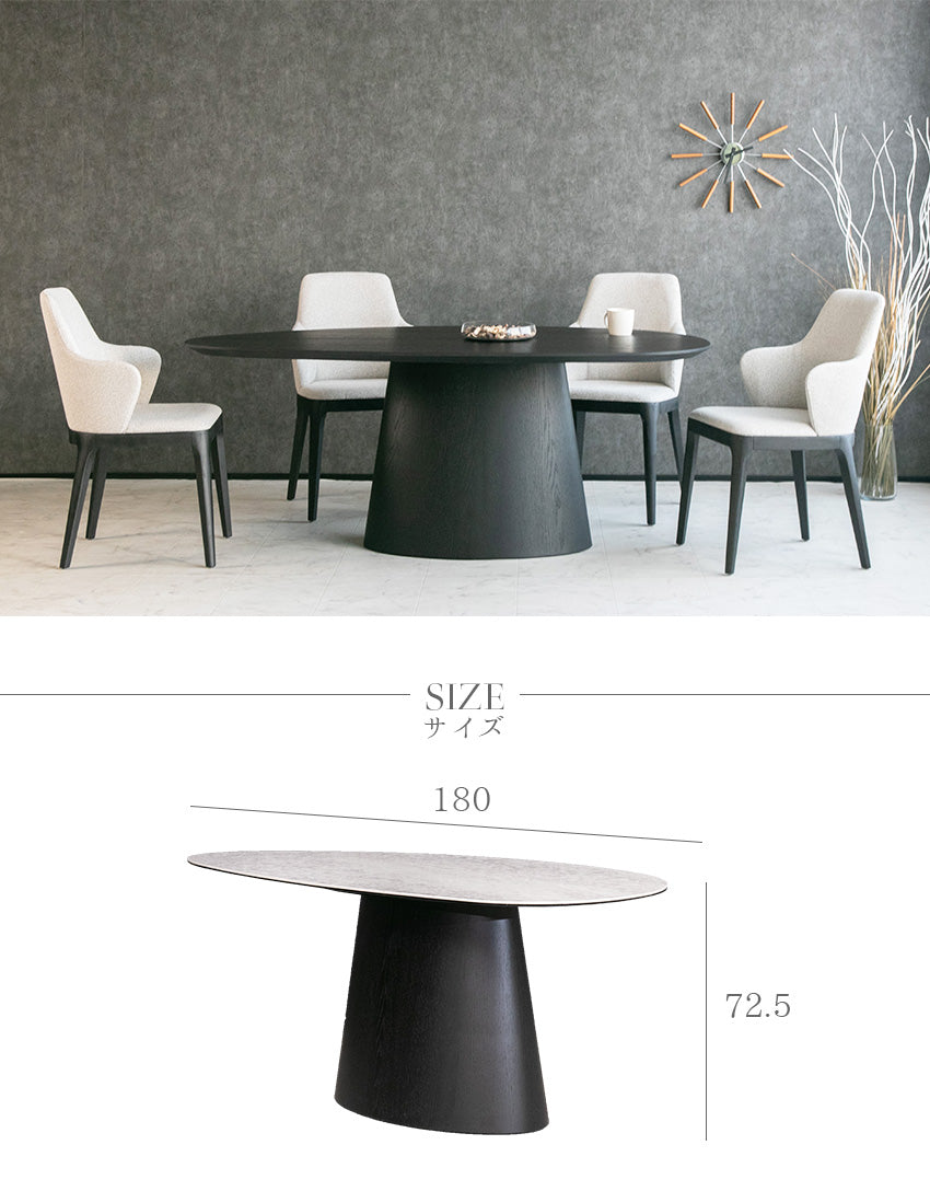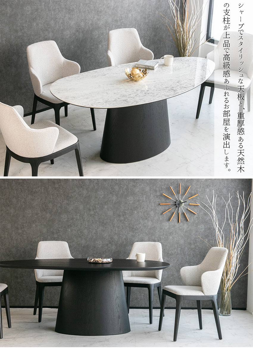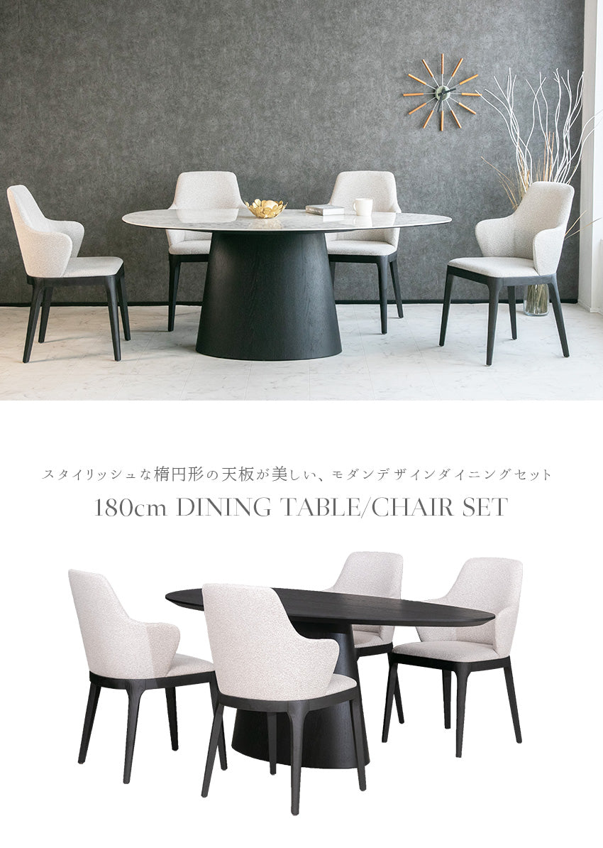 | 商品説明 | スタイリッシュな楕円形の天板が美しい、モダンデザインダイニング5点セット。 |
