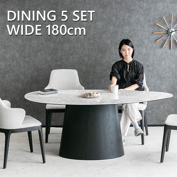 ダイニングセット 5点セット 大理石柄 セラミック ブラックオーク 4人掛け ブラック ホワイト 幅180cm