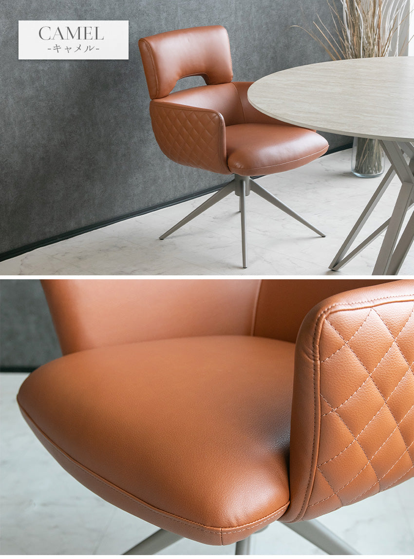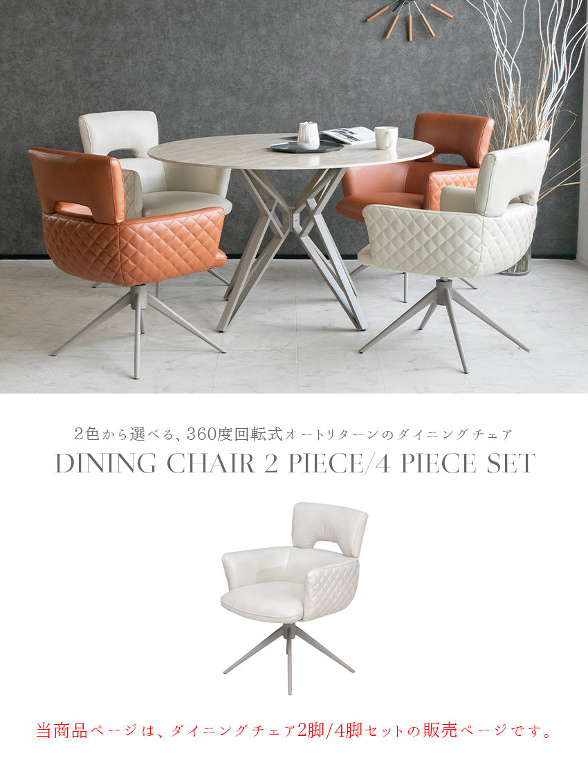 【同色2脚/4脚セット】 ダイニングチェア PU レザー 合成皮革 アイボリー キャメル 回転式 椅子