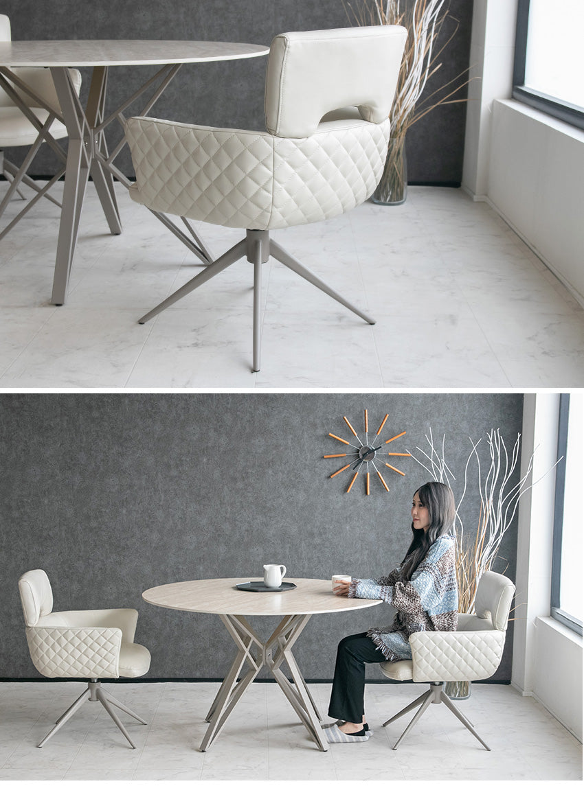 | 商品説明 | 厚手のPUレザーで上品に仕上げた、360度回転式ダイニングチェアセット。 |